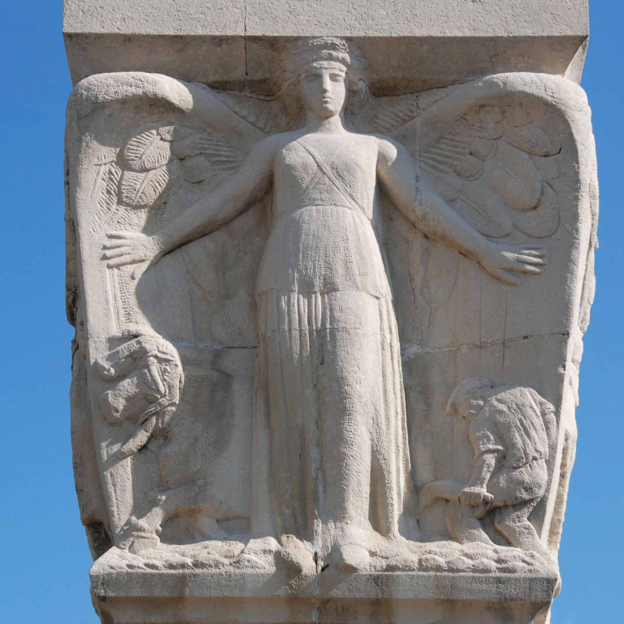 « Non pas une de ces Victoires claironnantes, non pas une de ces Victoires provocantes qui, ailes déployées, semble s’envoler vers de nouvelles et trop cruelles aventures. Non, cette Victoire, notre Victoire, est la sœur même de la Paix. Ailes repliées, elle est avant tout désireuse de demeurer longtemps sur notre sol ».