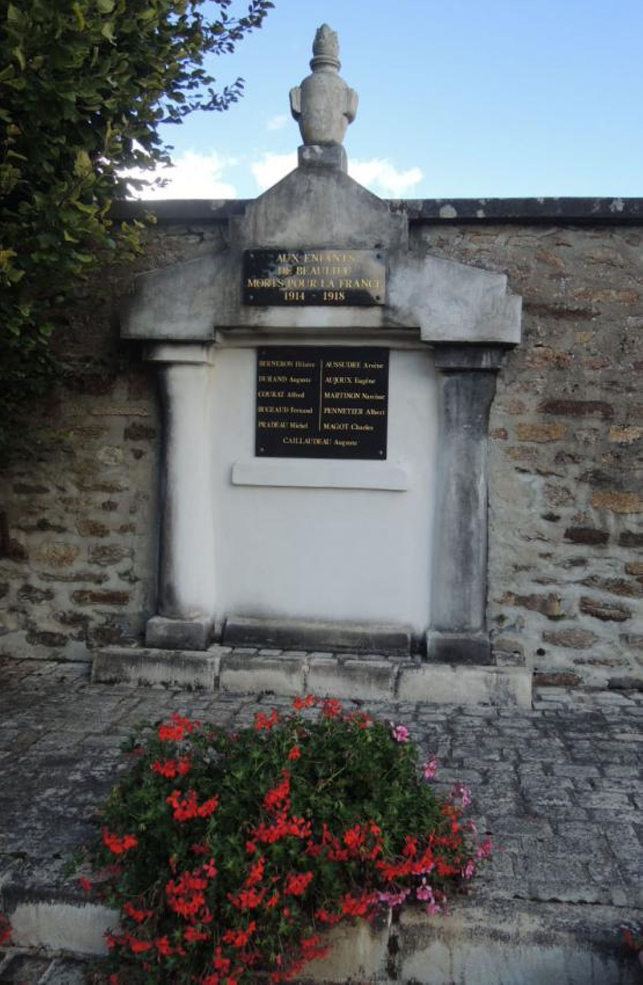 - Le 5 avril 1936, le Maire de Beaulieu, M. Mayet, transmet au Préfet de l’Indre un document rédigé le 4 avril 1936 par six anciens combattants et trois conseillers : “Nous soussignés, anciens combattants et conseillers municipaux de Beaulieu, avons l’honneur de vous informer que Monsieur Joyeux Narcisse, adjudicataire des travaux du mur du cimetière et du monument aux morts de la Grande Guerre n’a pas terminé et ne pousuit pas les travaux, particulièrement en ce qui concerne le monument aux Morts qui devait être achevé d’après le cahier des charges le 5 novembre 1935 et protestons énergiquement contre cet état de chose, demandant que le dit adjudicataire soit mis en demeure d’achever les travaux ou de déclarer forfait”.