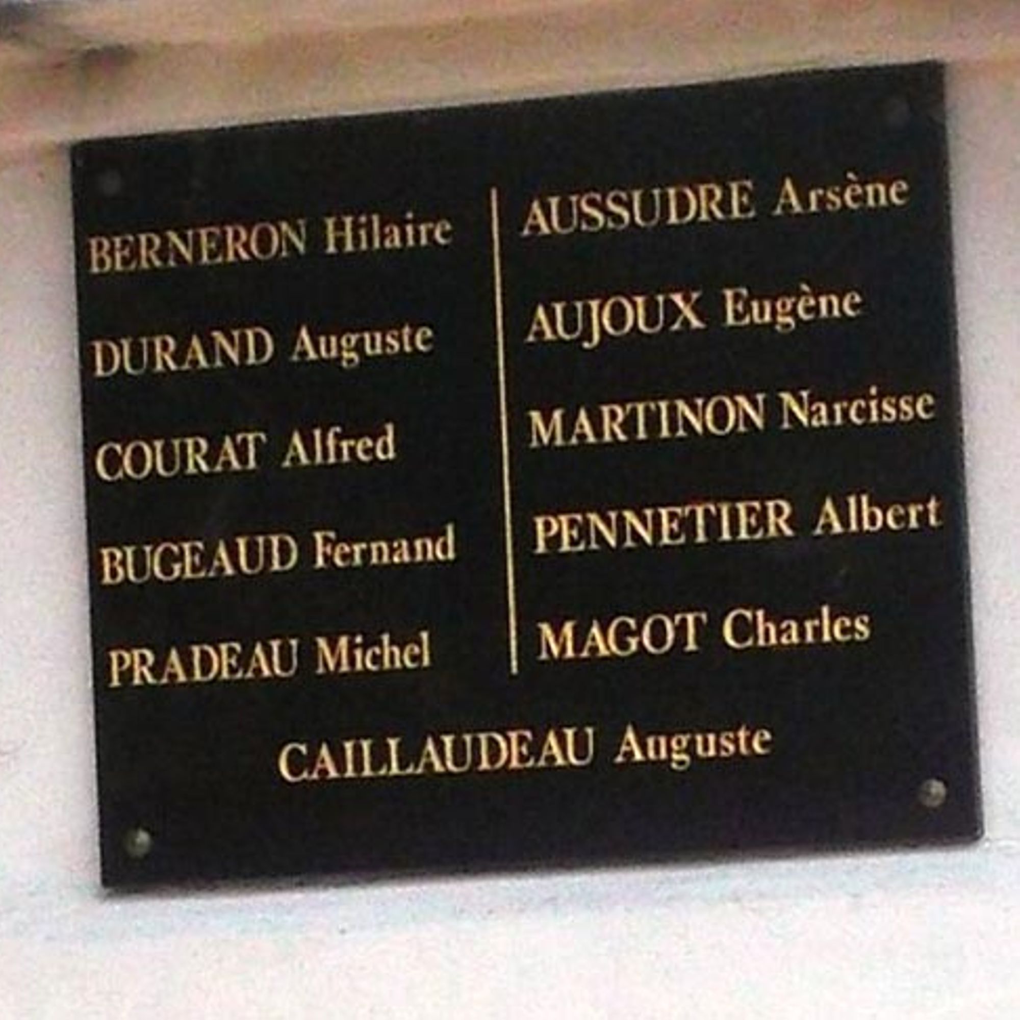 En lettres dorées sur une plaque de marbre noir :