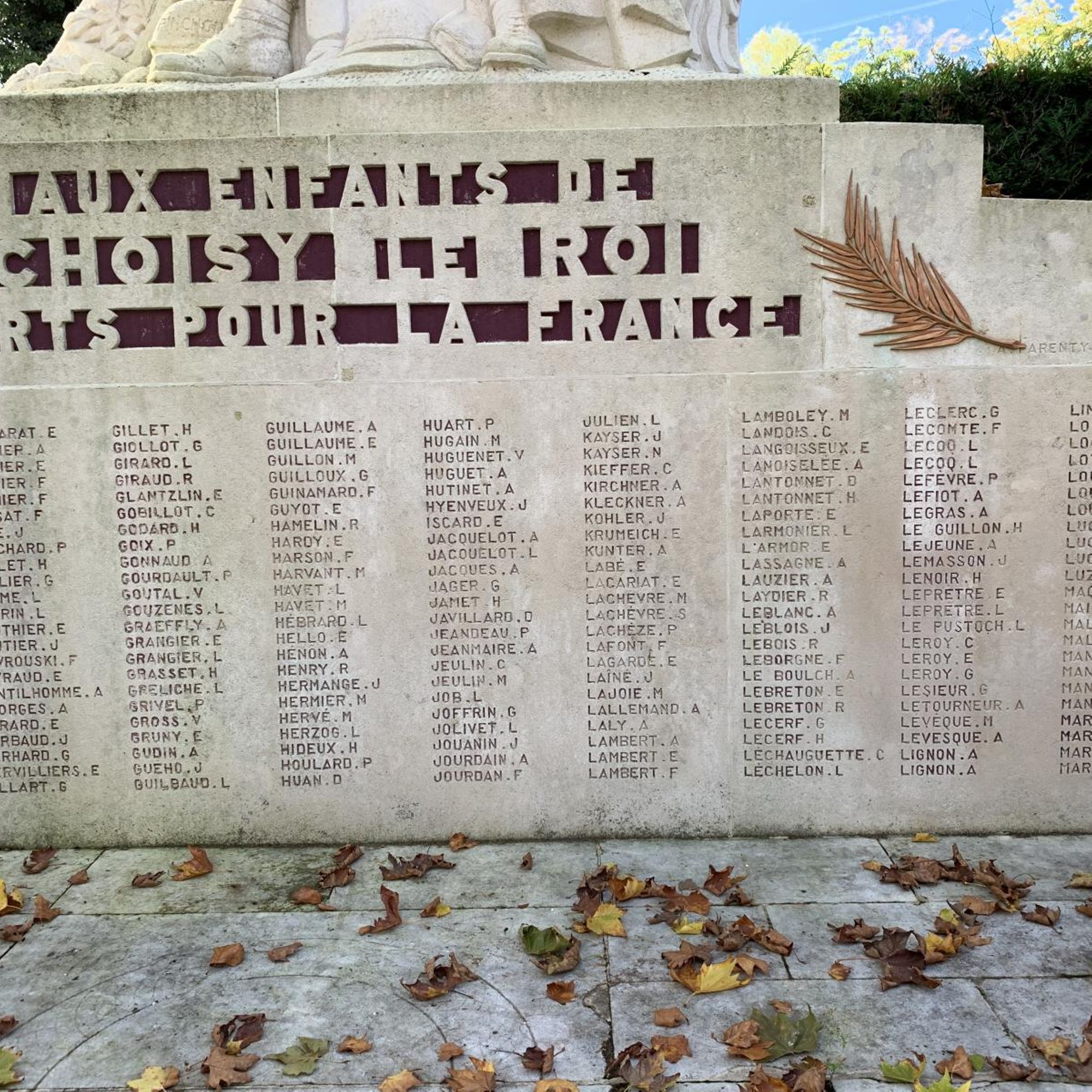 Le monument aux morts réalisé par Émile Pinchon dont le platre original se trouve au musée de Péronne. Le monument dédié aux enfants de Choisy-le-Roi (hommes nés à Choisy)