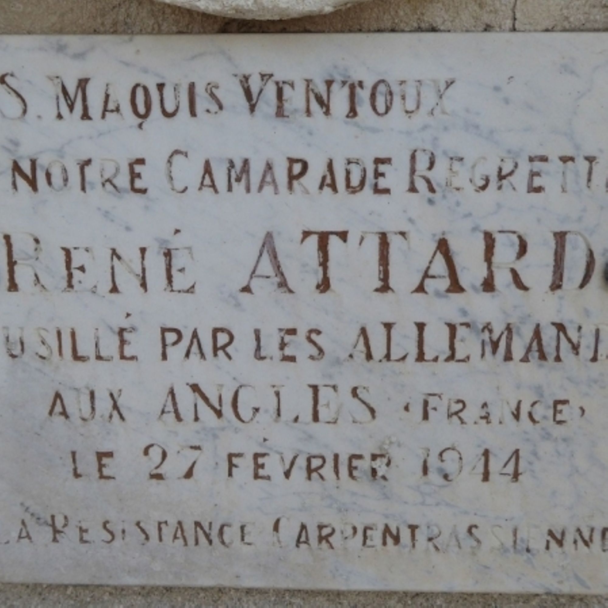 ATTARD Félix [Plaque Fusillé par les Allemands aux Angles le 27 février 1944]