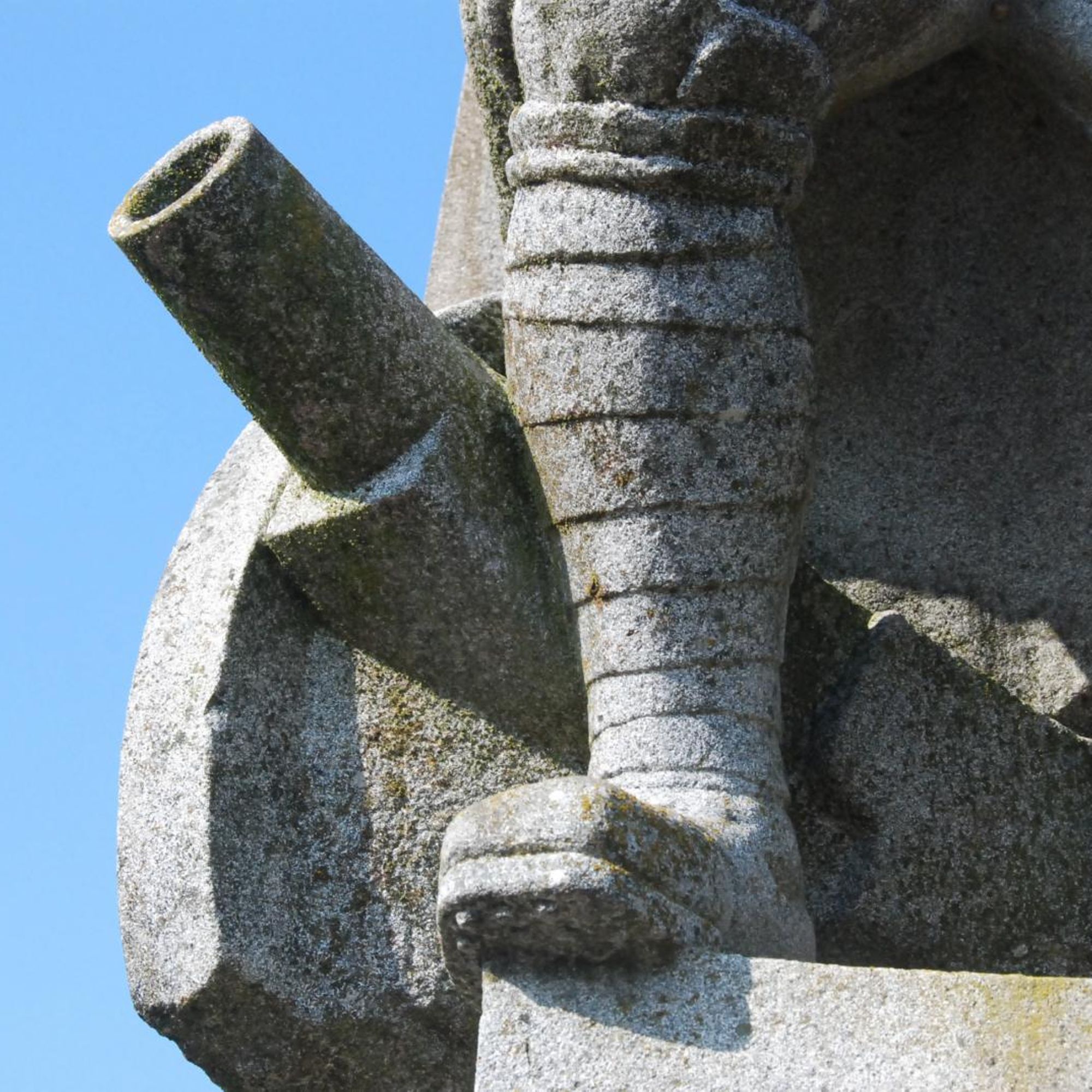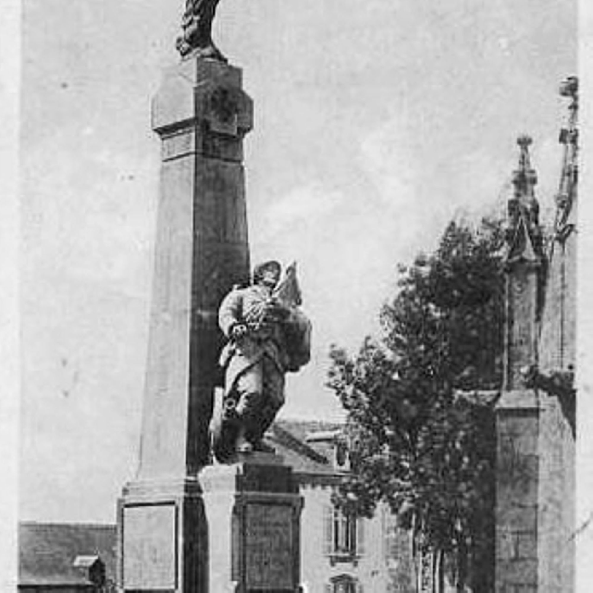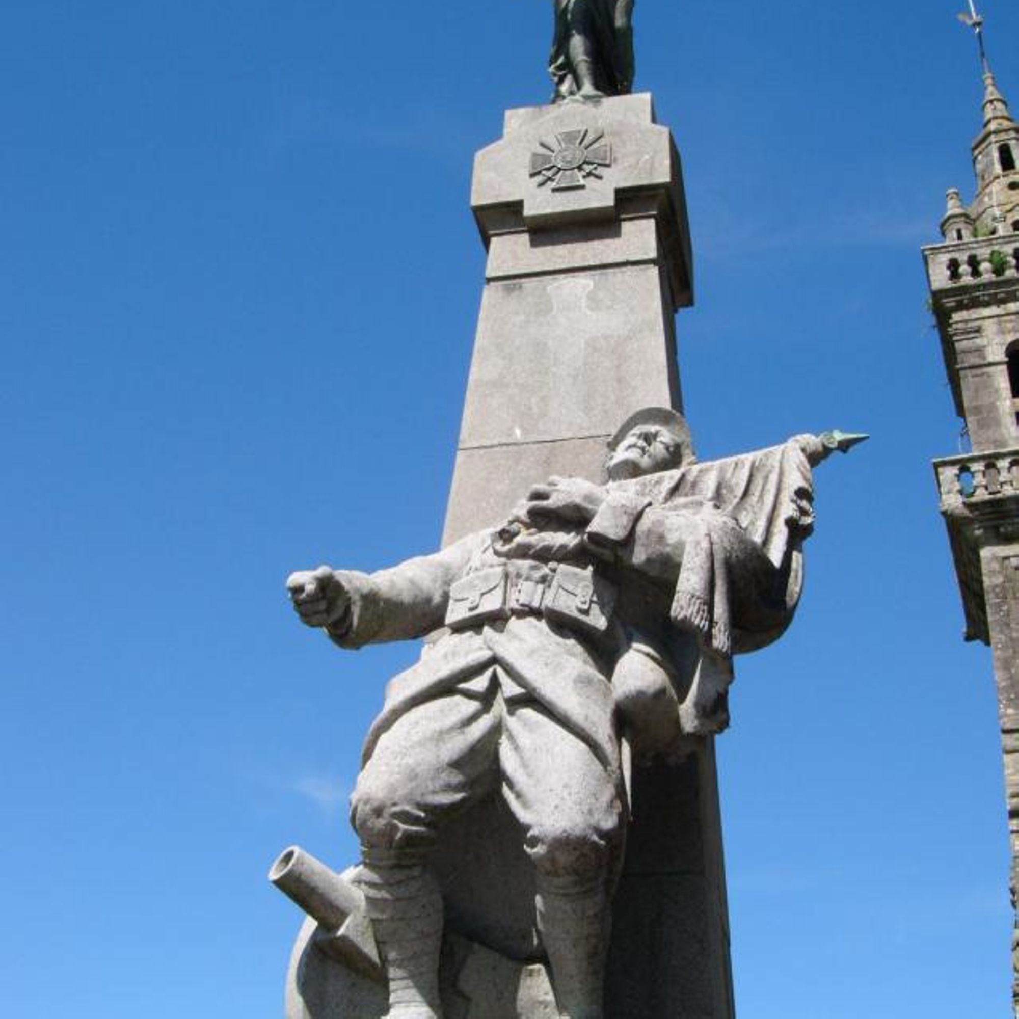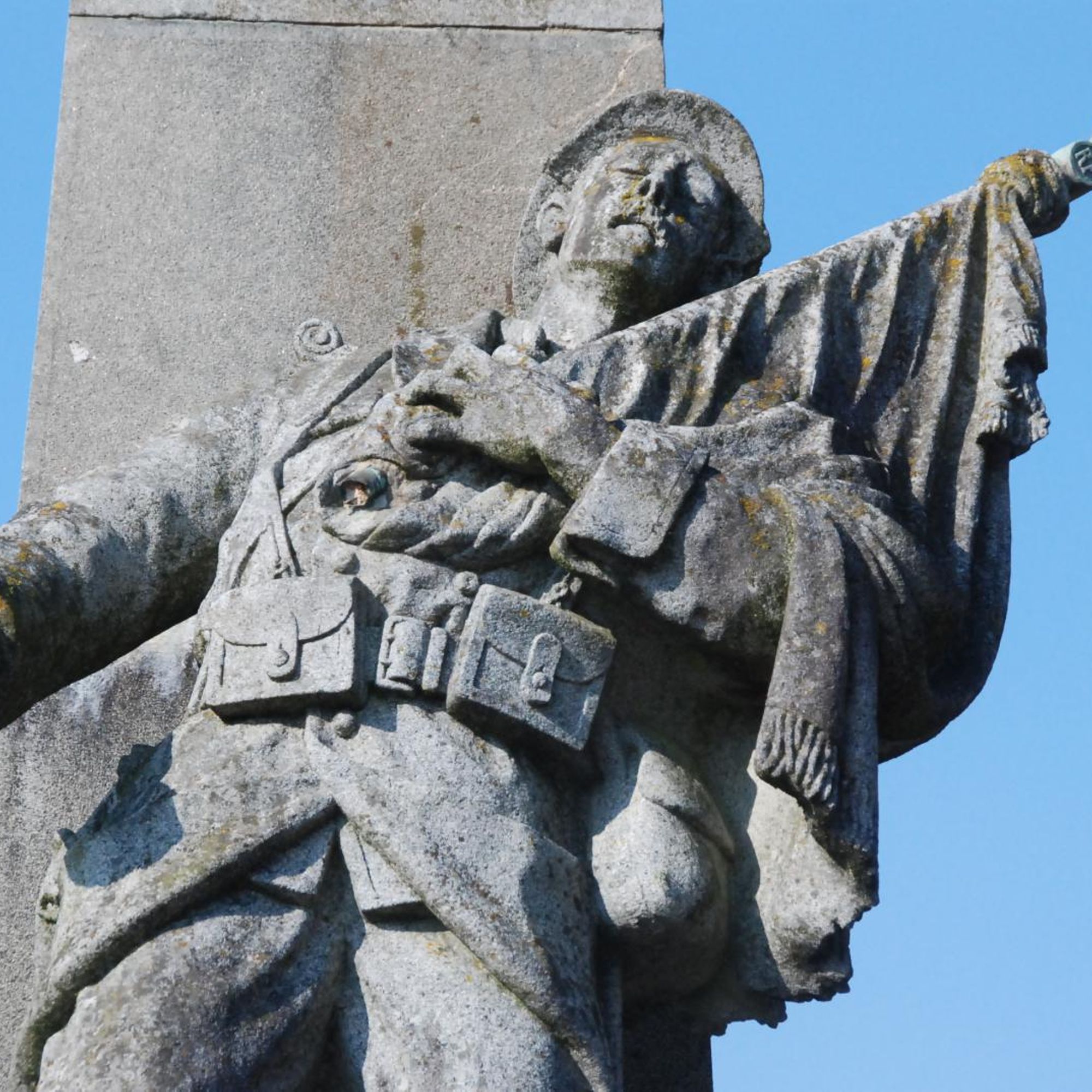 Colonne quadrangulaire avec un ange au sommet et devant un soldat défendant son drapeau