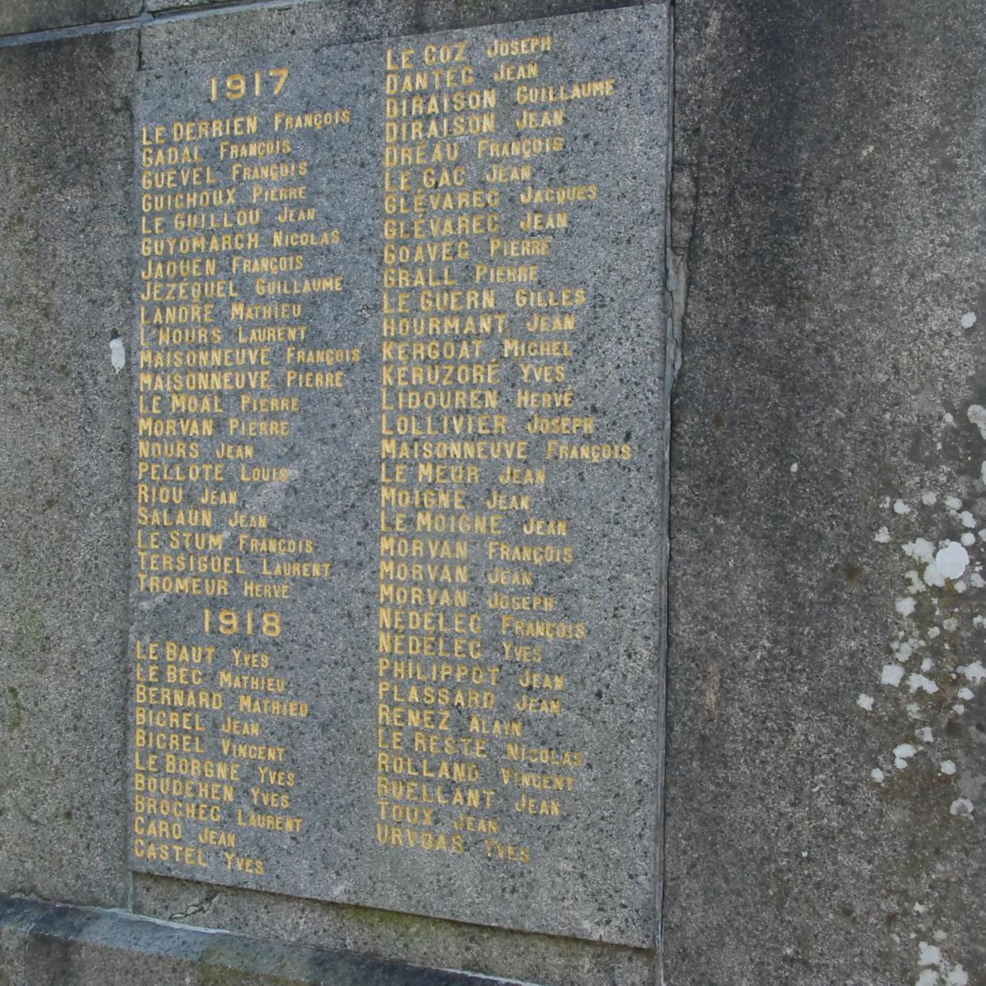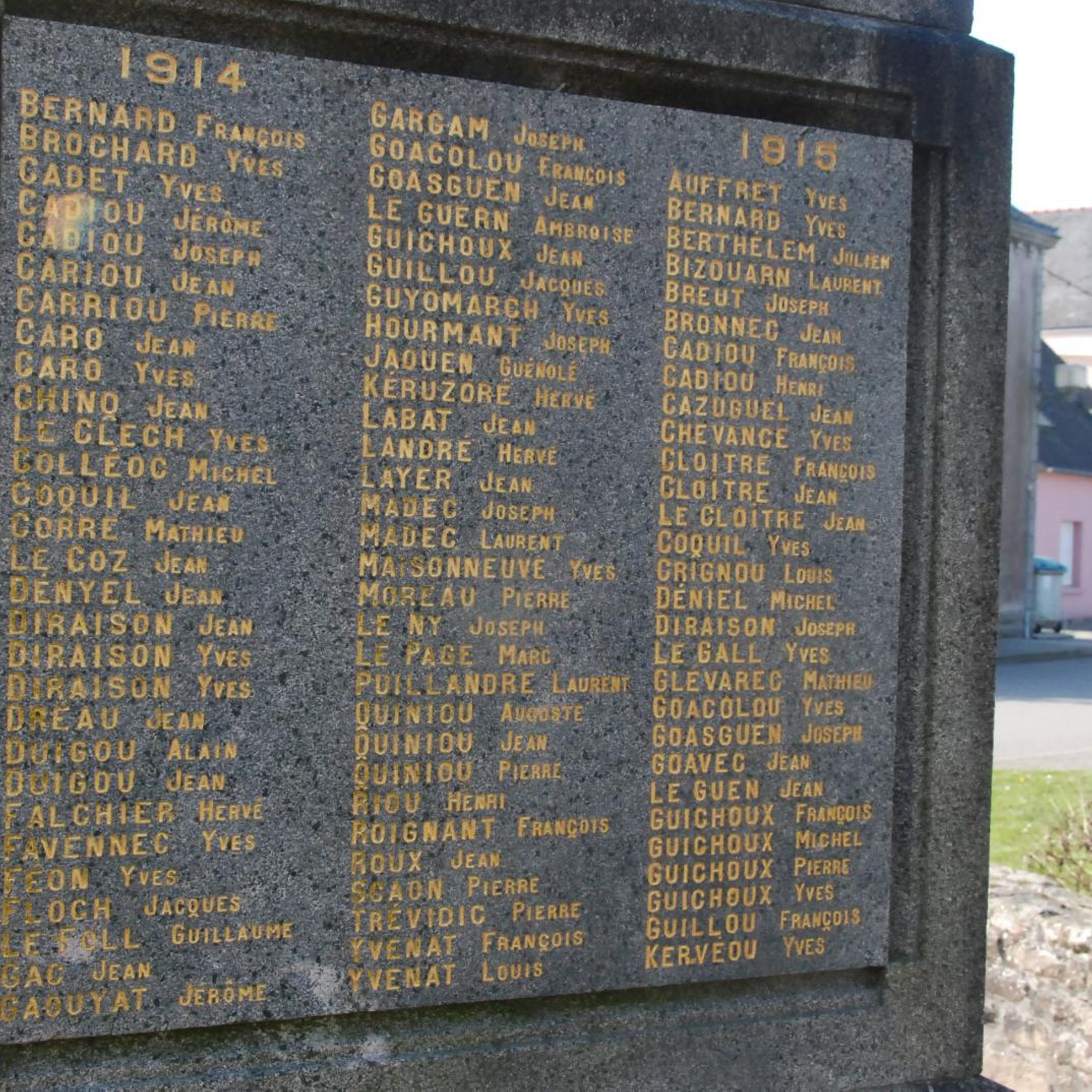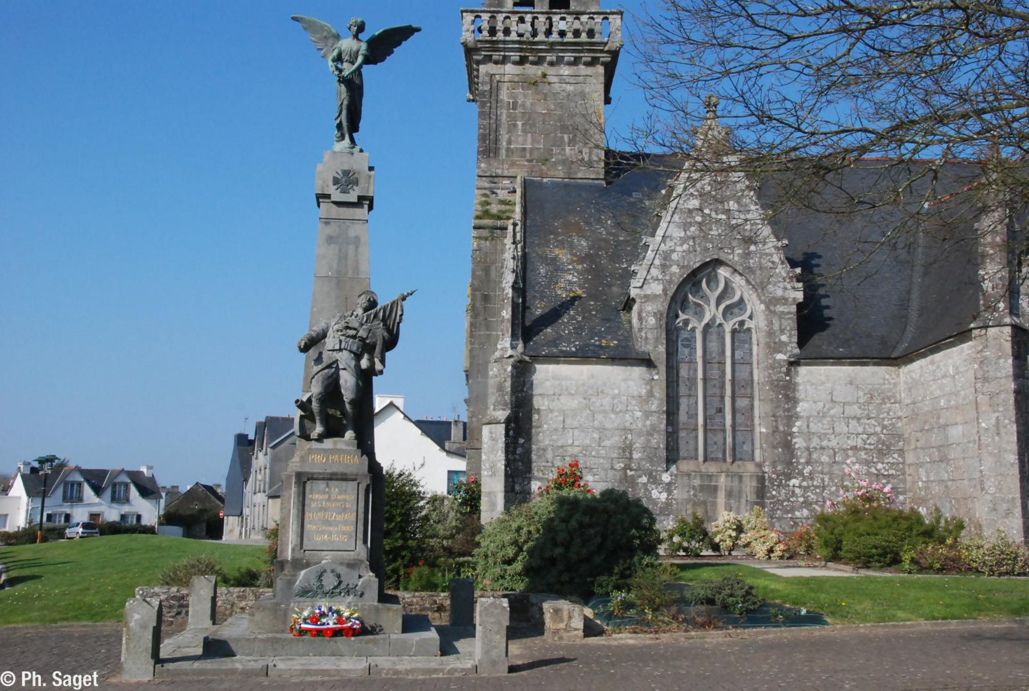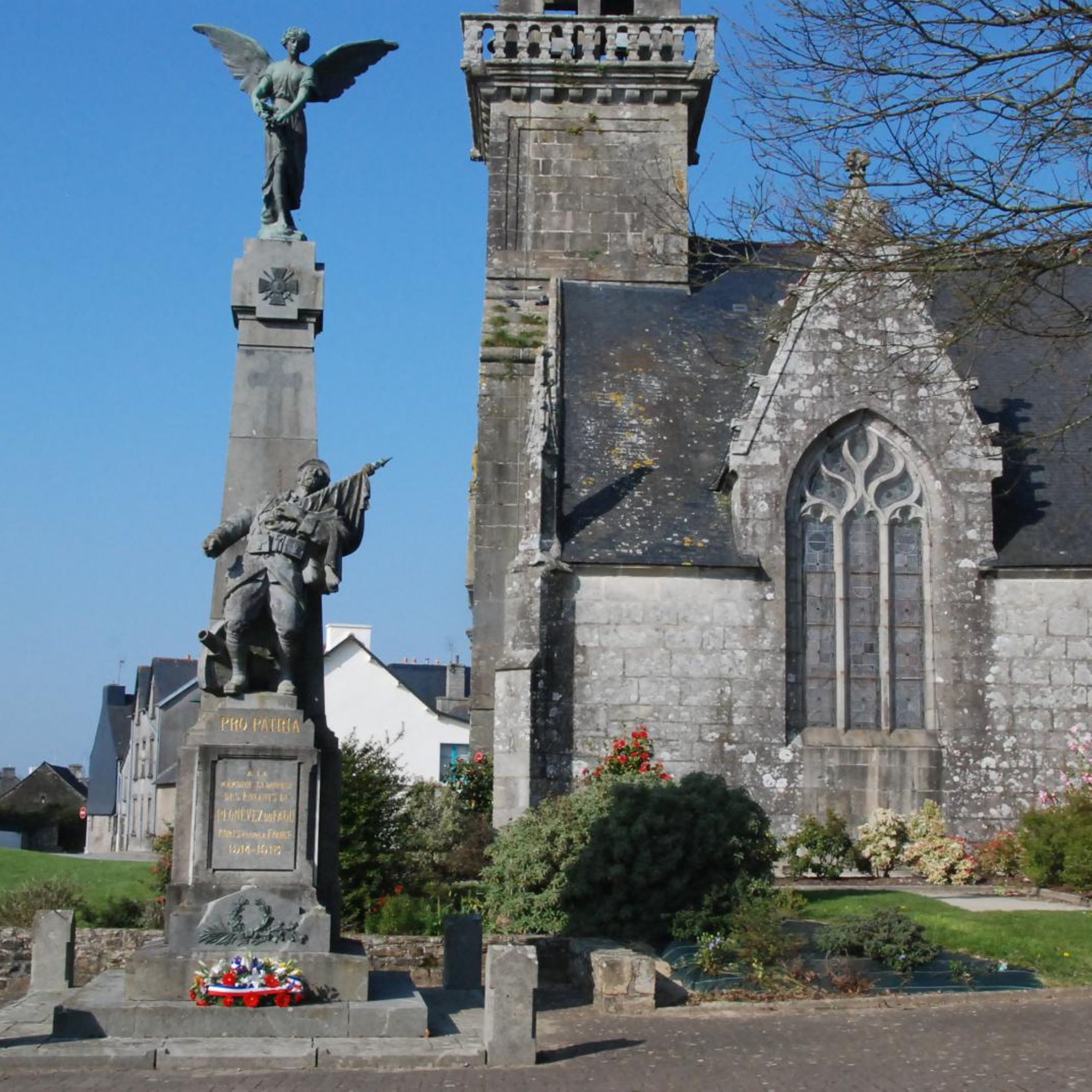 Colonne quadrangulaire avec un ange au sommet et devant un soldat défendant son drapeau