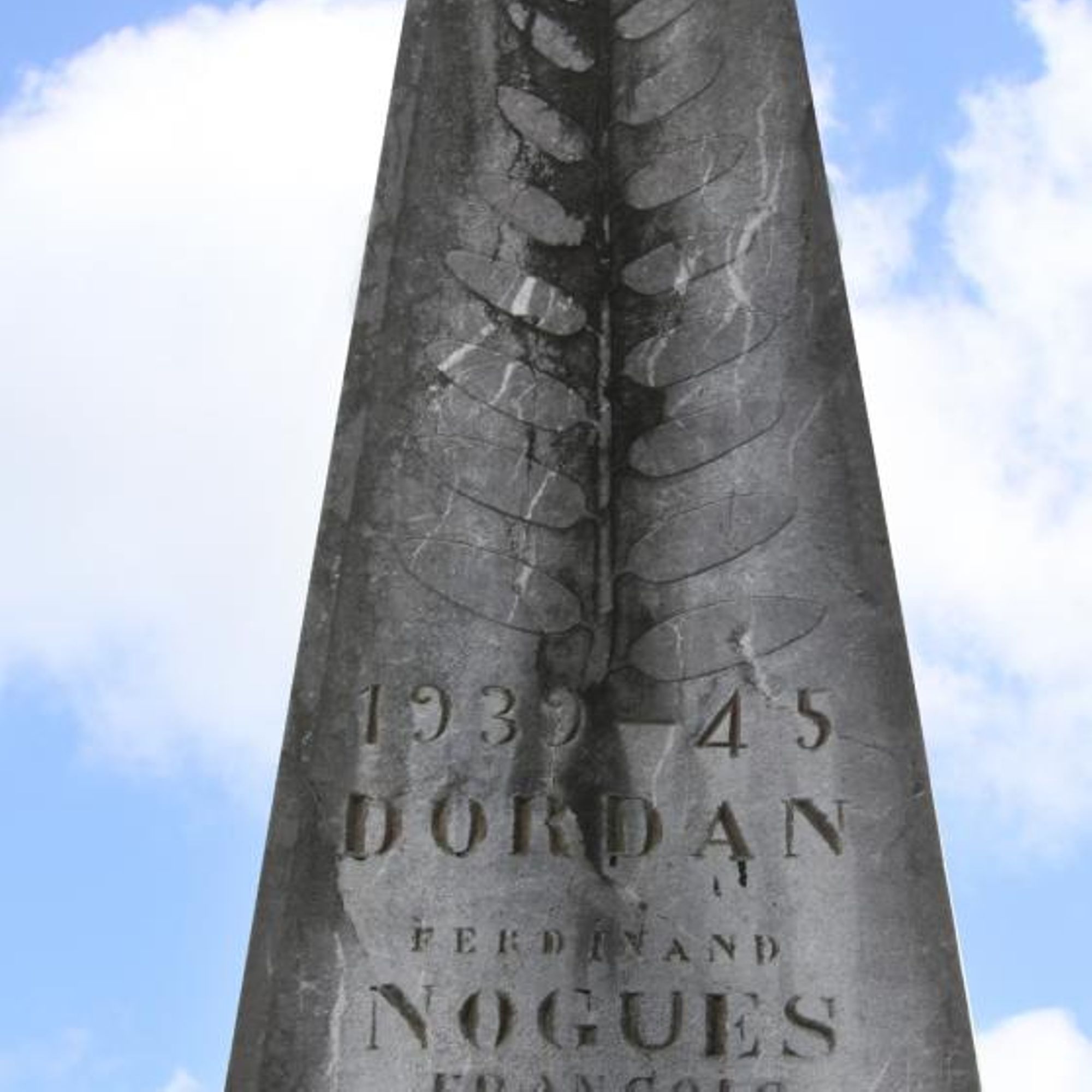 Enfin sur la deuxième partie de la colonne (conique) est gravé une branche d'olivier puis 1939-45 Dordan François et Noguès Ferdinand 1957