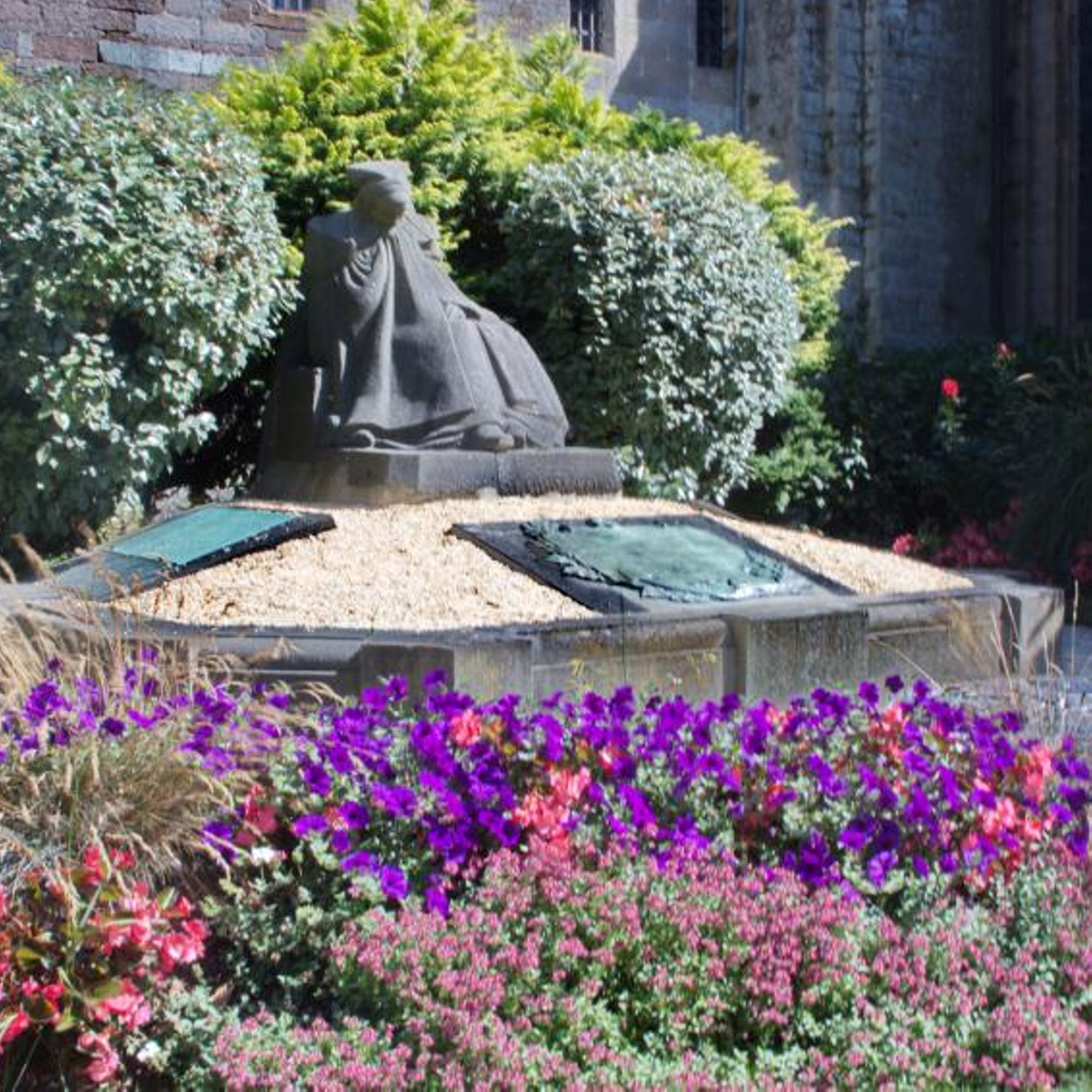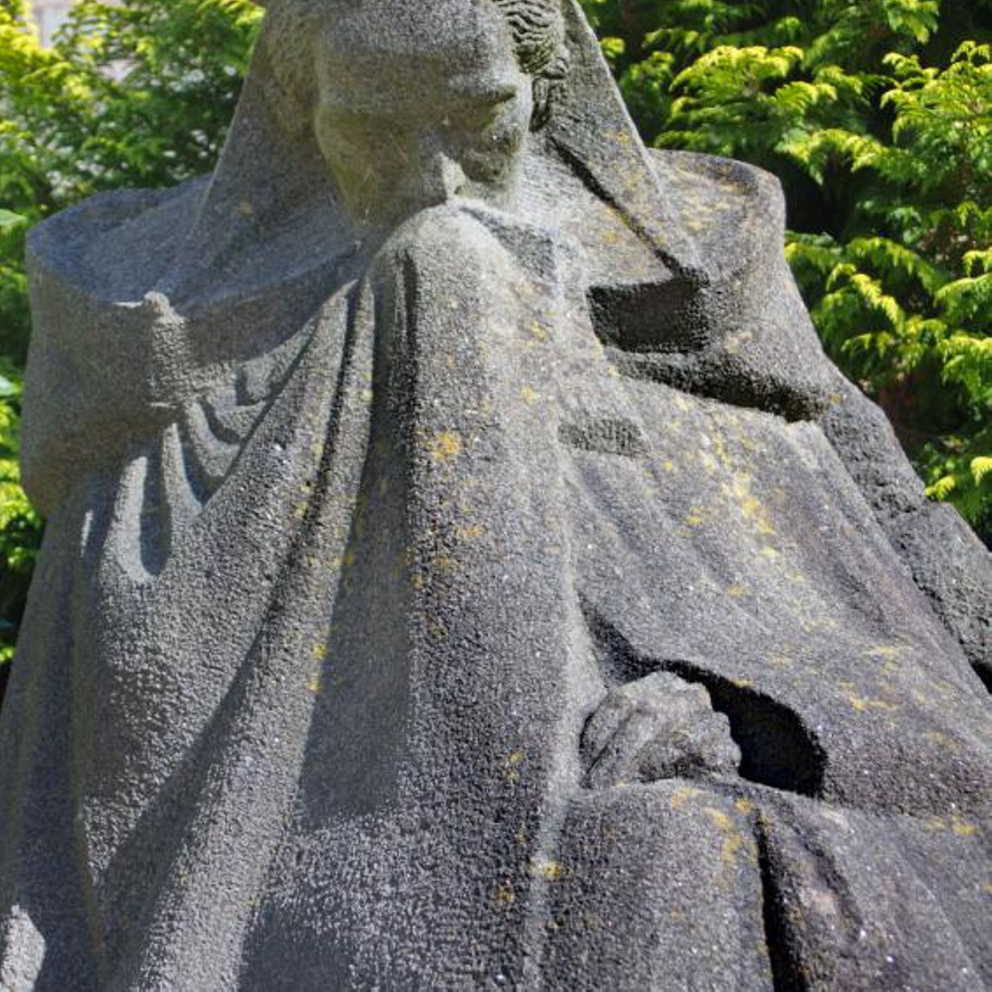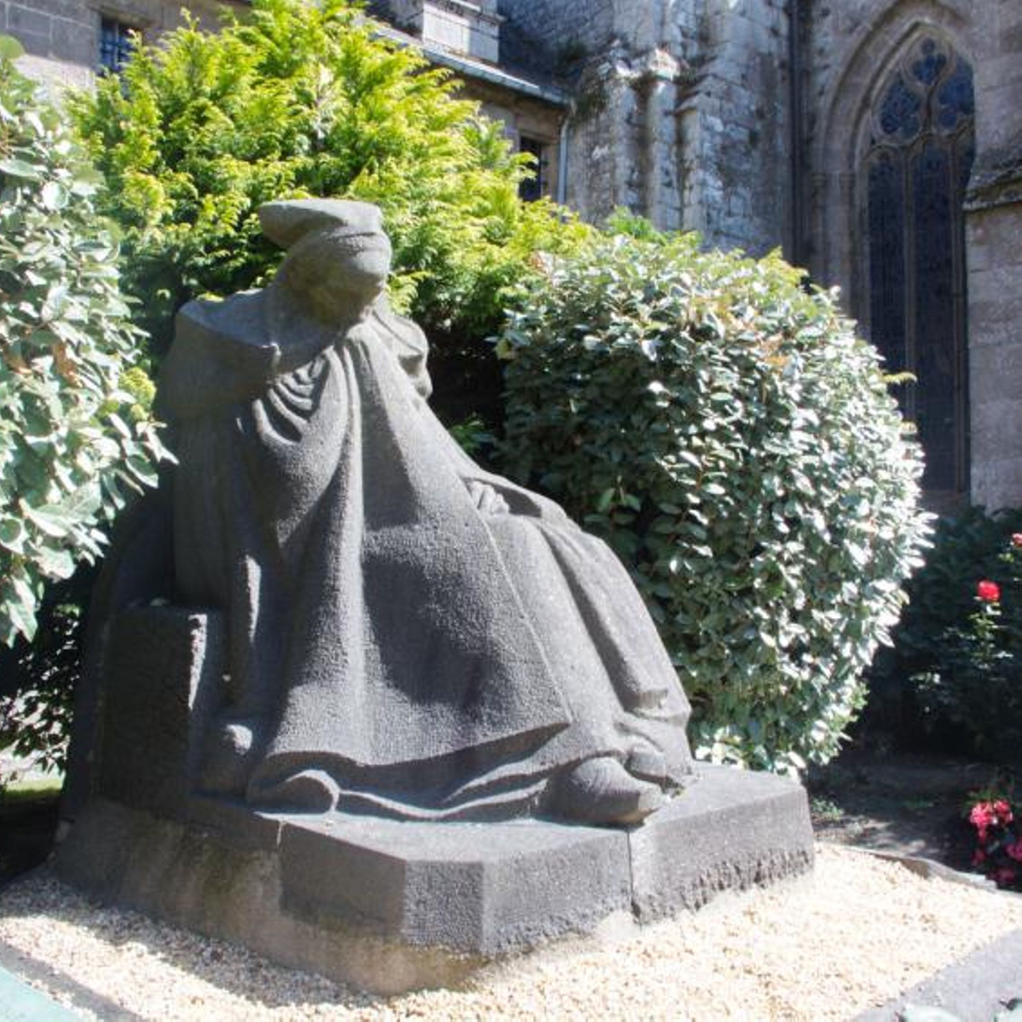 - Statue d'une femme trégoroise avec une cape de deuil et une coiffe.