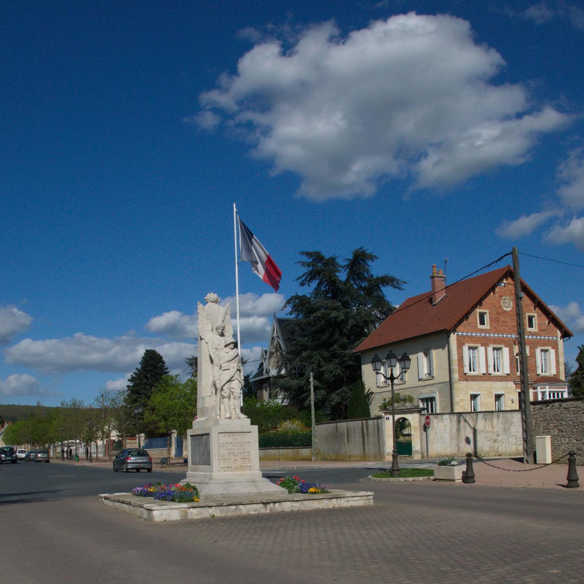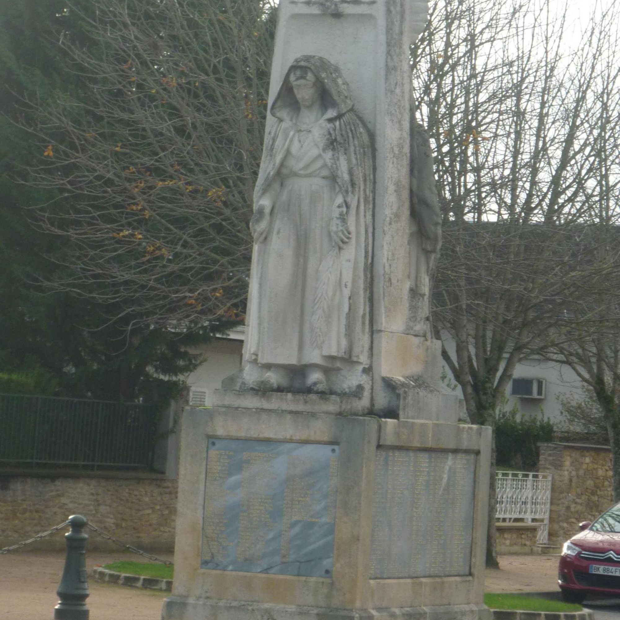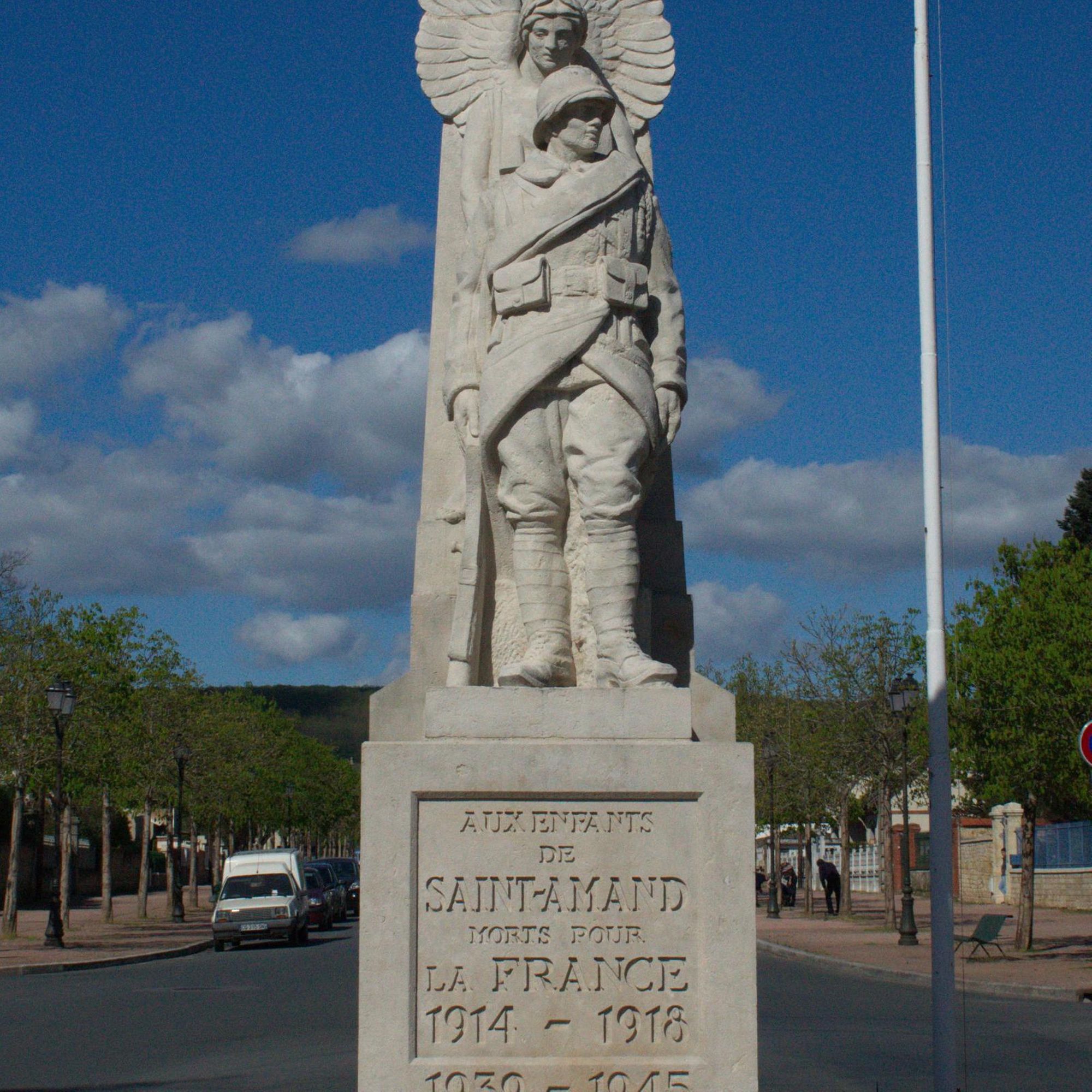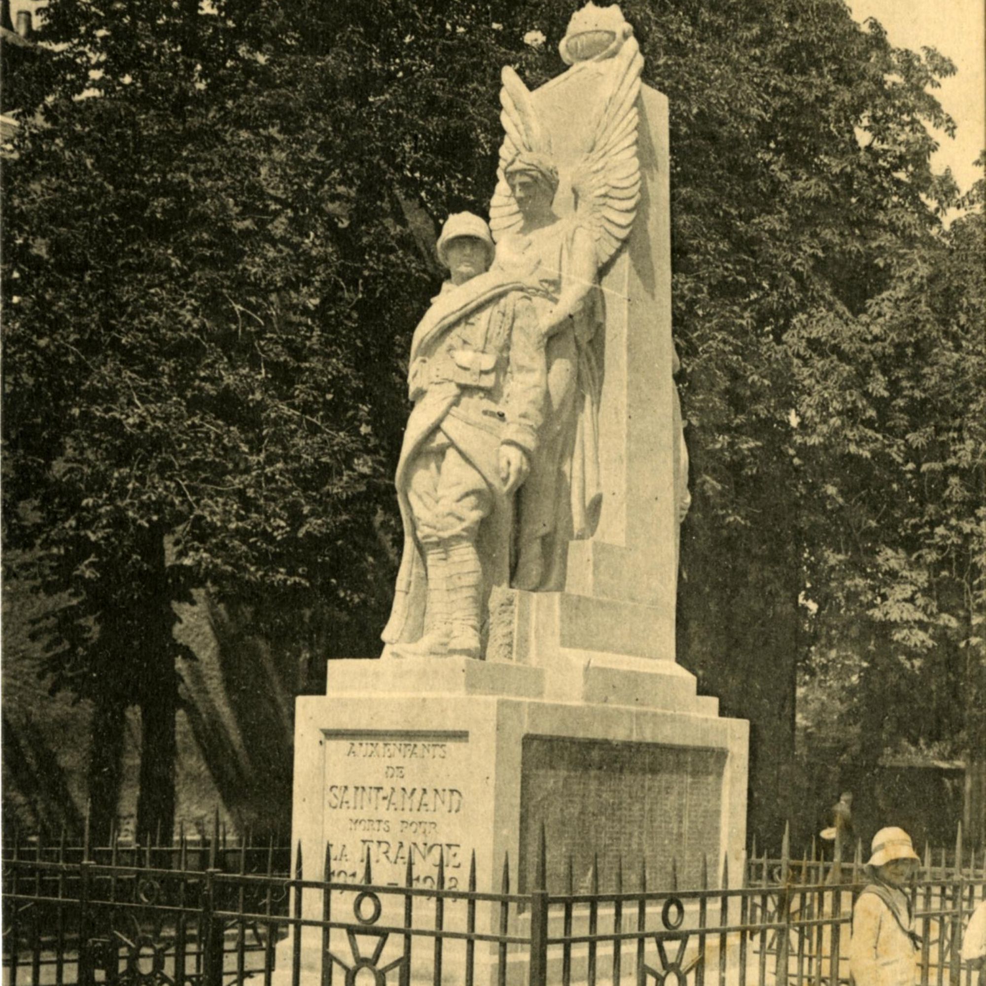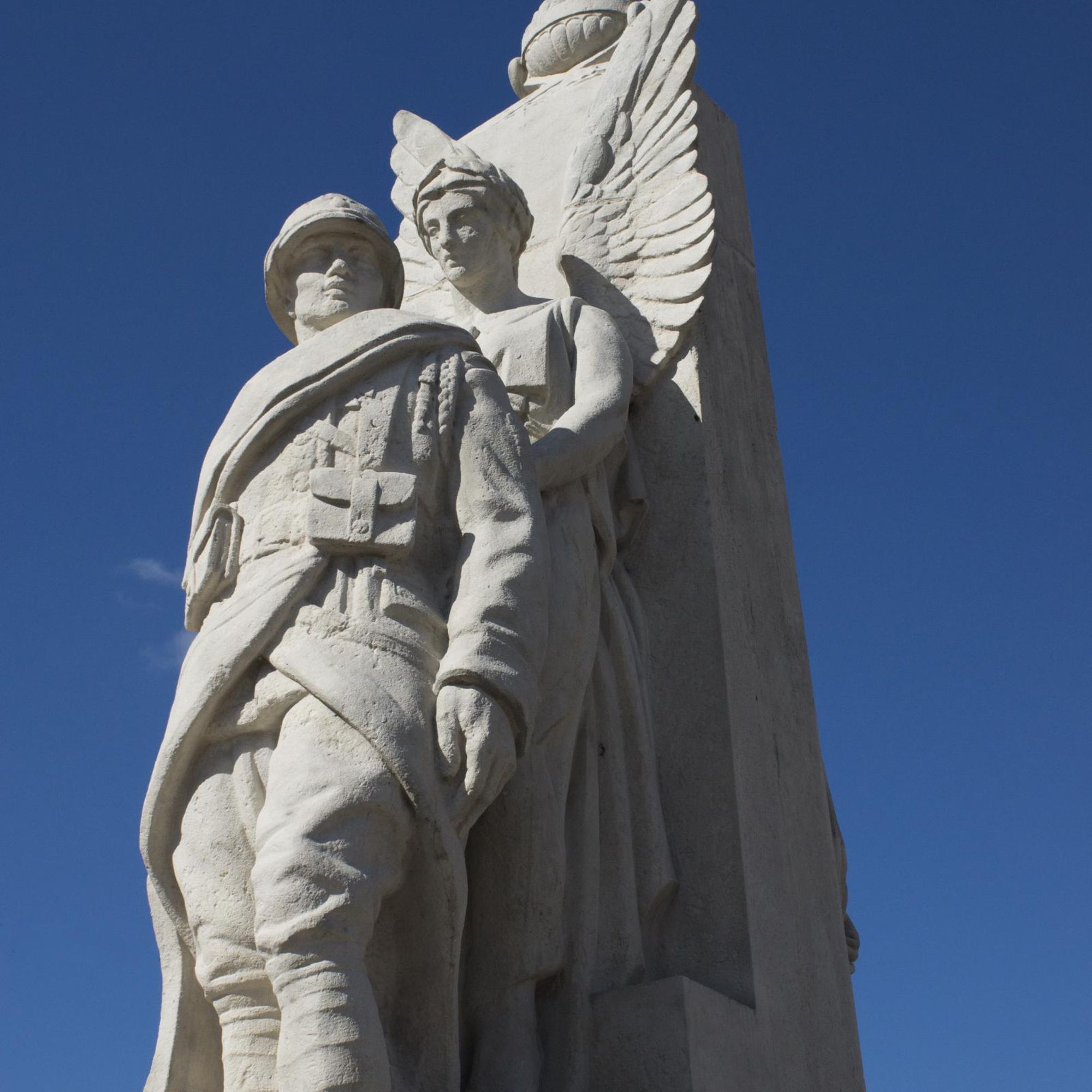 - Obélisque avec urne au sommet et statue de poilu couronné par une victoire ailée