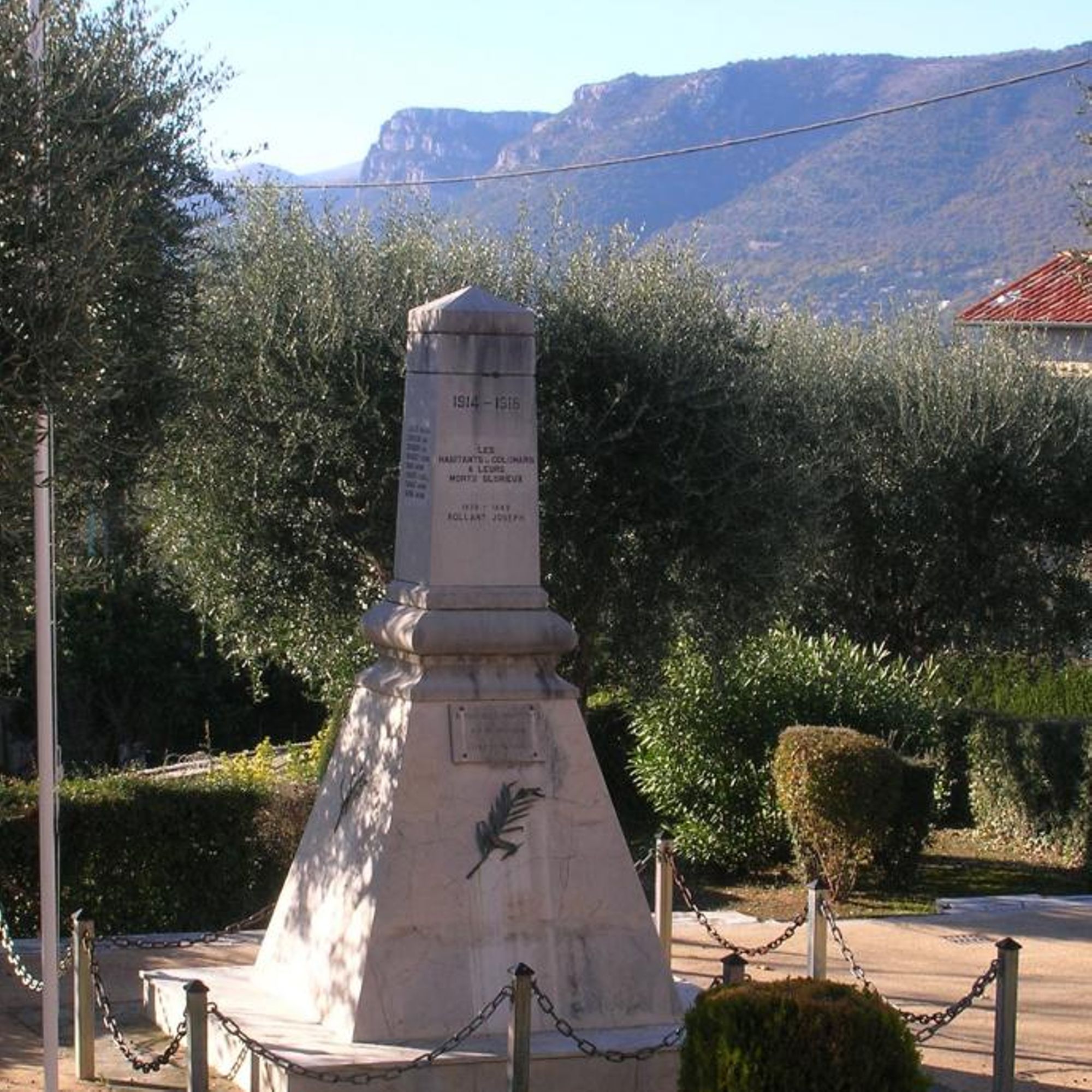 - KINOSSIAN Yves, CALVALIÉ Hélène (sous la dir.), Les Monuments aux Morts 1914-1918 dans les Alpes-Maritimes, Milan, Silvana Ed., 2015, p. 152-153