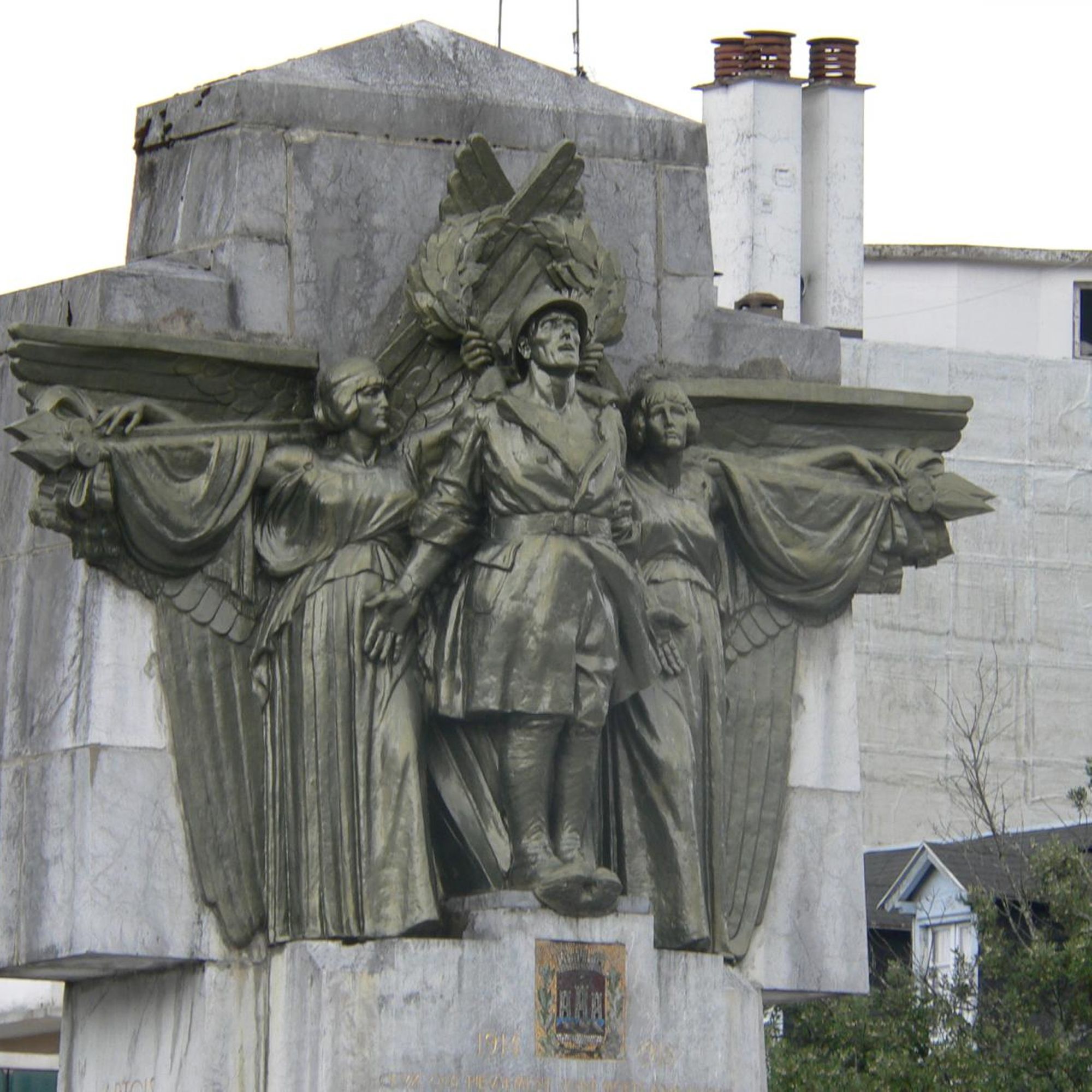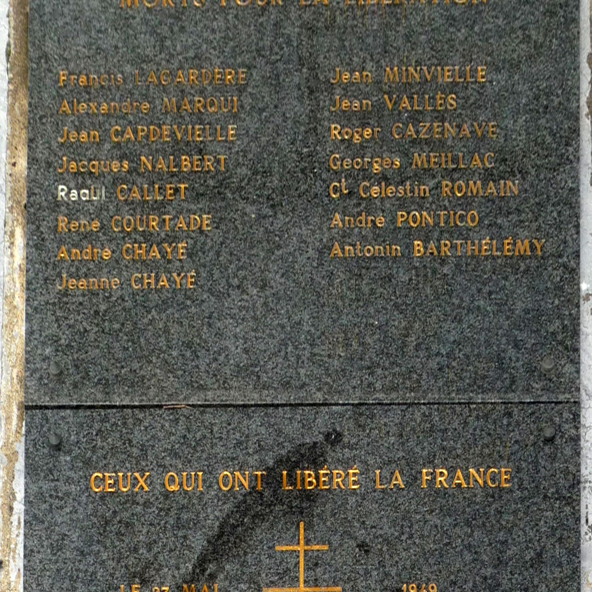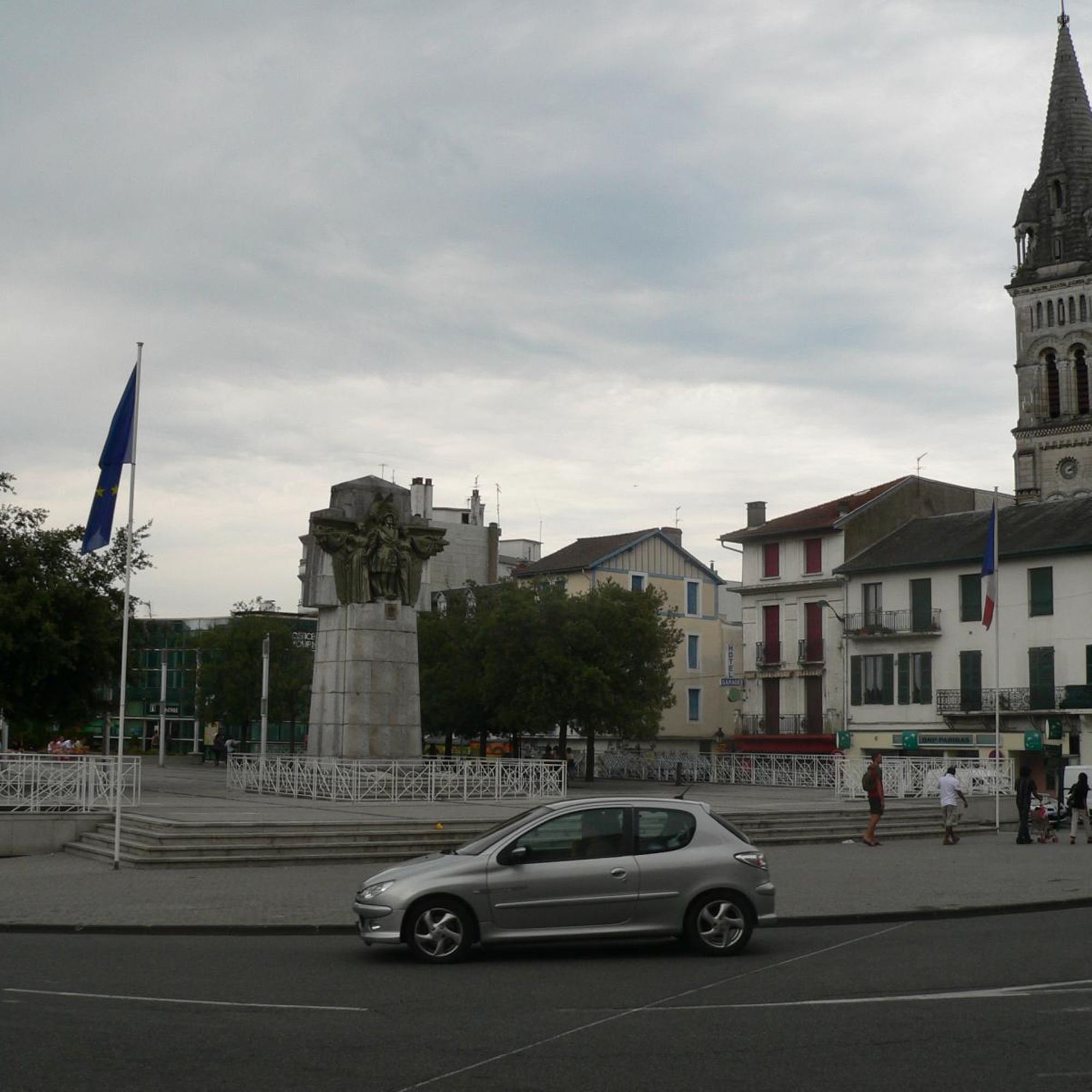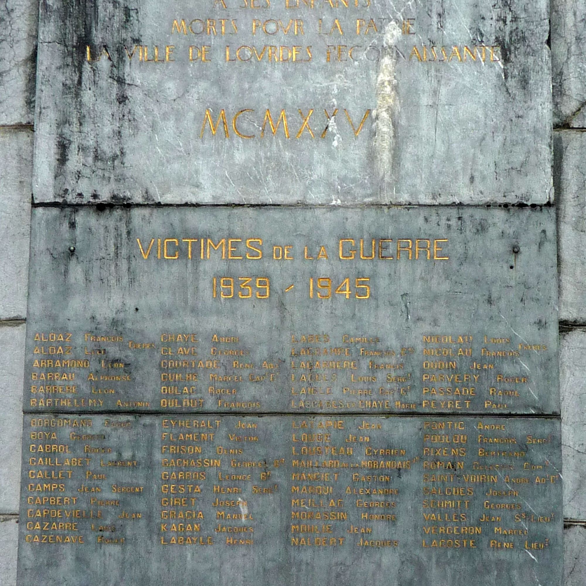 Obélisque imposant (une quinzaine de mètres de hauteur) avec statue d'un poilu couronné par 2 victoires ailées portant chacune un drapeau
