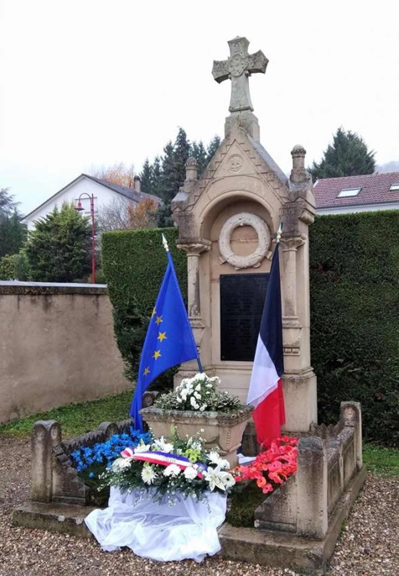 - Monument offert par la société ''la jeunesse d'Entrange'' (attesté par un échange de courrier entre mairie d'Entrange et sous-préfecture de Thionville, correspondance conservée aux Archives Départementales de la Moselle ; aucune autre information disponible sur cette société).