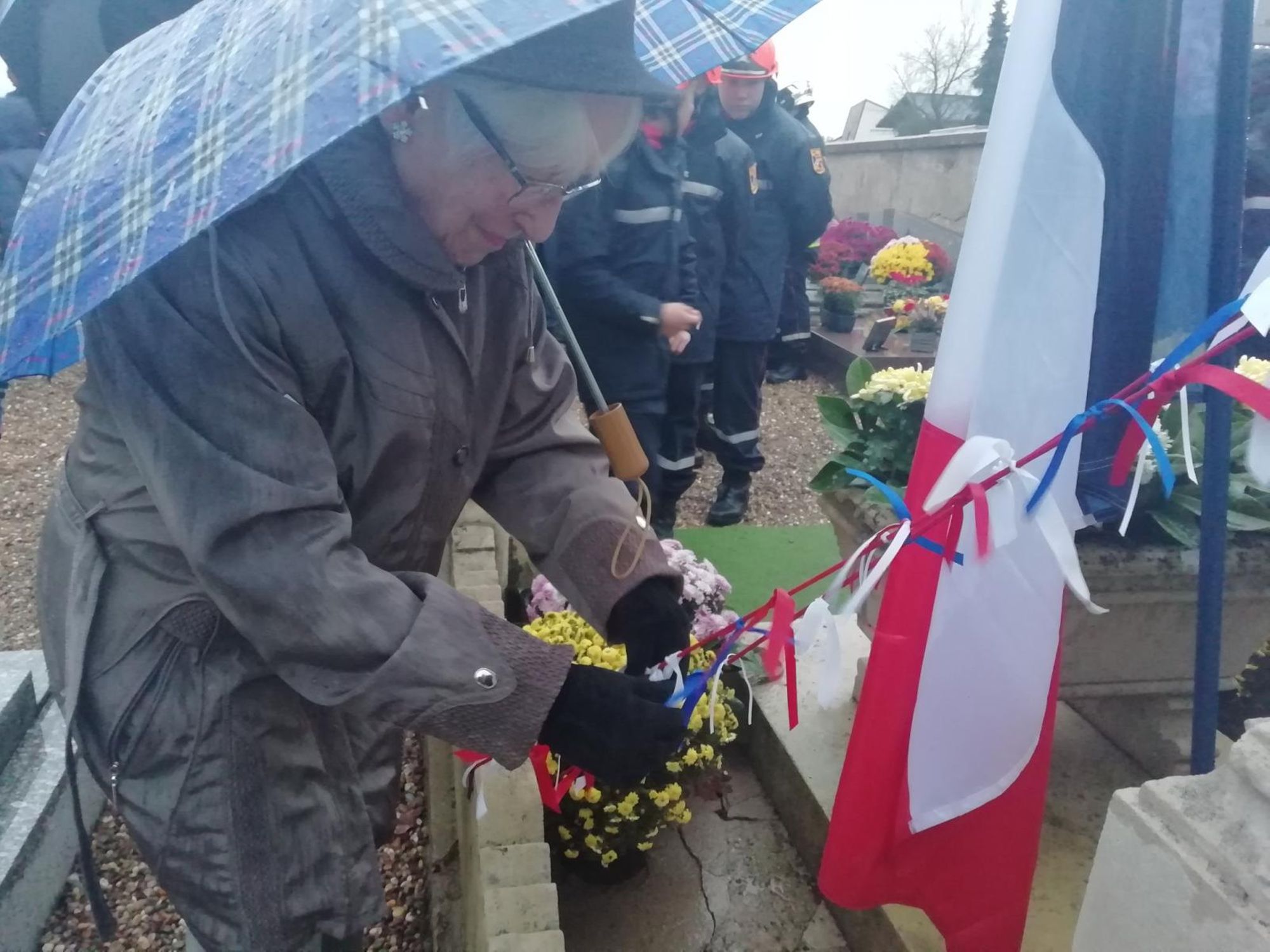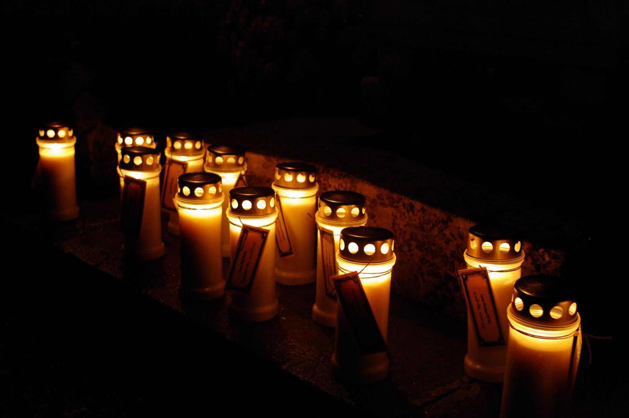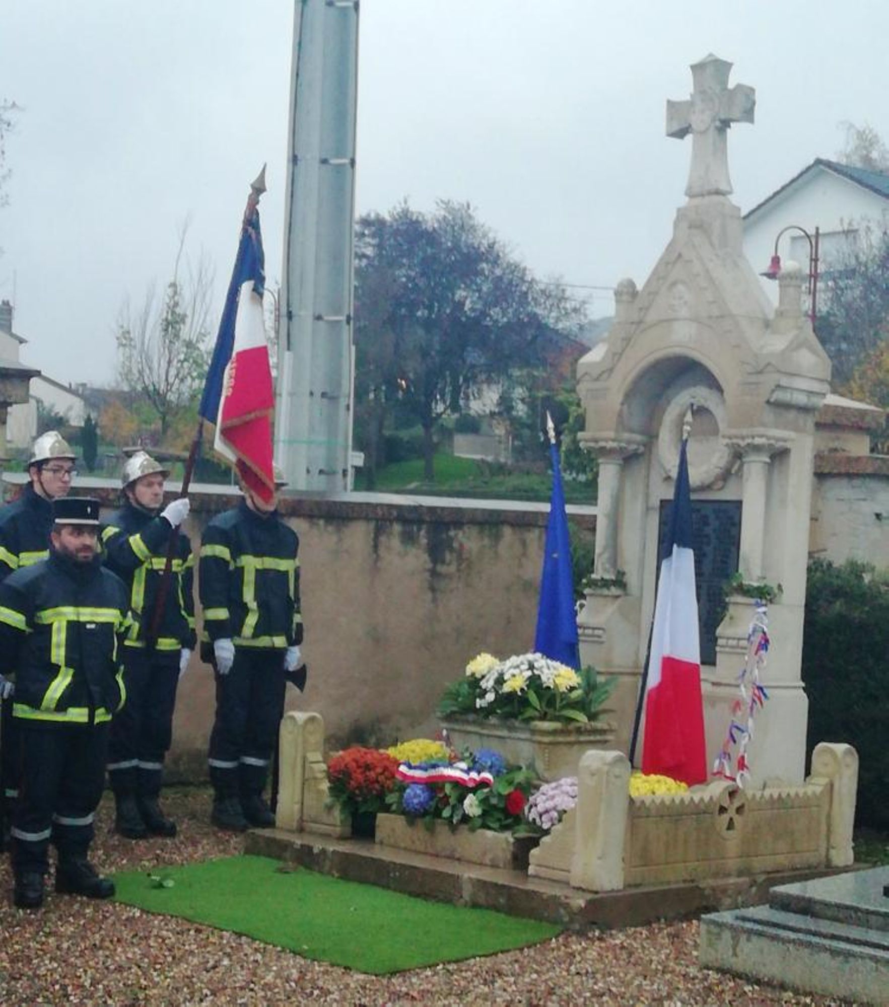 Commémoration de l'Armistice dans le cadre du Centenaire de la Grande Guerre : depôt de veilleuses sur le monument aux morts, chacune portant le nom d'un soldat originaire d'Entrange mort pendant le conflit.