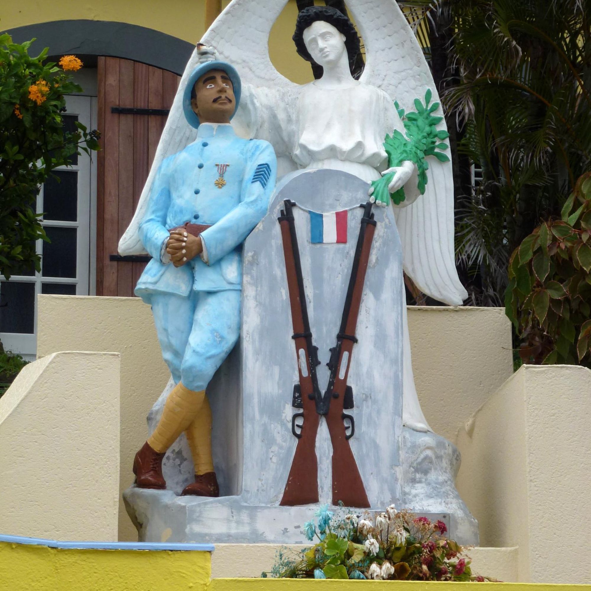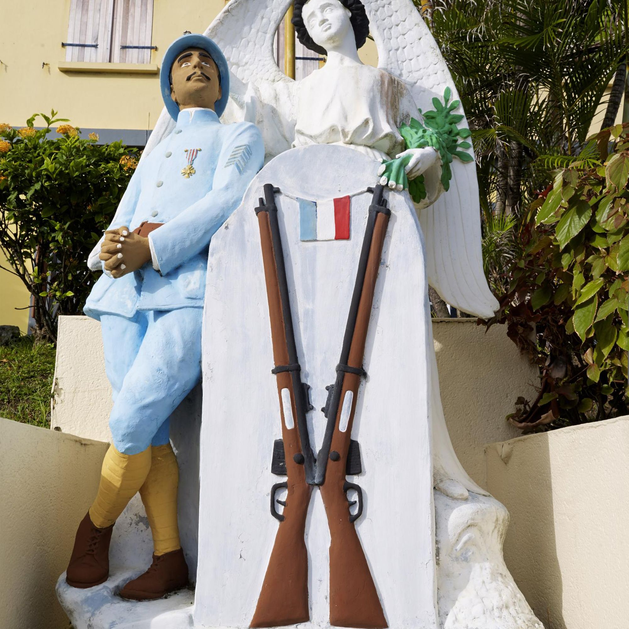 Comme l'indique une petite plaque de métal gravé (d'envirron 30x20cm) "Ce monument a été reproduit par le sculpteur Louis Réminy ". Il s'agit d'un sculpteur Martiniquais autodidacte. C'est aussi lui qui a sculpté le monument de la commune de fonds St-Denis.