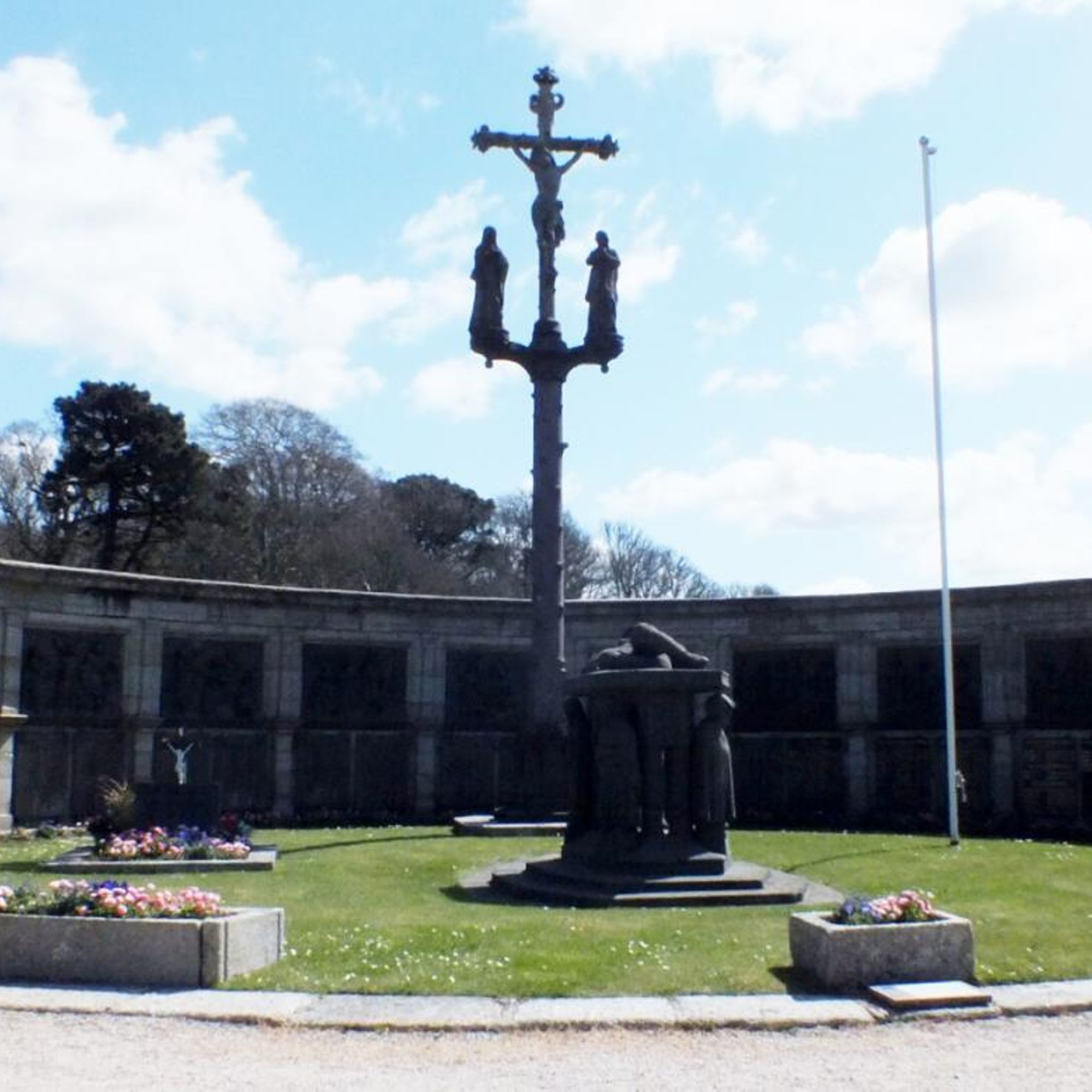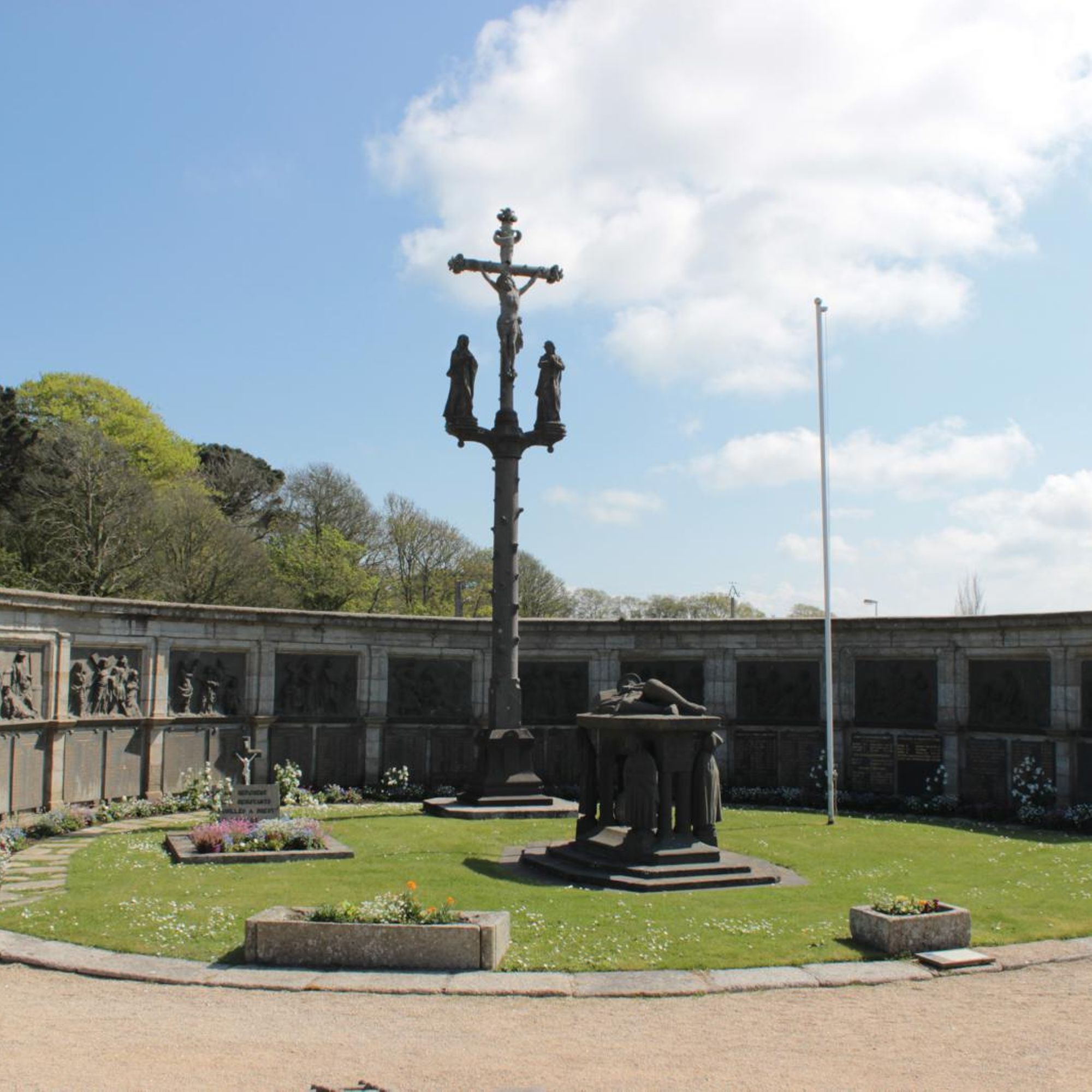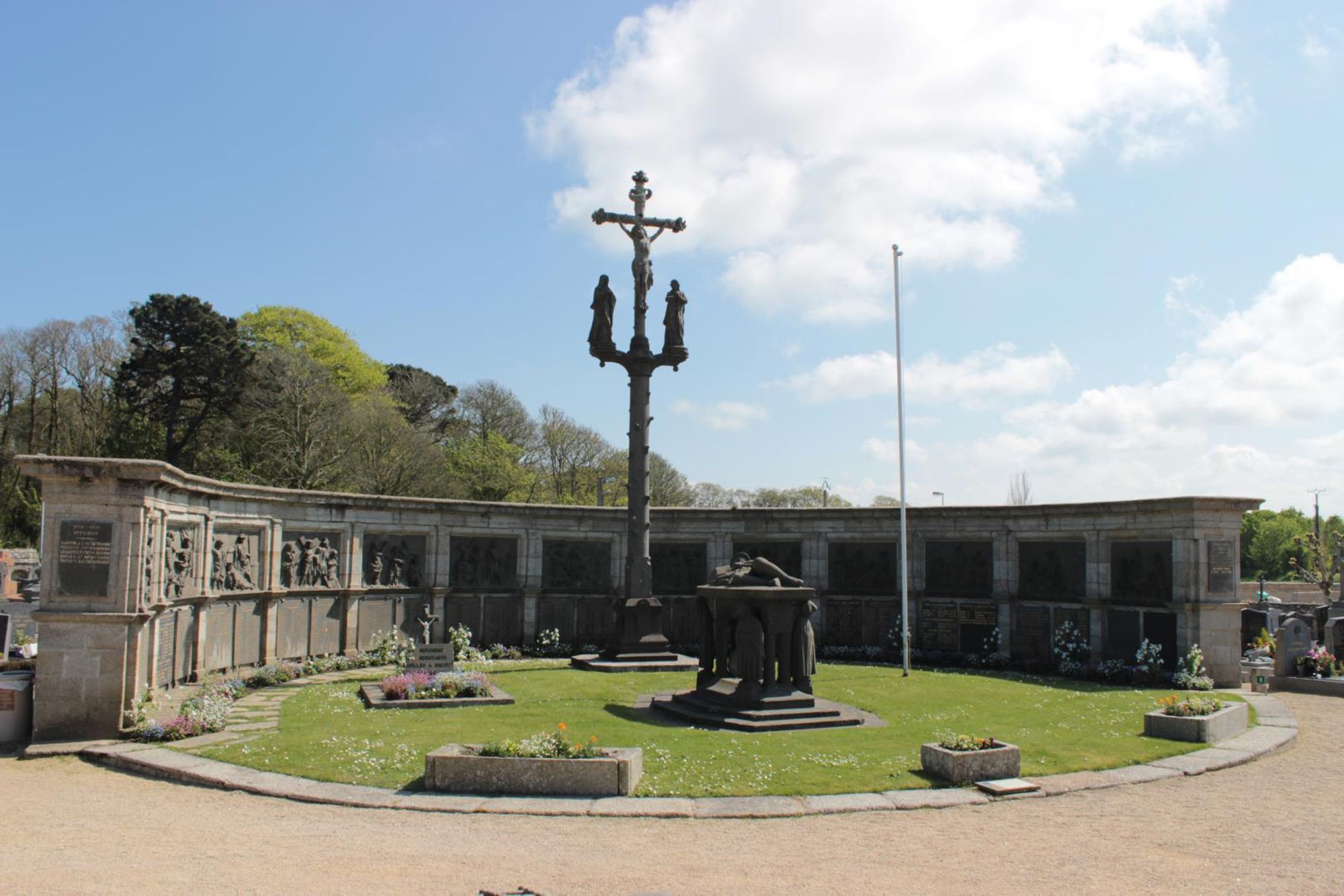 - Un mur en hémicycle qui présente les stations des chemins de croix