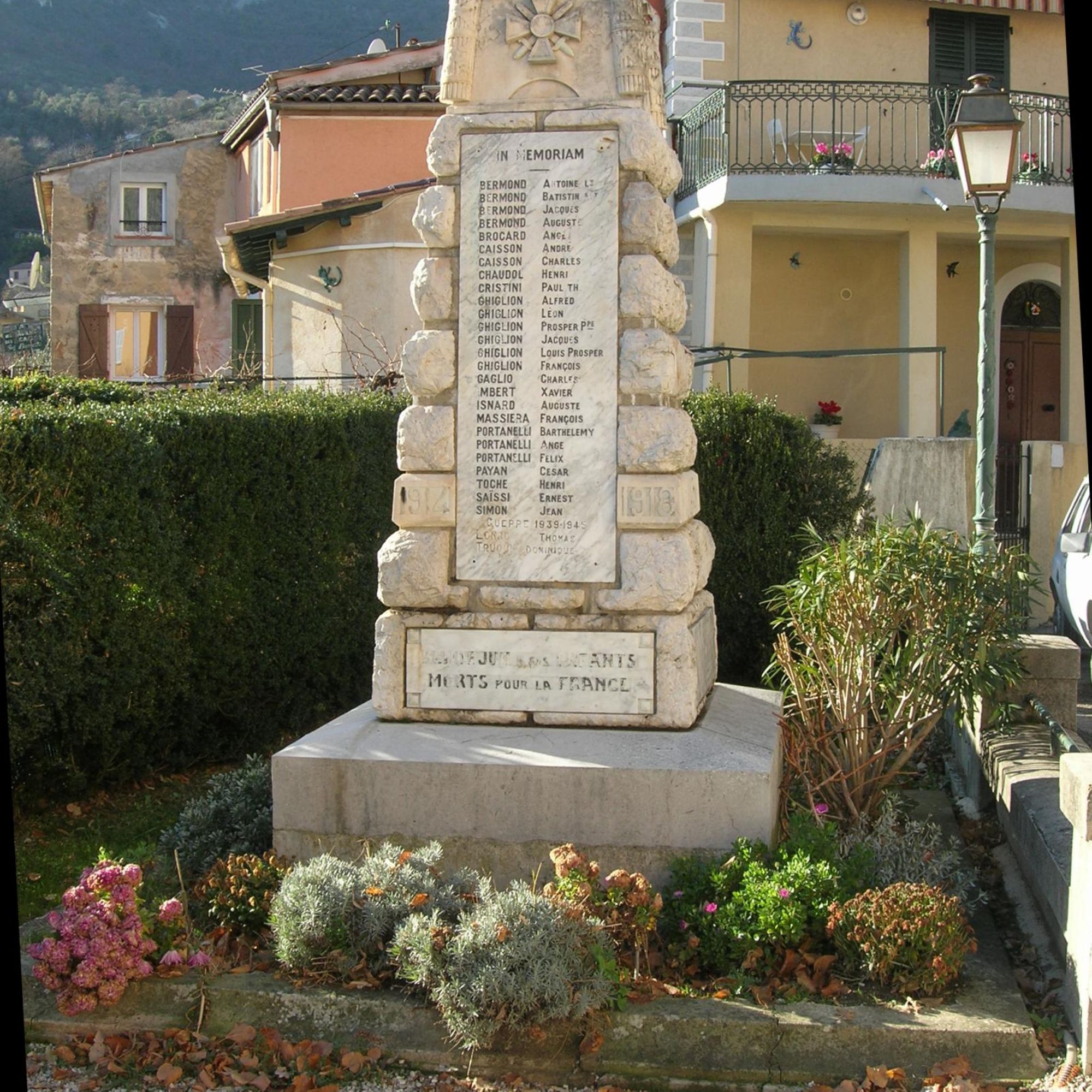 - KINOSSIAN Yves, CALVALIÉ Hélène (sous la dir.), Les Monuments aux Morts 1914-1918 dans les Alpes-Maritimes, Milan, Silvana Ed., 2015, p. 84-85