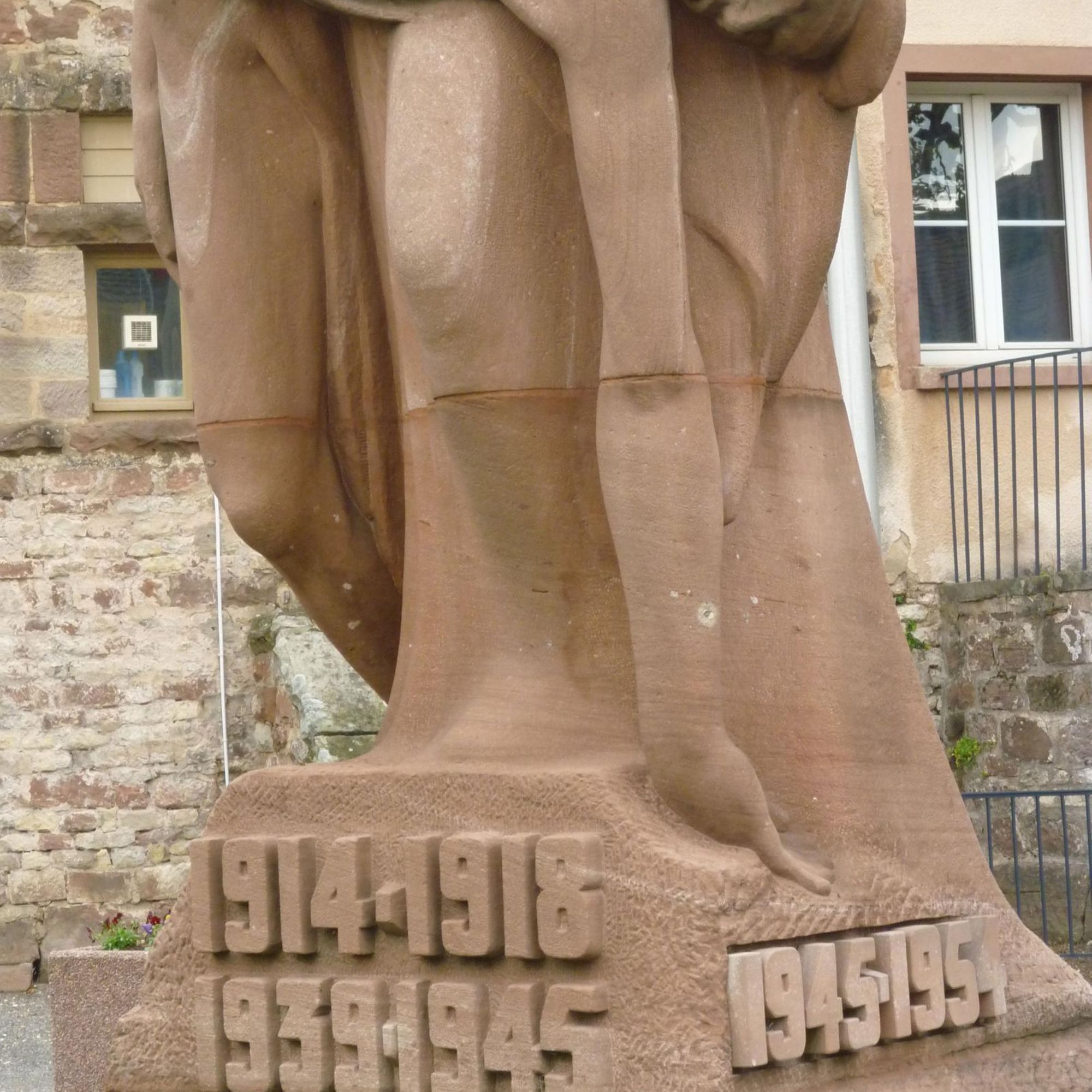 - L'ensemble est constitué d'un statue et d'un mur sur lequel se trouve un bas-relief d'hommage aux morts de 14-18, + une plaque explicative