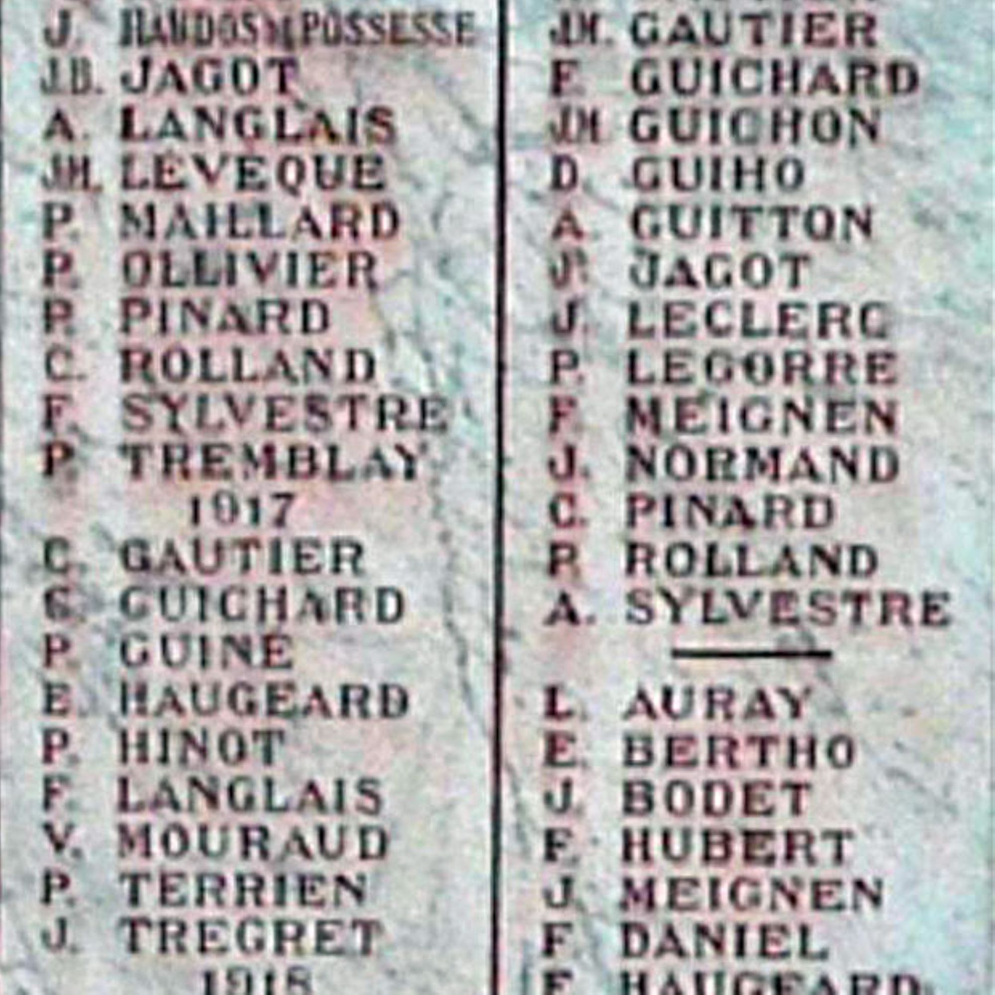 Lors d’un voyage en Belgique de plusieurs Guérinois qui souhaitaient célébrer le centenaire de la mort d’un grand-oncle, Jean Fourage, ses descendants ont découvert à la sortie du cimetière militaire une série de poteaux qui matérialisaient les soldats décédés au front.