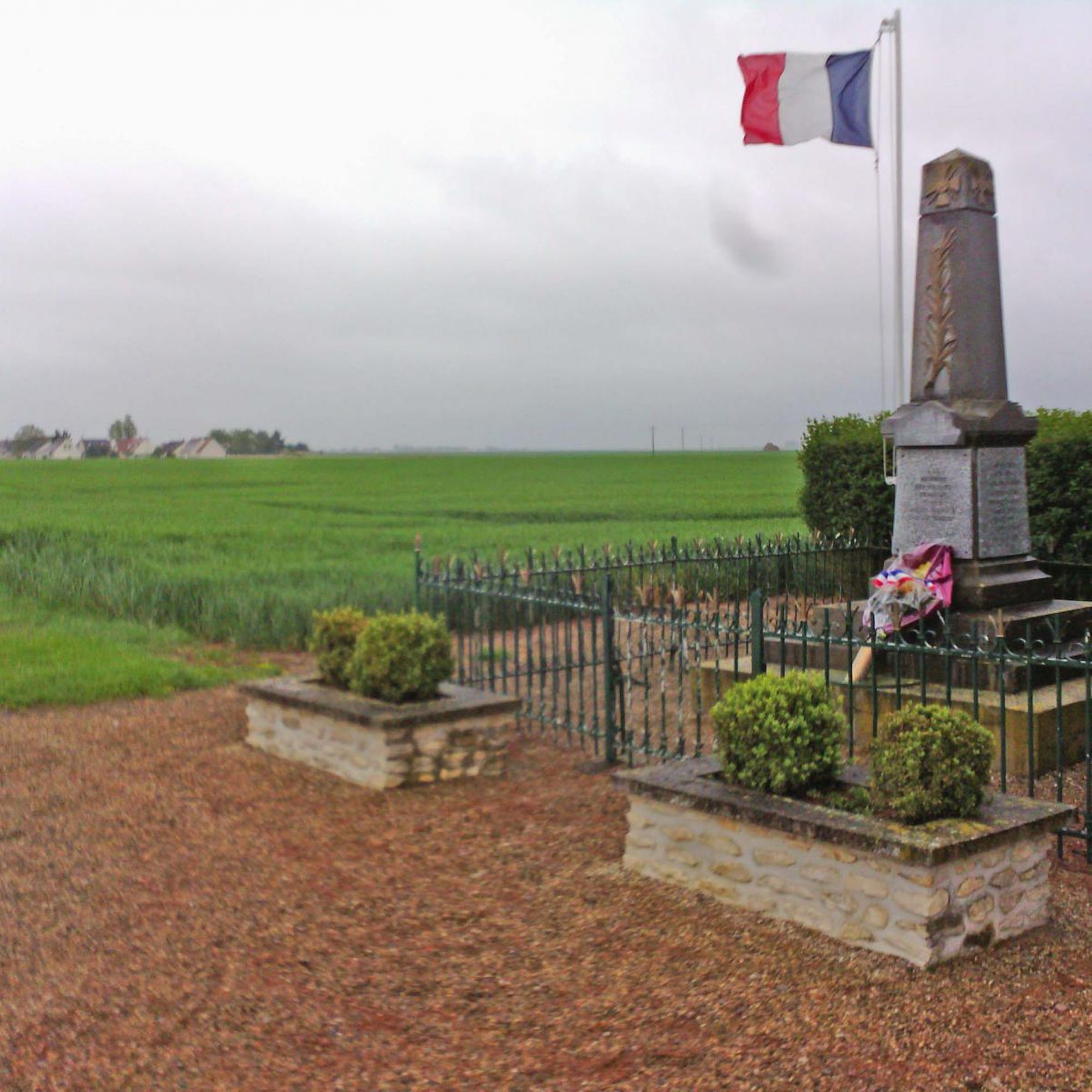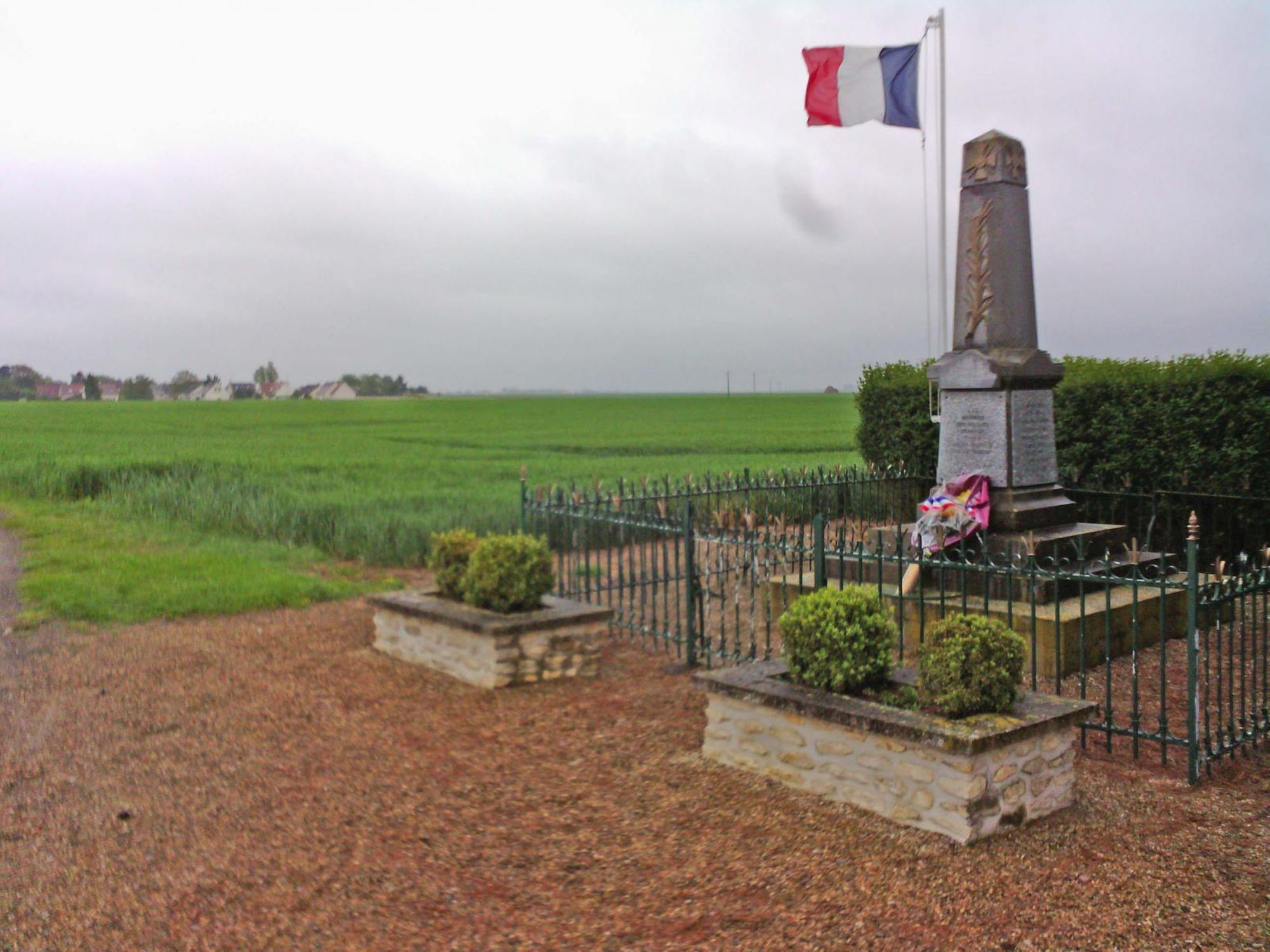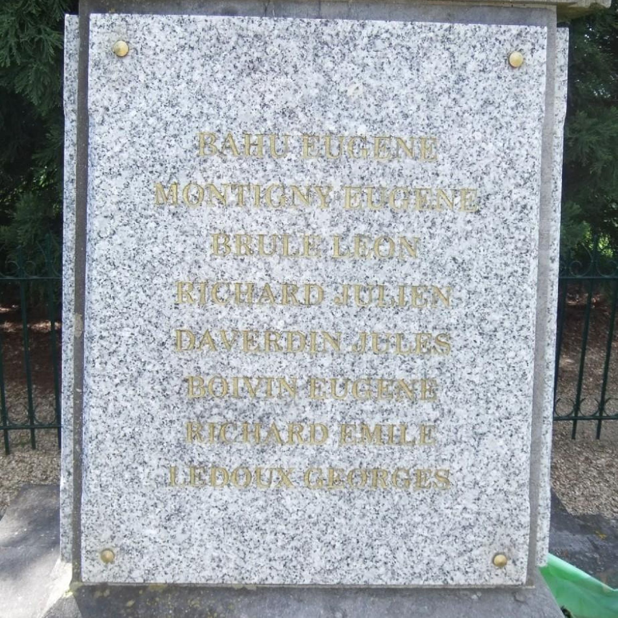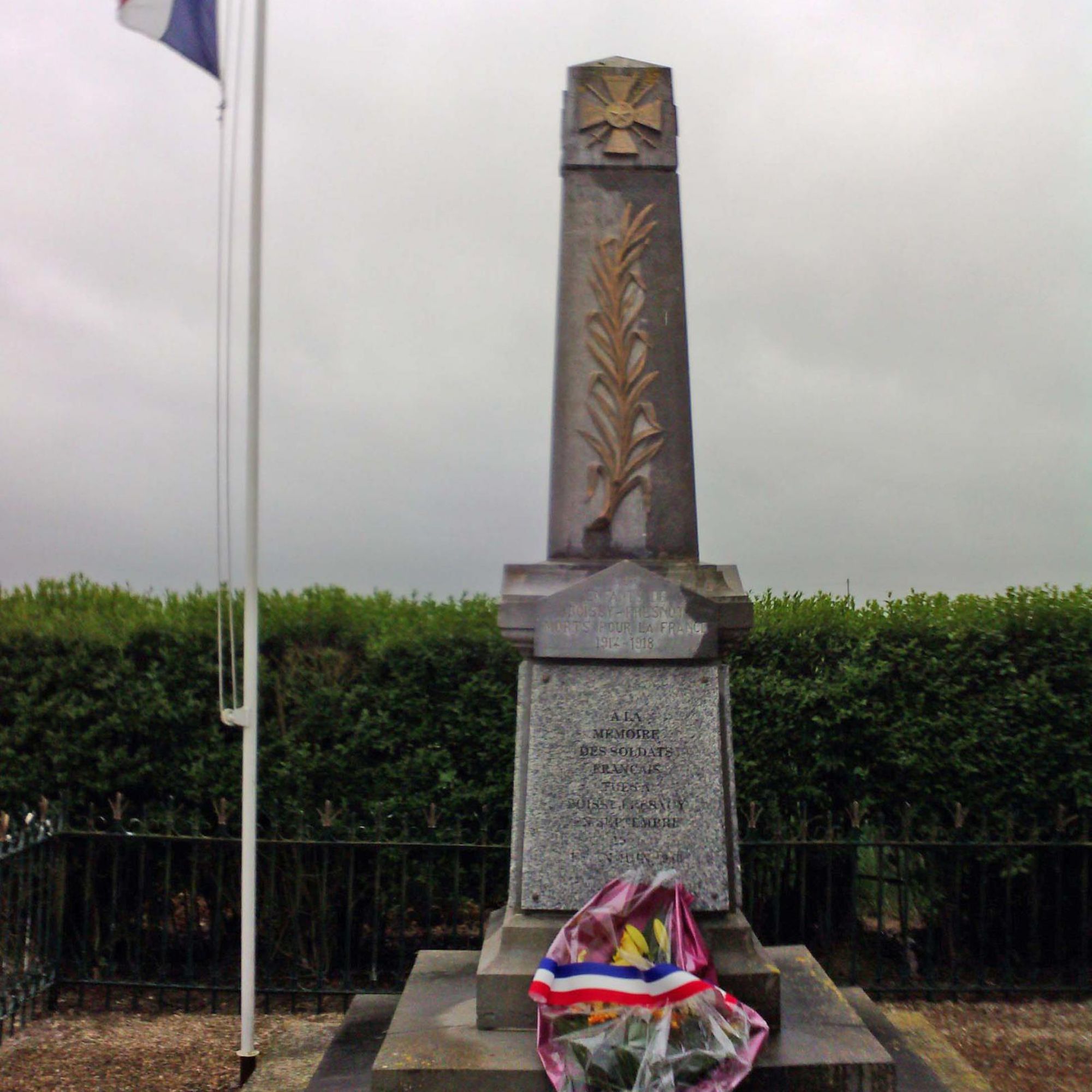 Ornements : *A son sommet sur les 4 faces : une croix de guerre * Palme