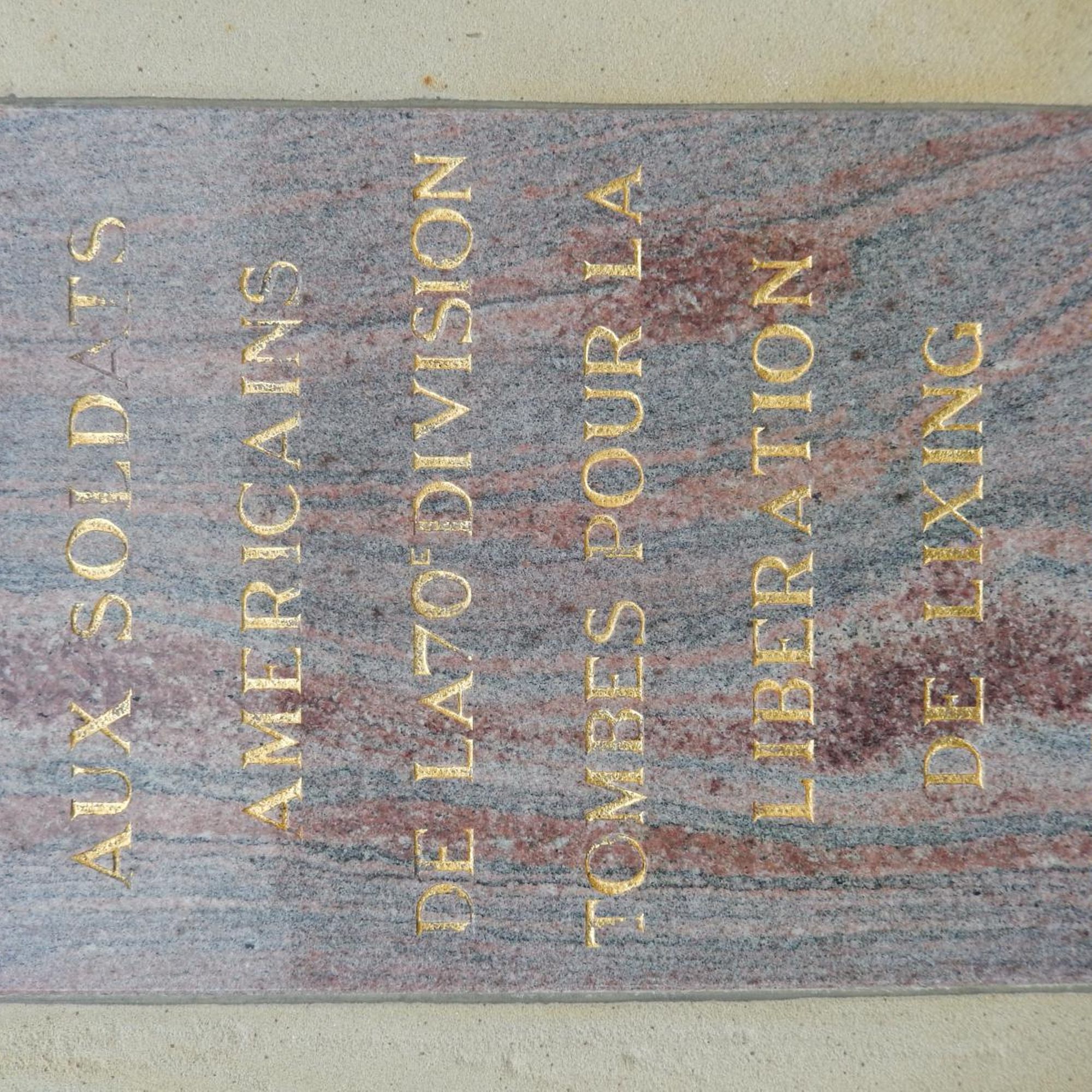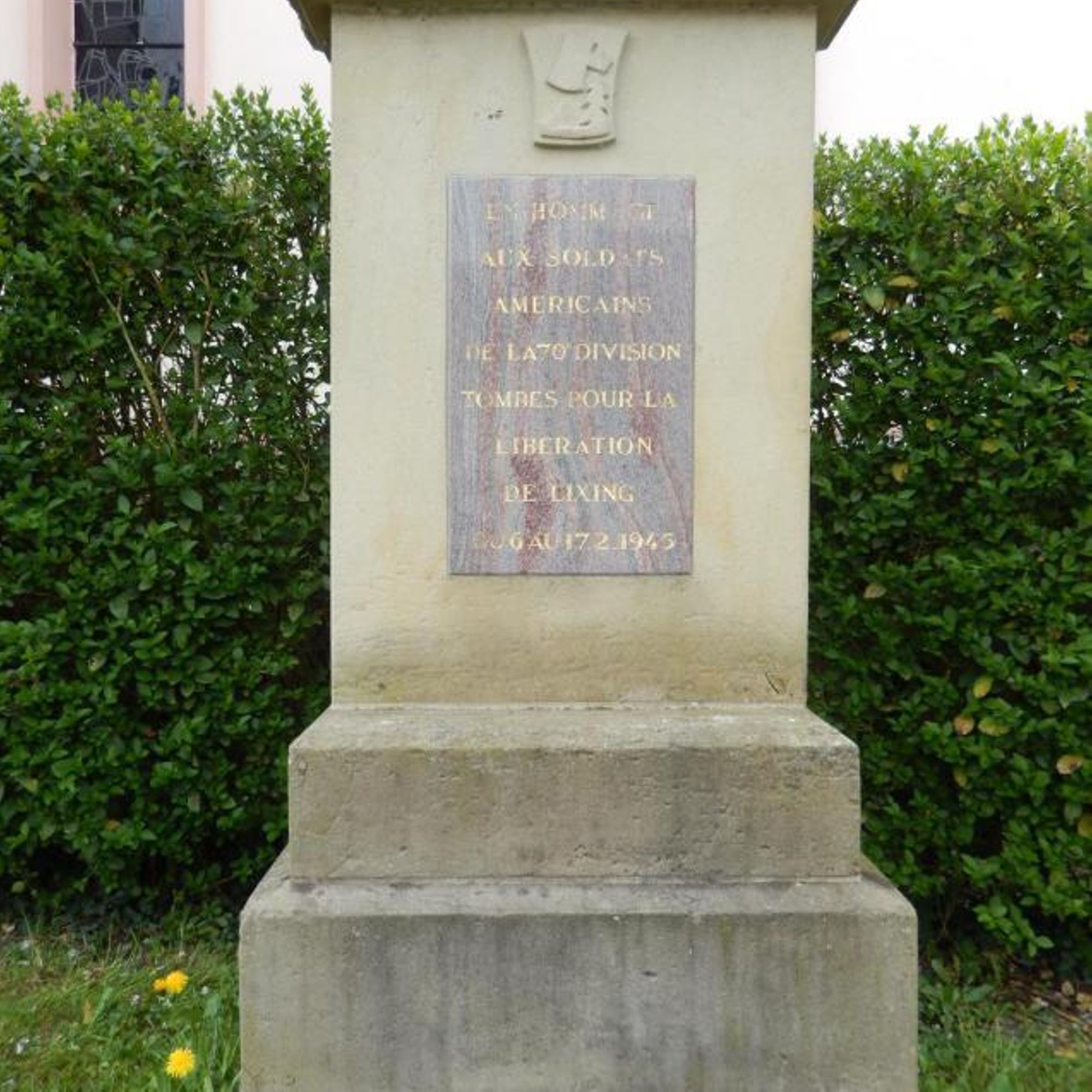 Le monument est essentiellement un socle en béton, avec une petite décoration d'un hache et d'un sapin, et une plaque en hommage à la 70ème division américaine. Il semble que le monument a été récemment déplacé (voir photo du point de contact entre le sol et le monument).