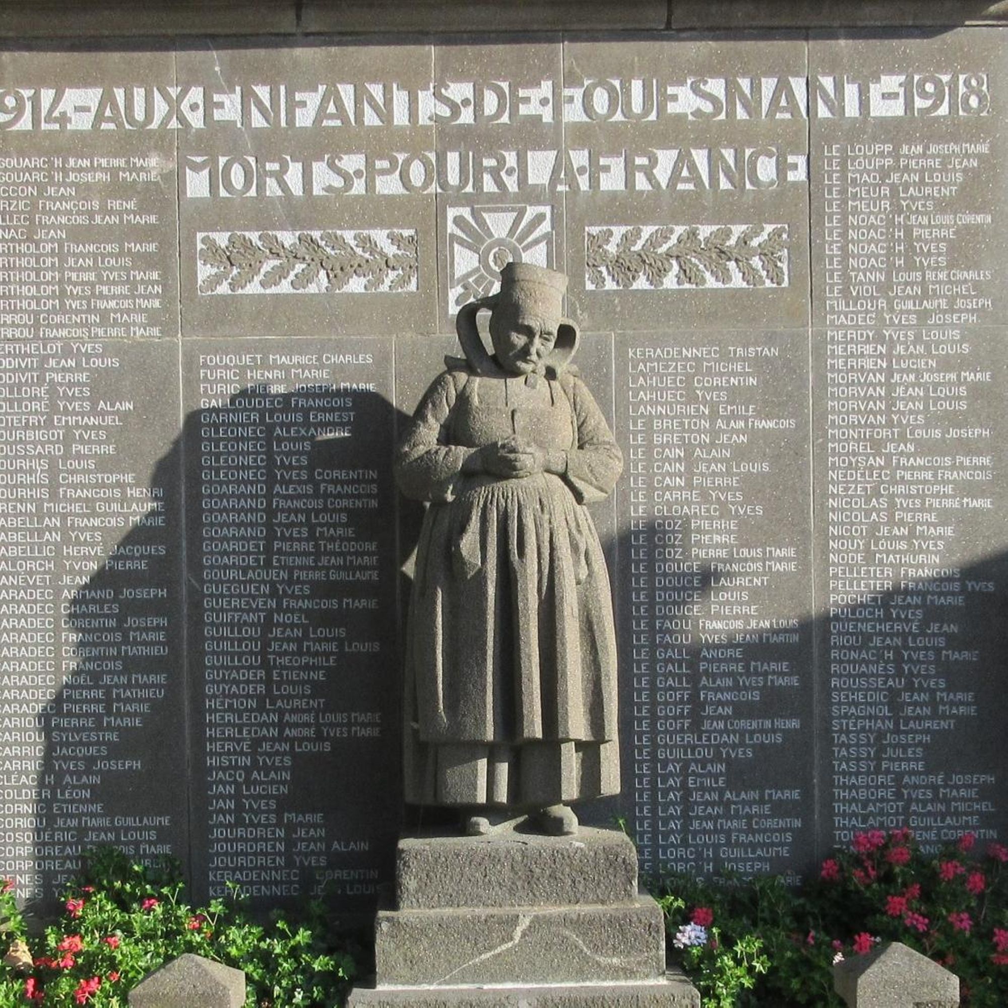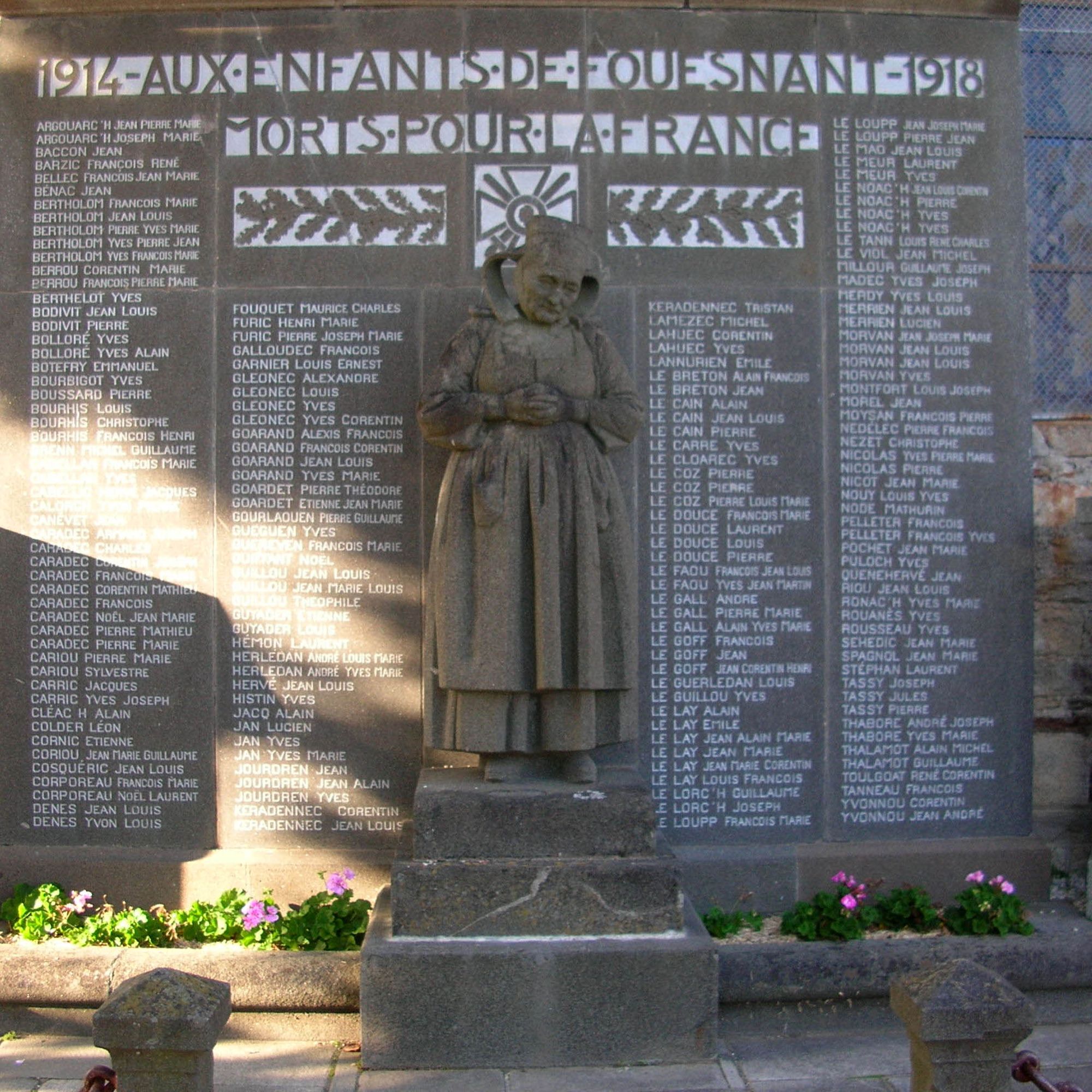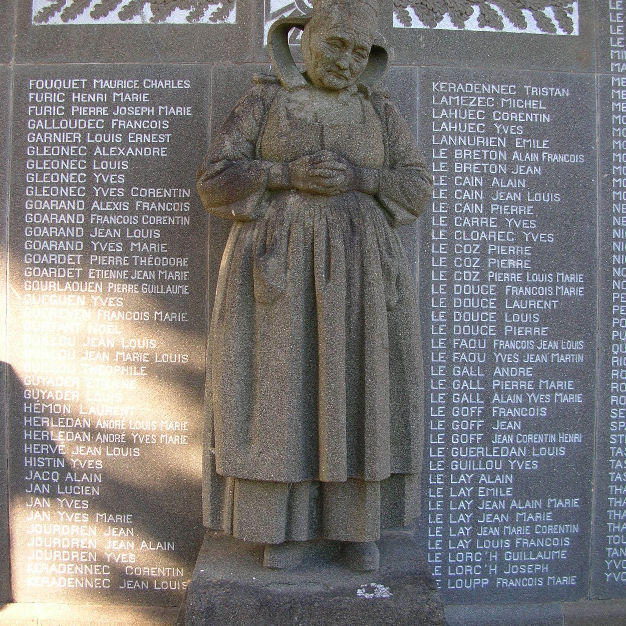 Parmi les Fouesnantaises ayant perdu plusieurs enfants au cours de la guerre, c’est Marie Jeanne Nézet qui fut choisie pour être le modèle du sculpteur breton René Quillivic en 1921 : elle y avait perdu trois fils et un quatrième fils ainsi que son gendre avaient été gazés.