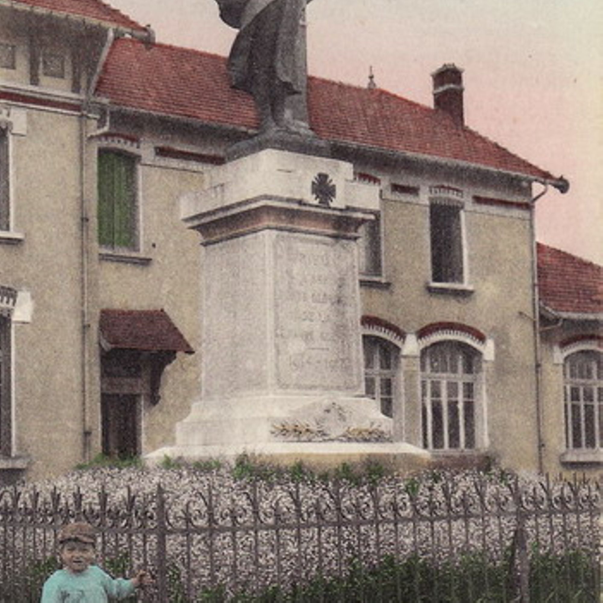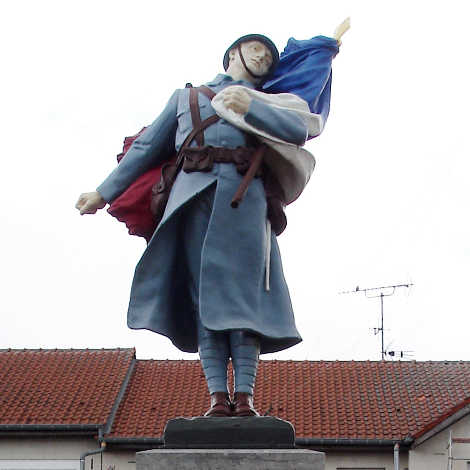 Statue en fonte bronzée : Le poilu tombant dans les plis du drapeau de 2,10m de haut.