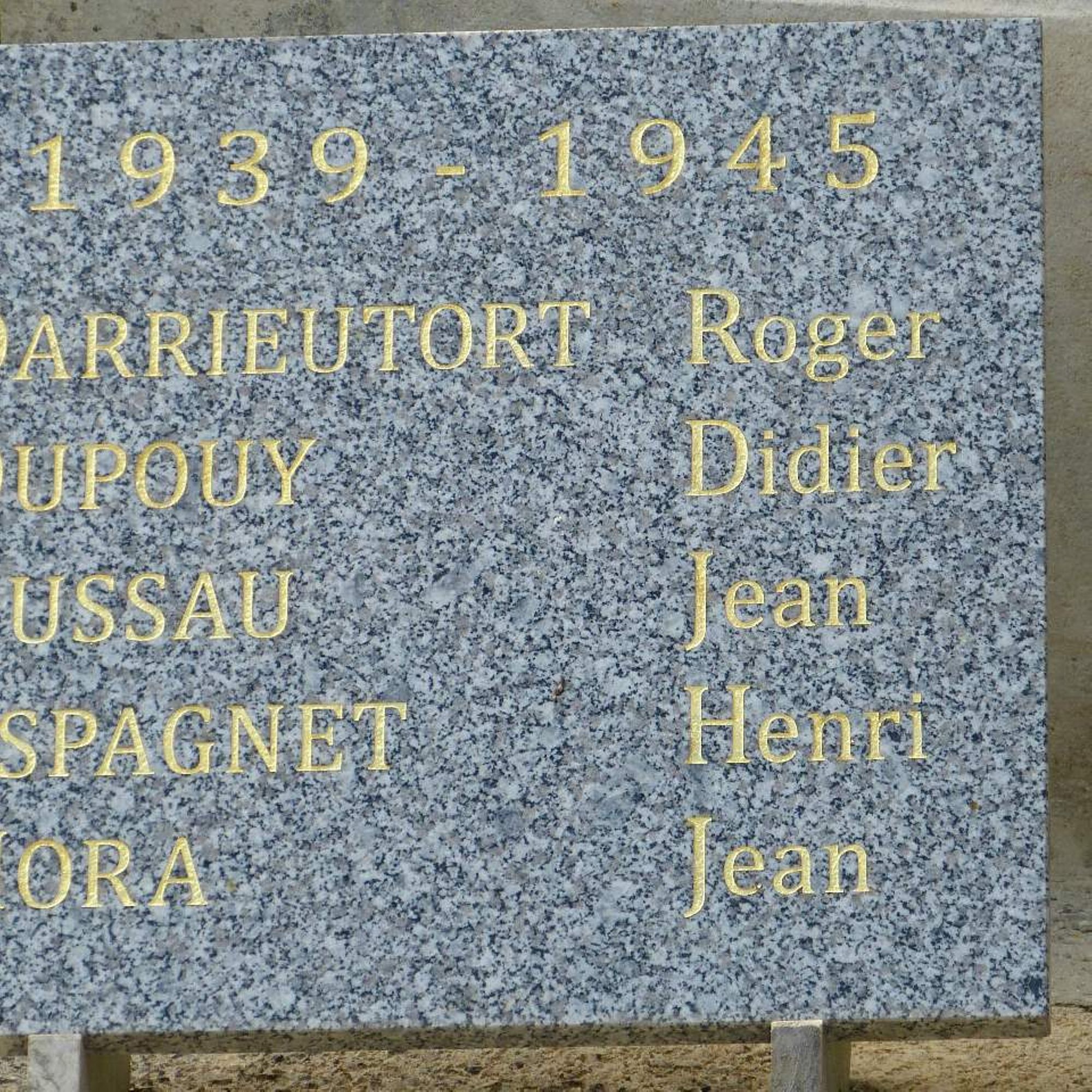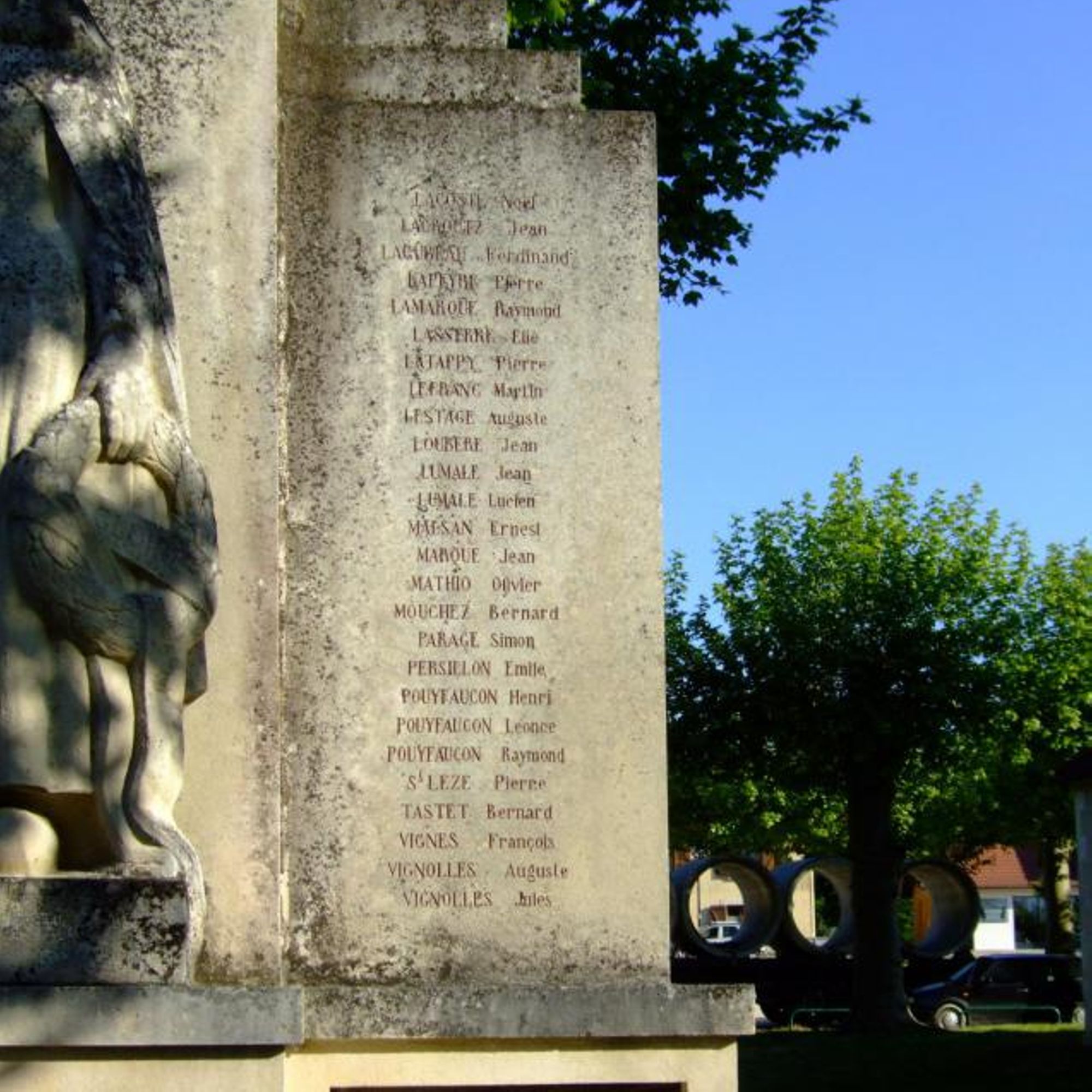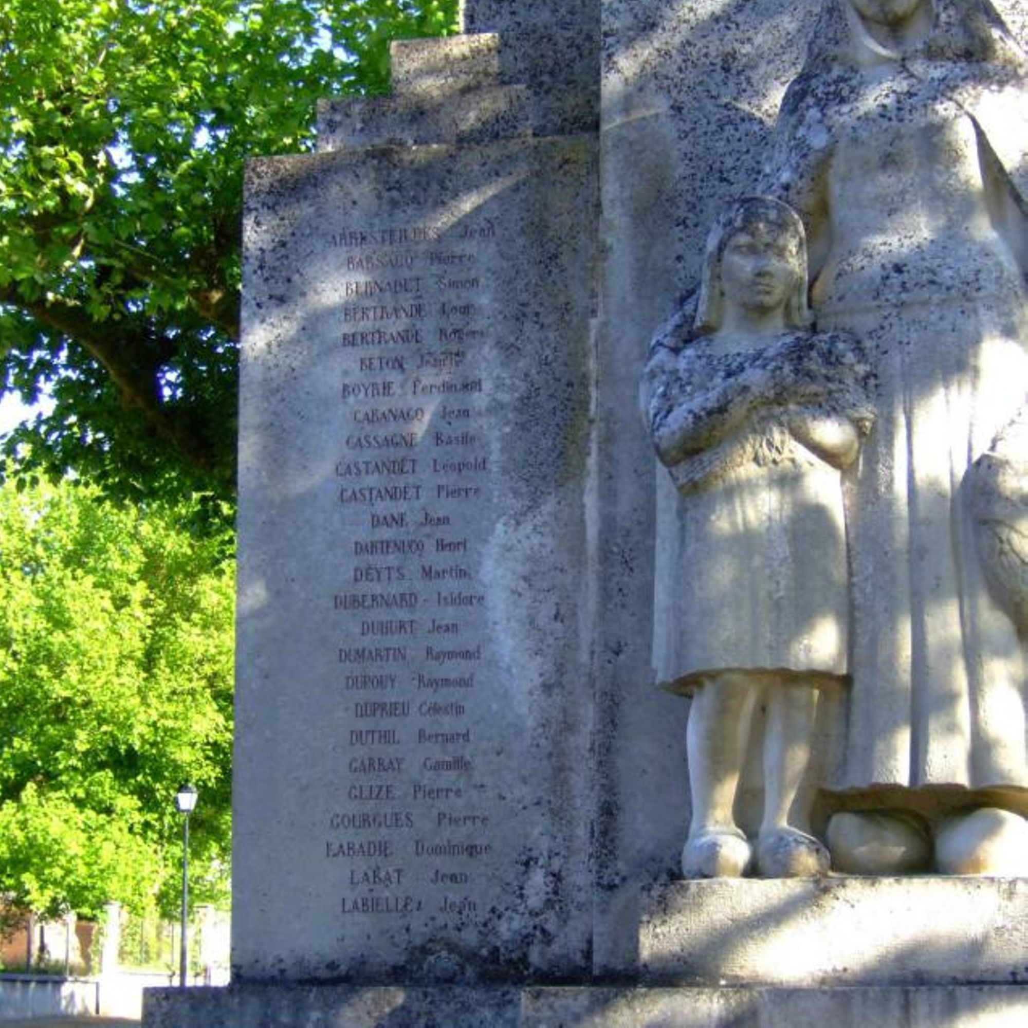 sur panneaux de chaque côté de la sculpture centrale les noms des morts pour la France