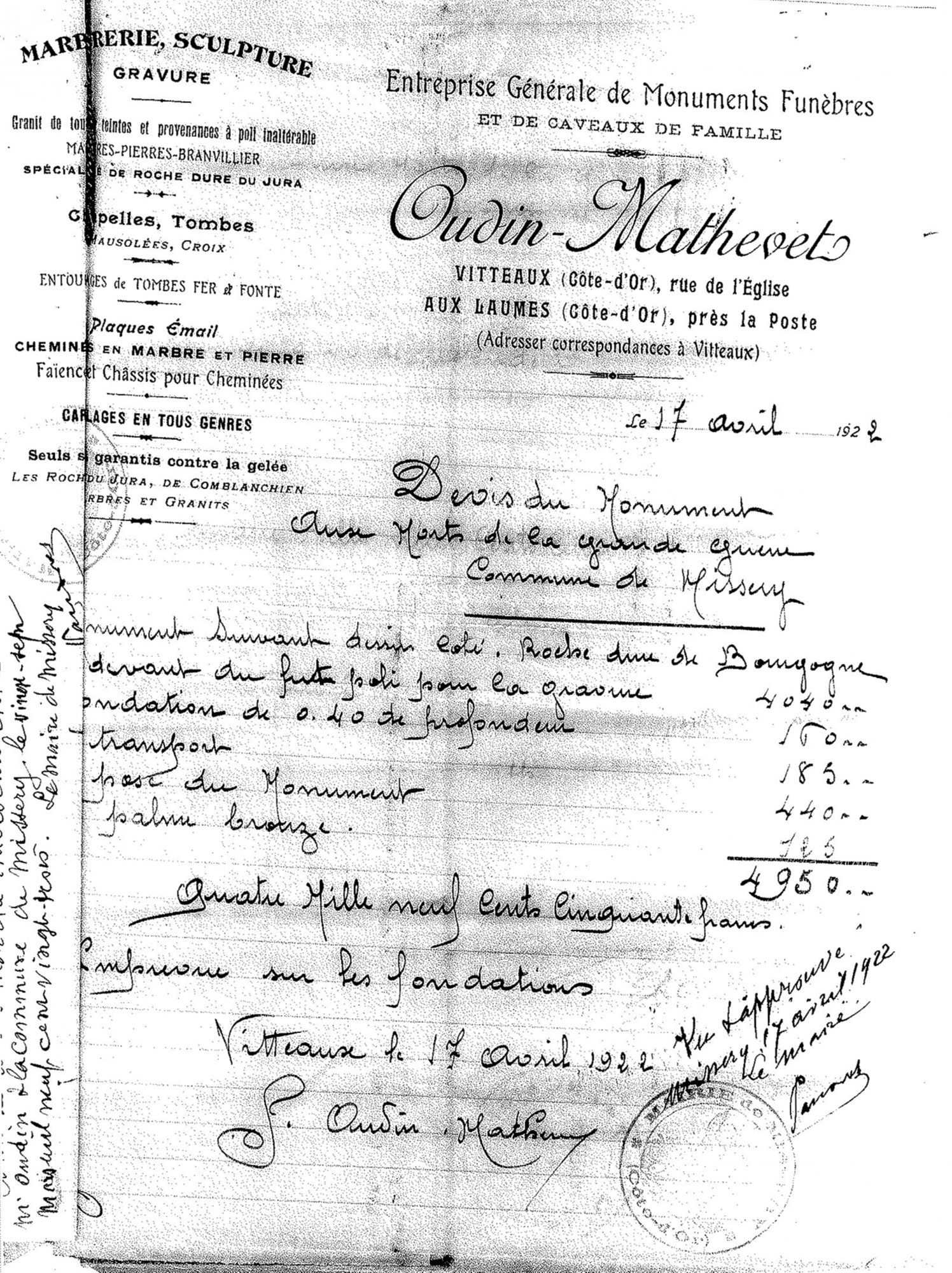 Louis OUDIN-MATHEVER, sculpteur demeurant à Vitteaux