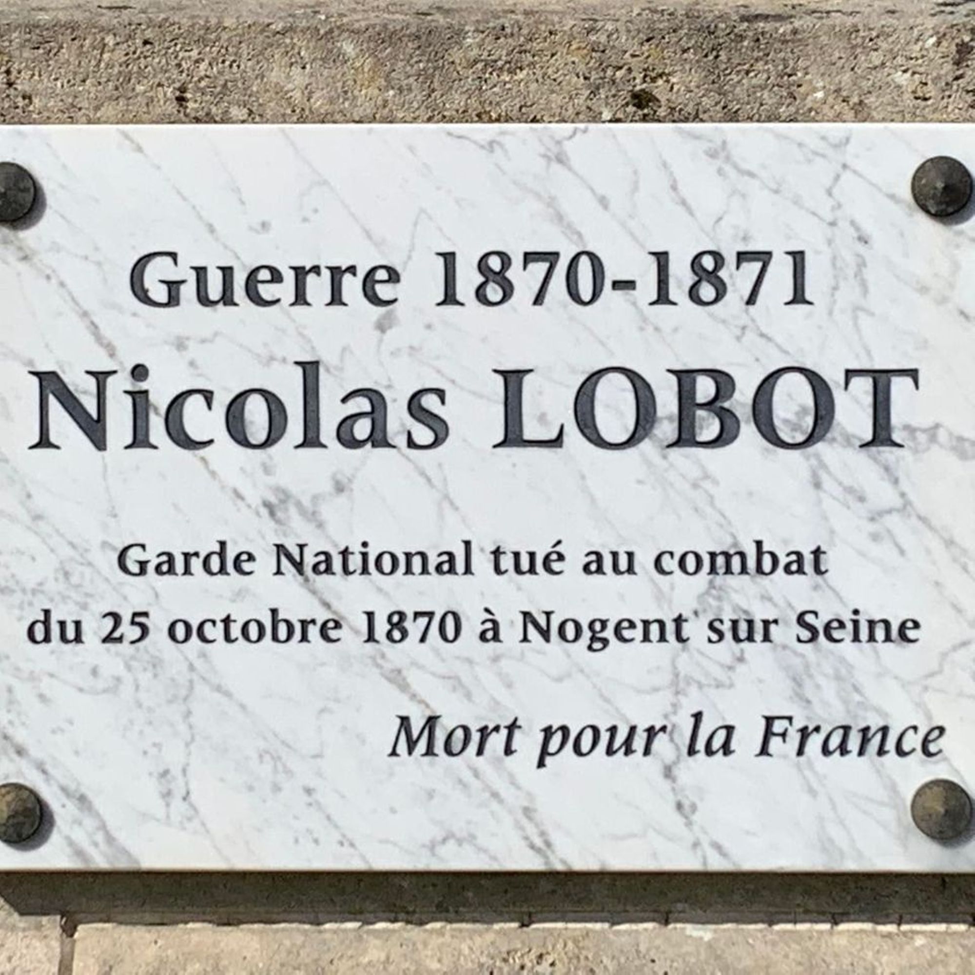 Nicolas LOBOT Garde National tué au combat du 25 octobre 1870 à Nogent-sur-Seine