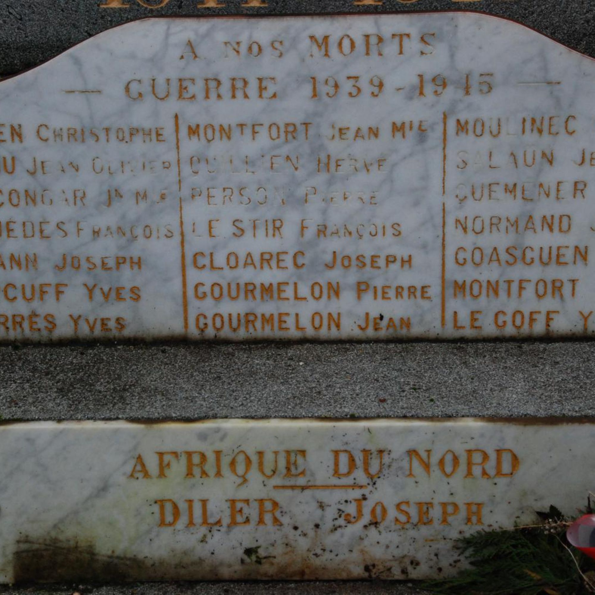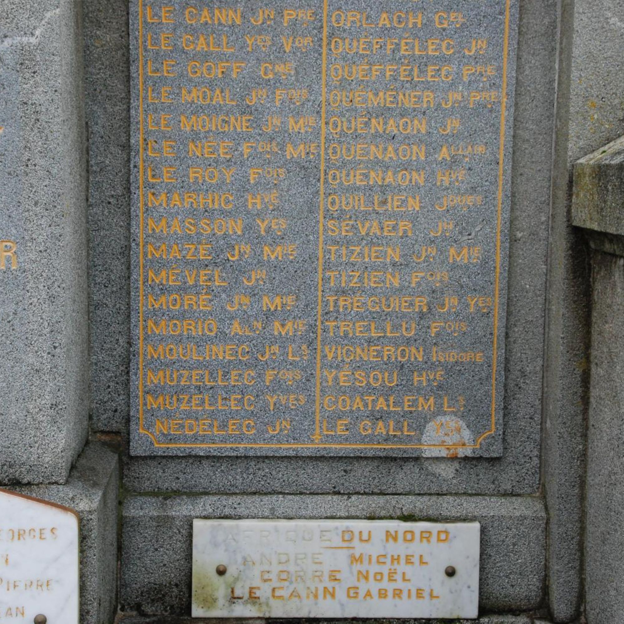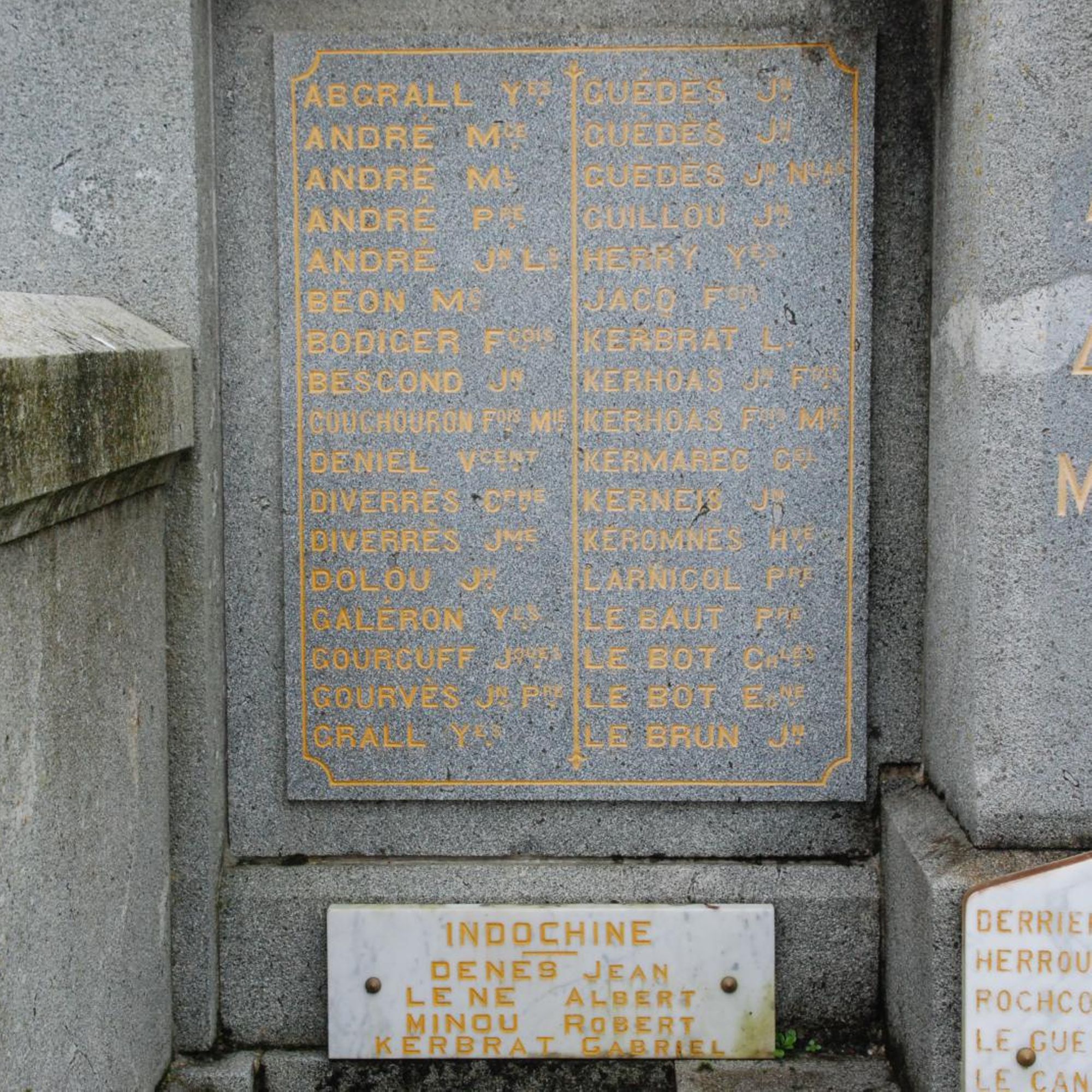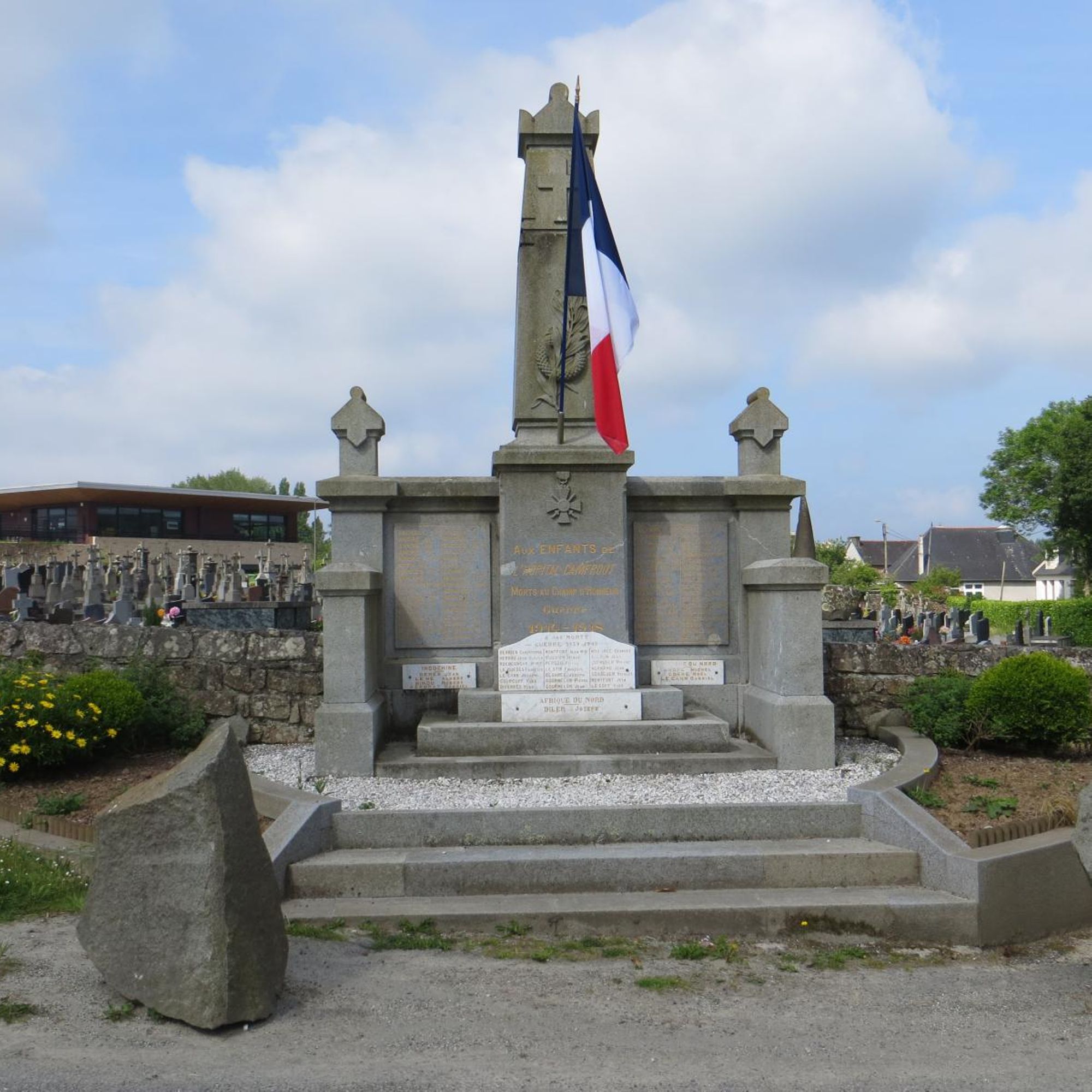 Monument aux morts réalisé en kersantite par M. Chebillot, entrepreneur à Laval