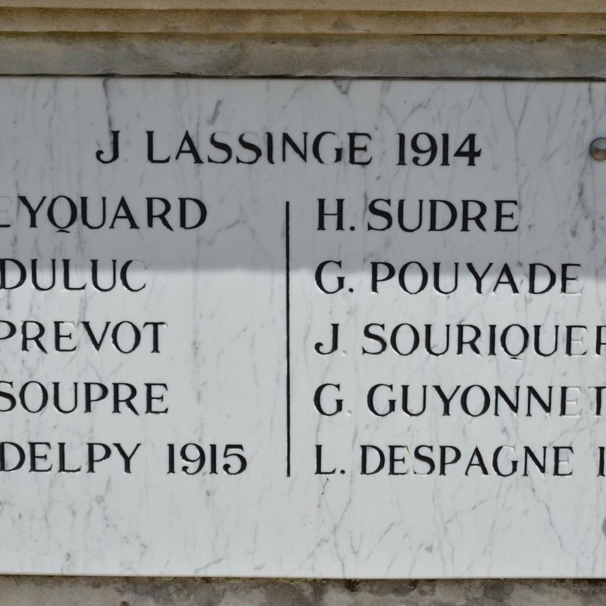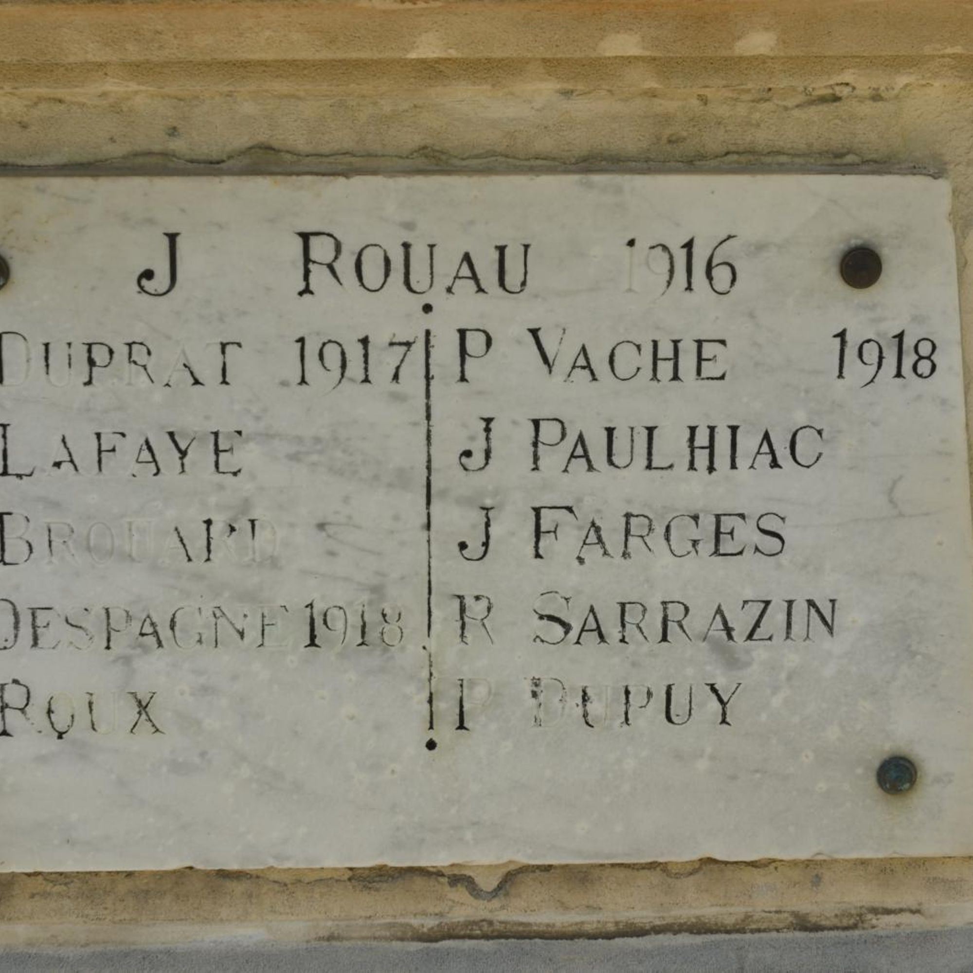 Deux plaques (une coté gauche, une coté droit) portent les noms des morts de 1914-18.