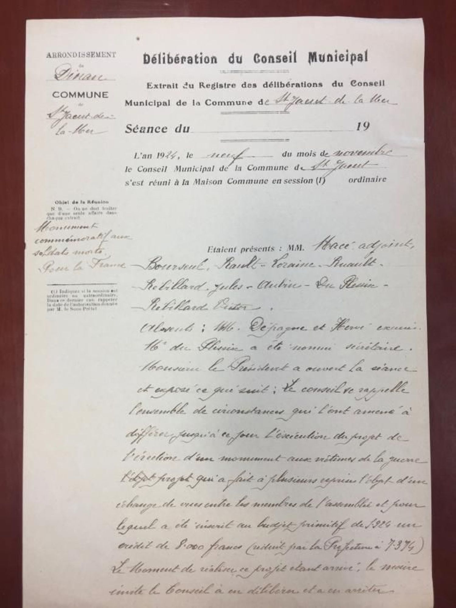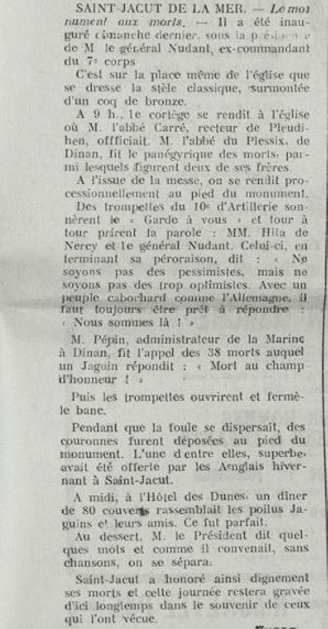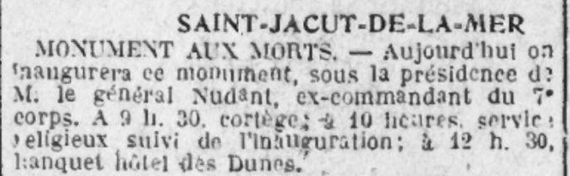L'inauguration à été présidée par le général Nudant et le maire Hita de Nercy. Elle fut suivie par un vin d'honneur à l'Hôtel des Bains, propriètaire J.B.Ruault et par un banquet à l'Hôtel des Dunes, propriètaire J. Rebillard.