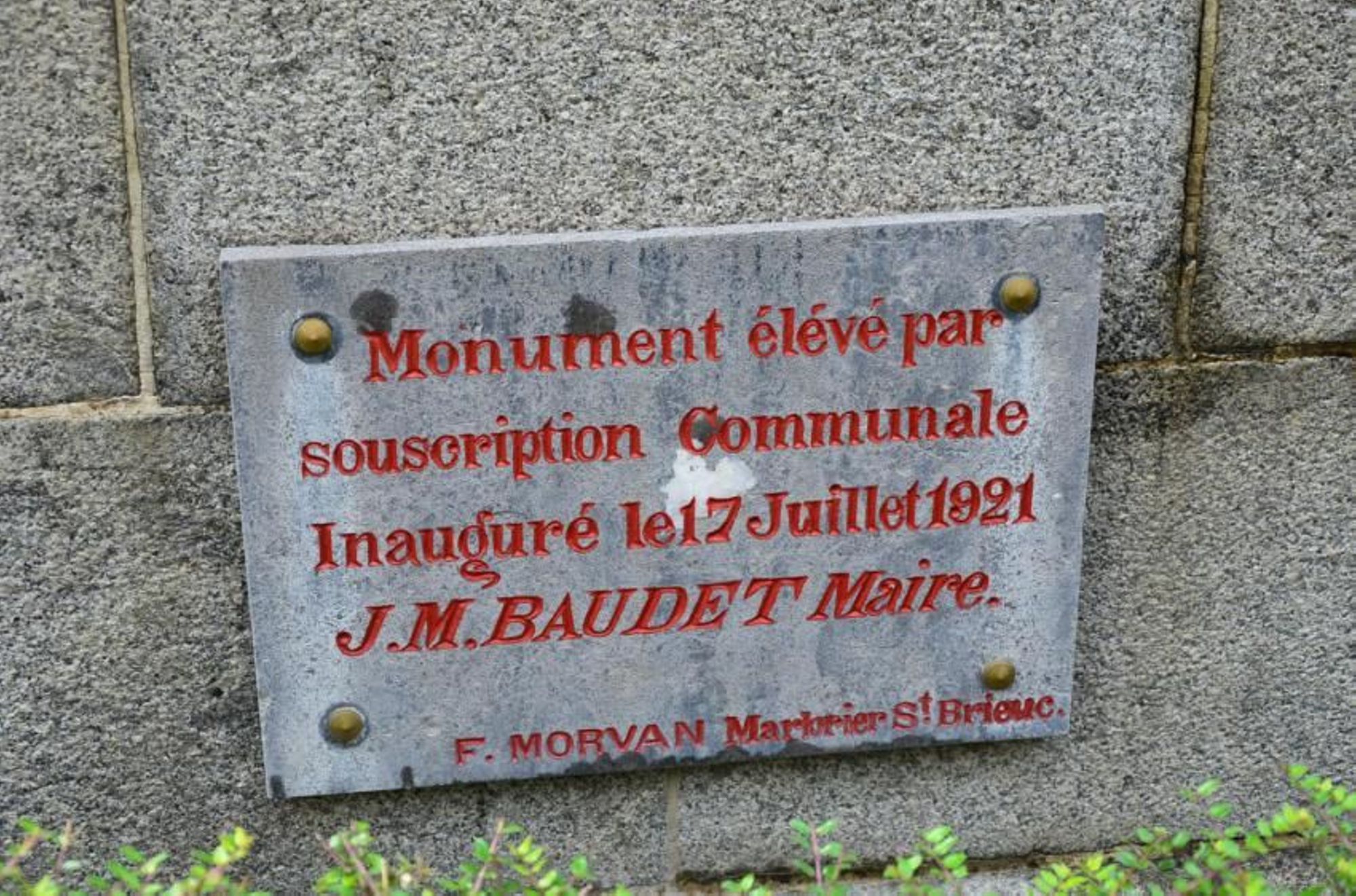 Inachevé au moment de l'inauguration, l'entourage du monument a été exécuté par la Société des Tuileries et Briqueteries de Saint-Ilan en 1924.