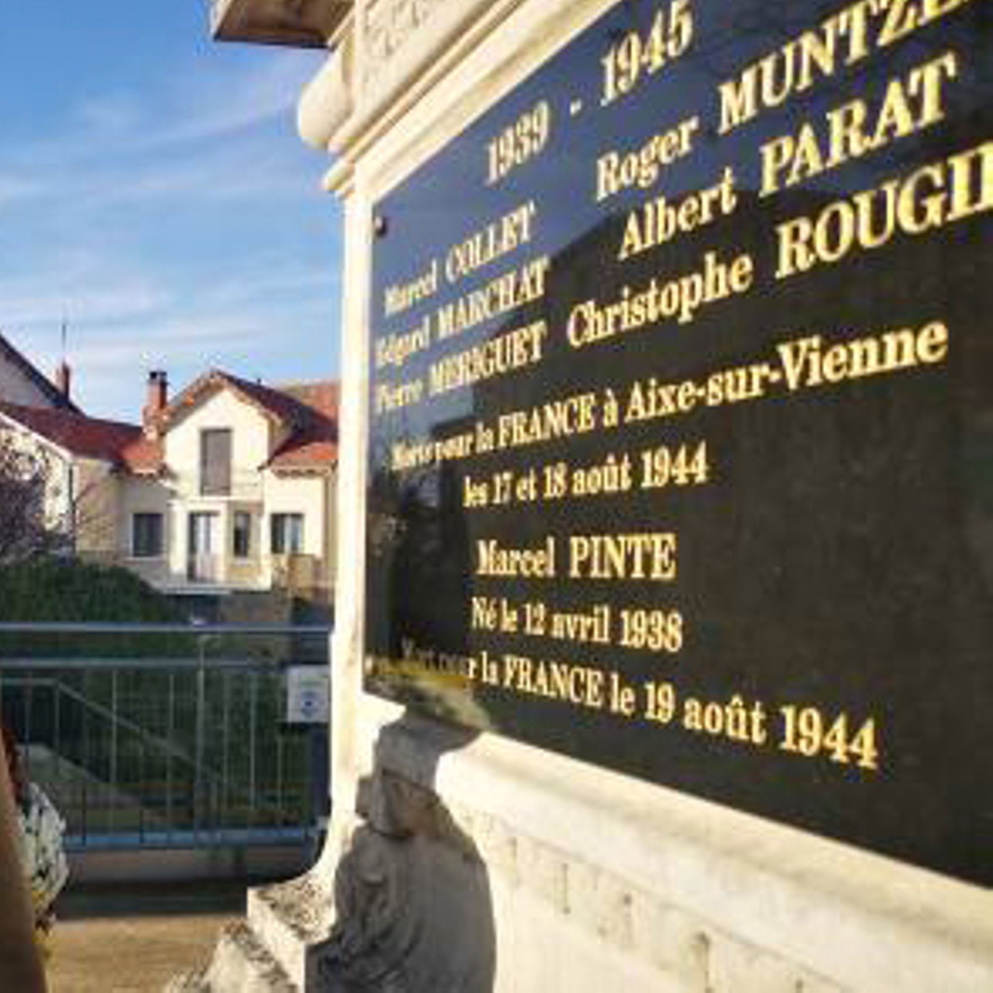Soixante-seize ans après sa mort, le jeune Marcel Pinte, alias Quinquin, a désormais son nom inscrit officiellement, et à jamais, sur le monument aux morts d'Aixe-sur-Vienne. Ce vendredi 6 novembre, des employés de la mairie ont fixé une plaque évoquant la courte vie du garçonnet avec cette mention : « Mort pour la France ».