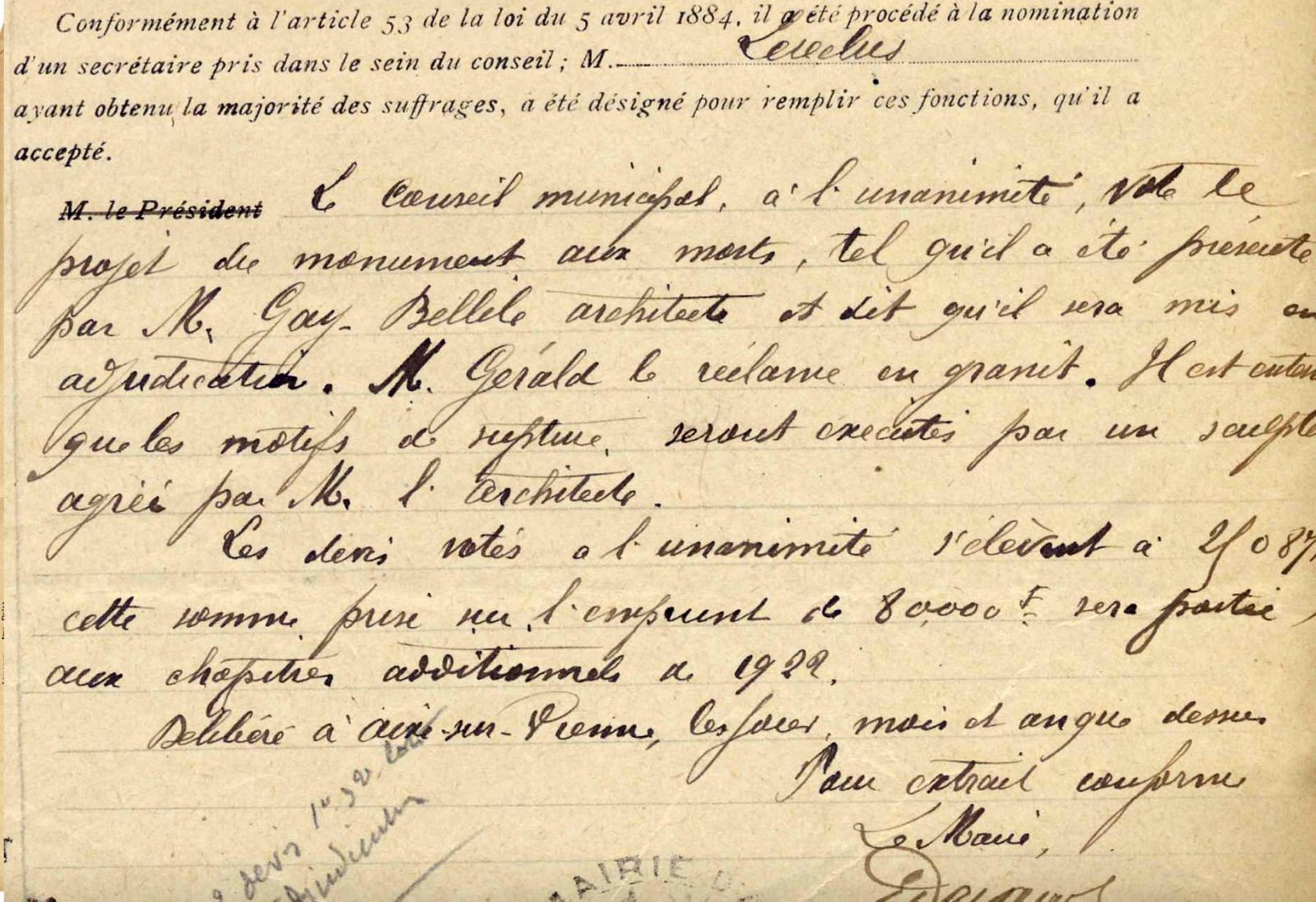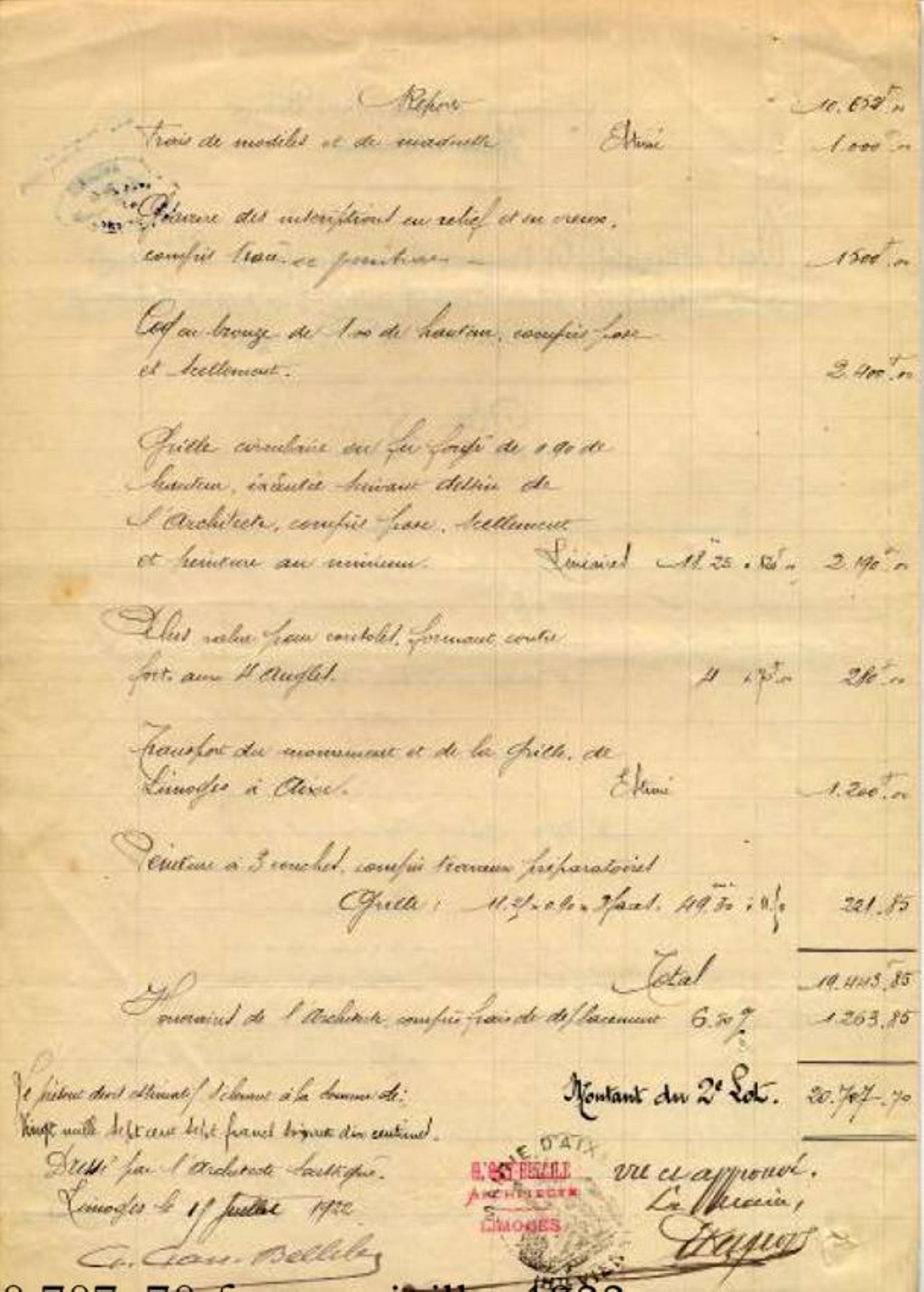 Devis estimatif des travaux à exécuter pour l'érection d'un monument commémoratif aux enfants de la commune morts pour la France
