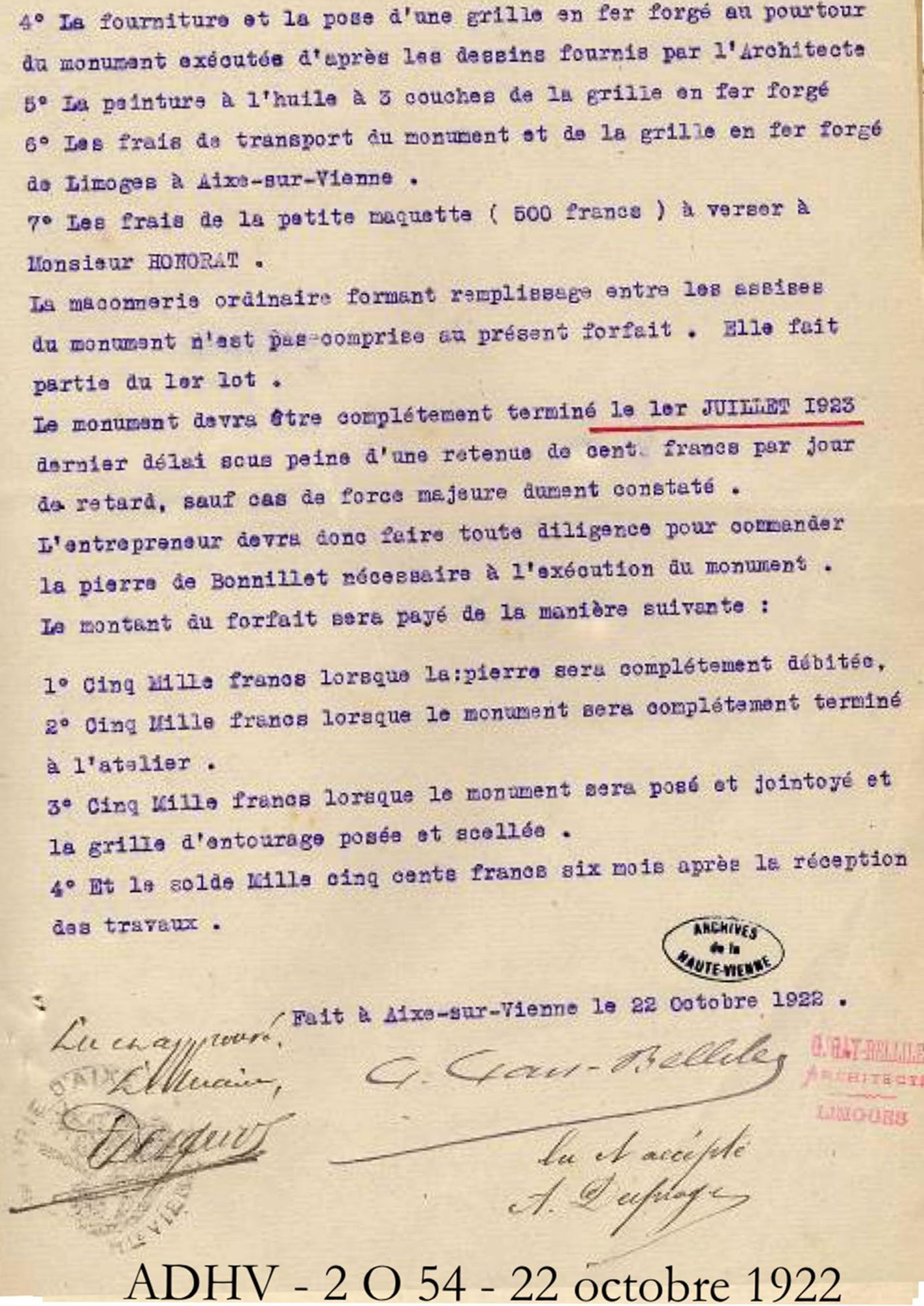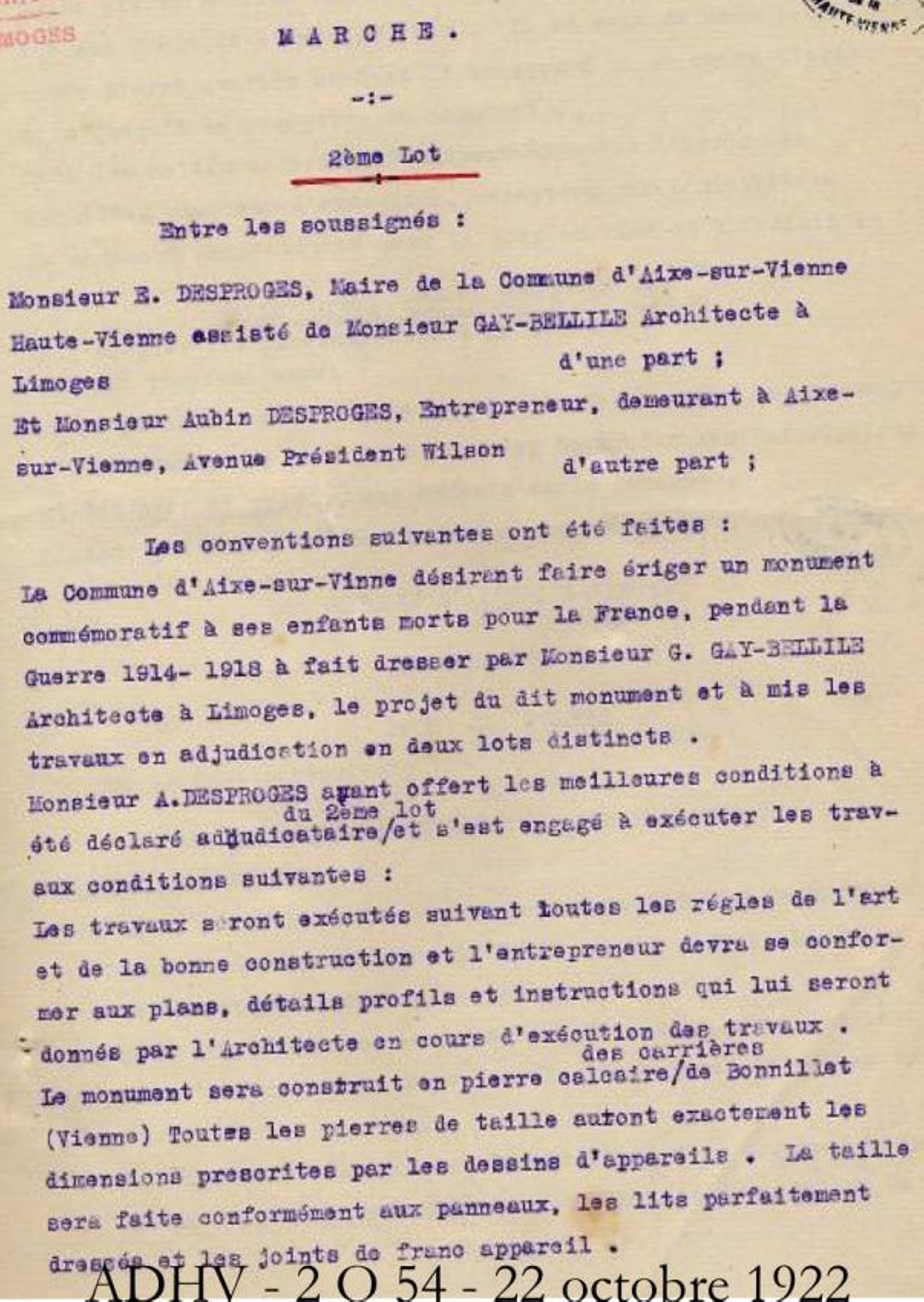 Entre Monsieur E. Desproges, maire de la commune et Monsieur Aubin Desproges, entrepreneur, demeurant à AIxe-sur-Vienne, avenue du Président Wilson