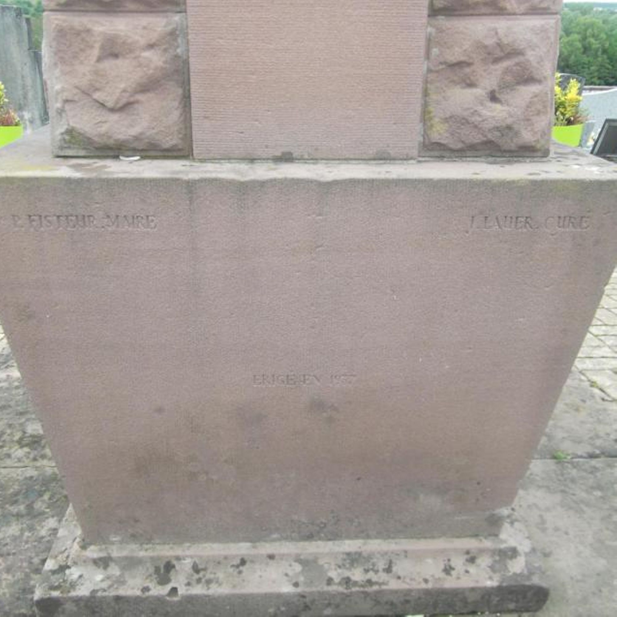 - Au dos du socle de ce monument figurent le nom du Maire de l'époque PAUL FISTEUR, de M. le Curé Joseph LAUER et la date d'édification du monument en 1937.