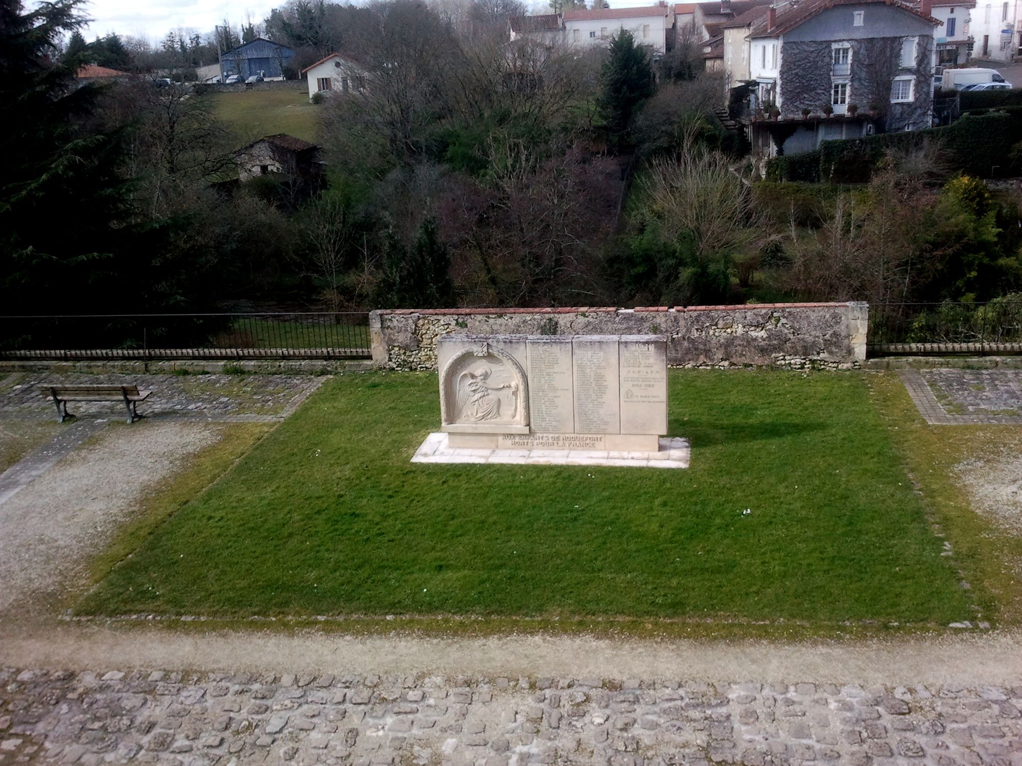 On conseva le bas-relief représentant un ange couronnant une tombe surmontée d'un casque afin de l'intégrer dans la nouvelle stèle alors mise en place.