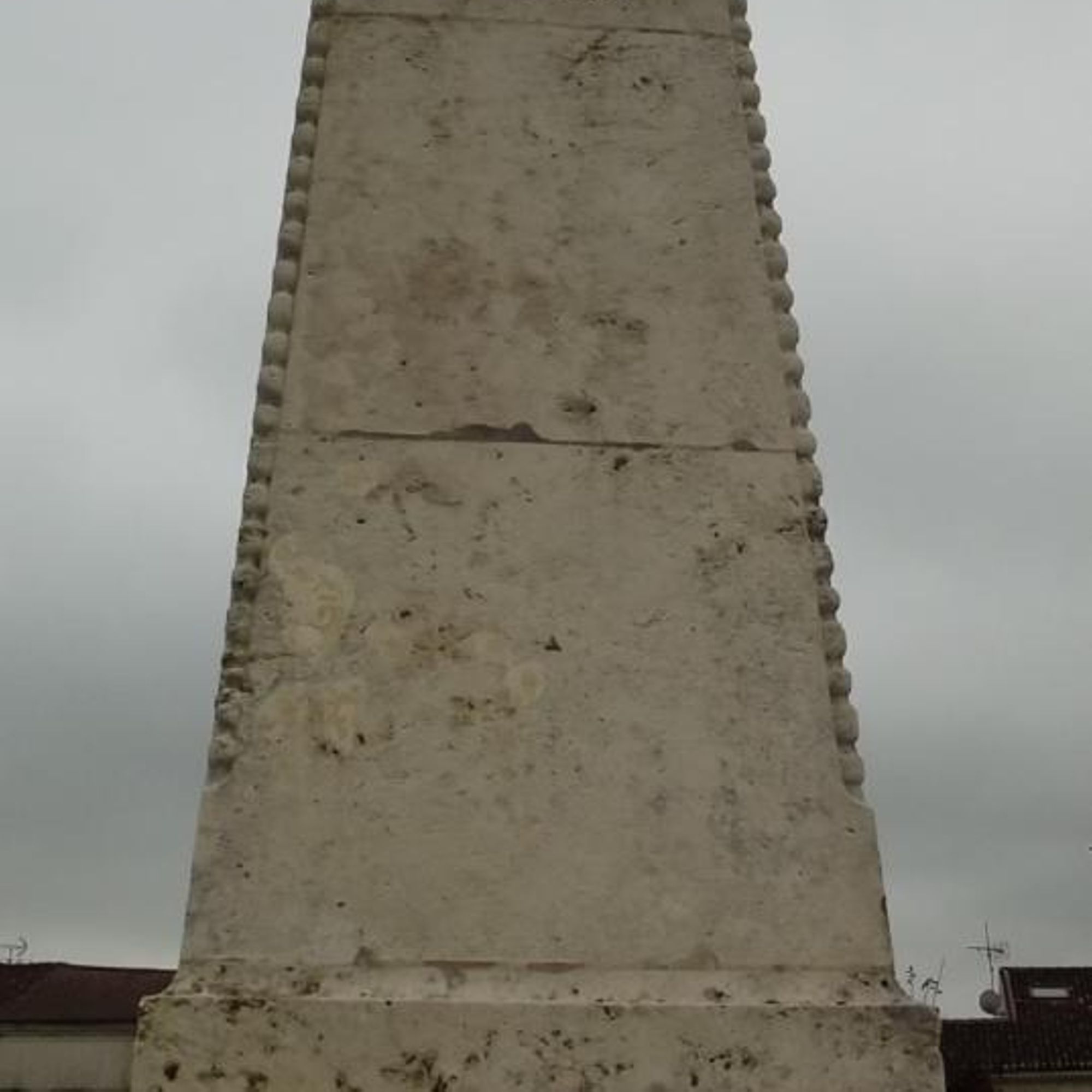 - Base carrée, colonne pyramidale surmontée d'un coq