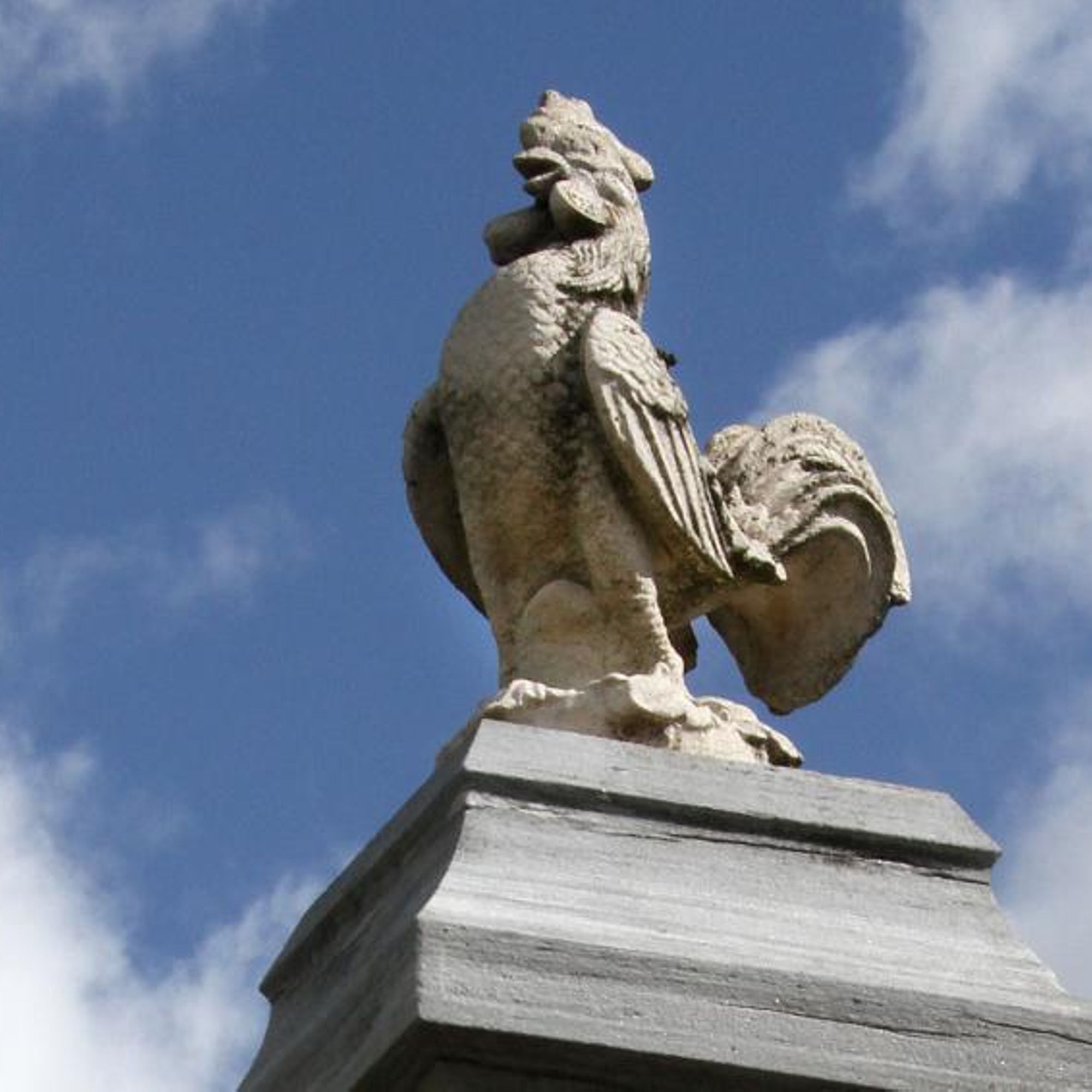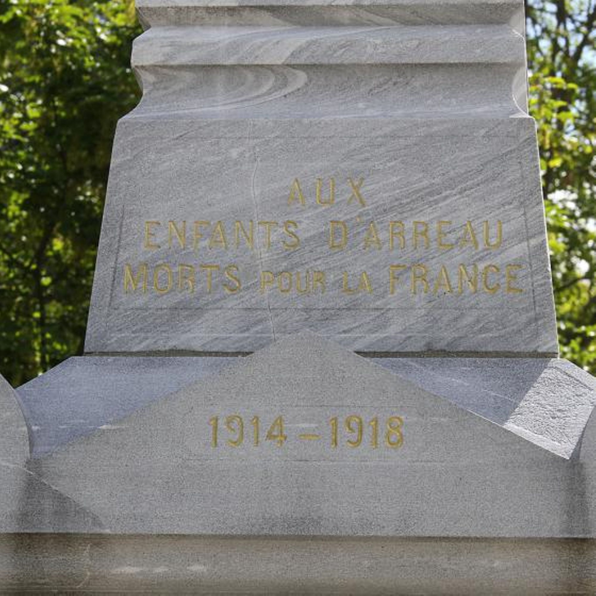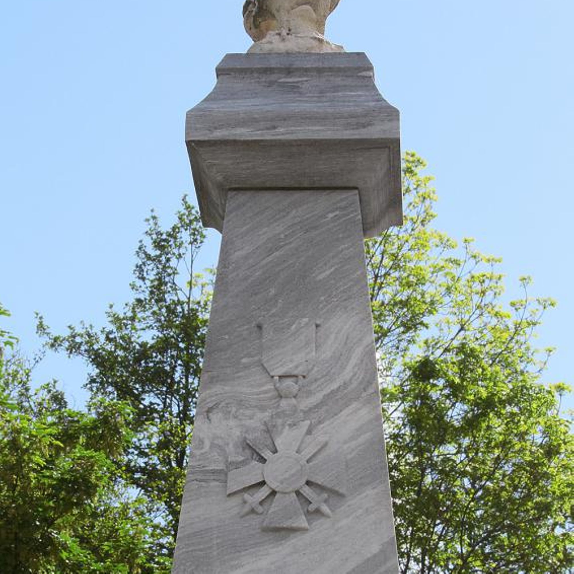 Au sommet de la colonne avec la croix de guerre et le coq français. Sur un côté de la colonne une croix est aussi gravée.