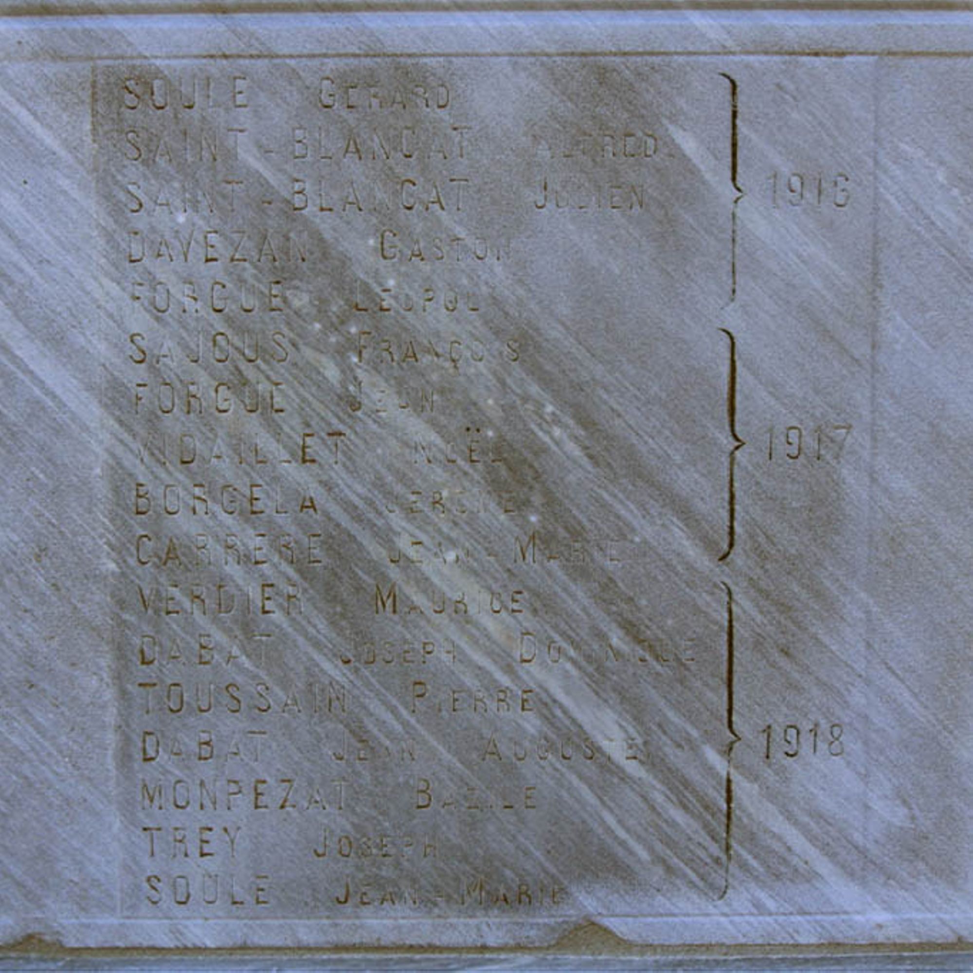 Le Monument aux Morts est situé à l'extrémité d'une place-parking près de la rivière Neste et à l'arrière de l'église.