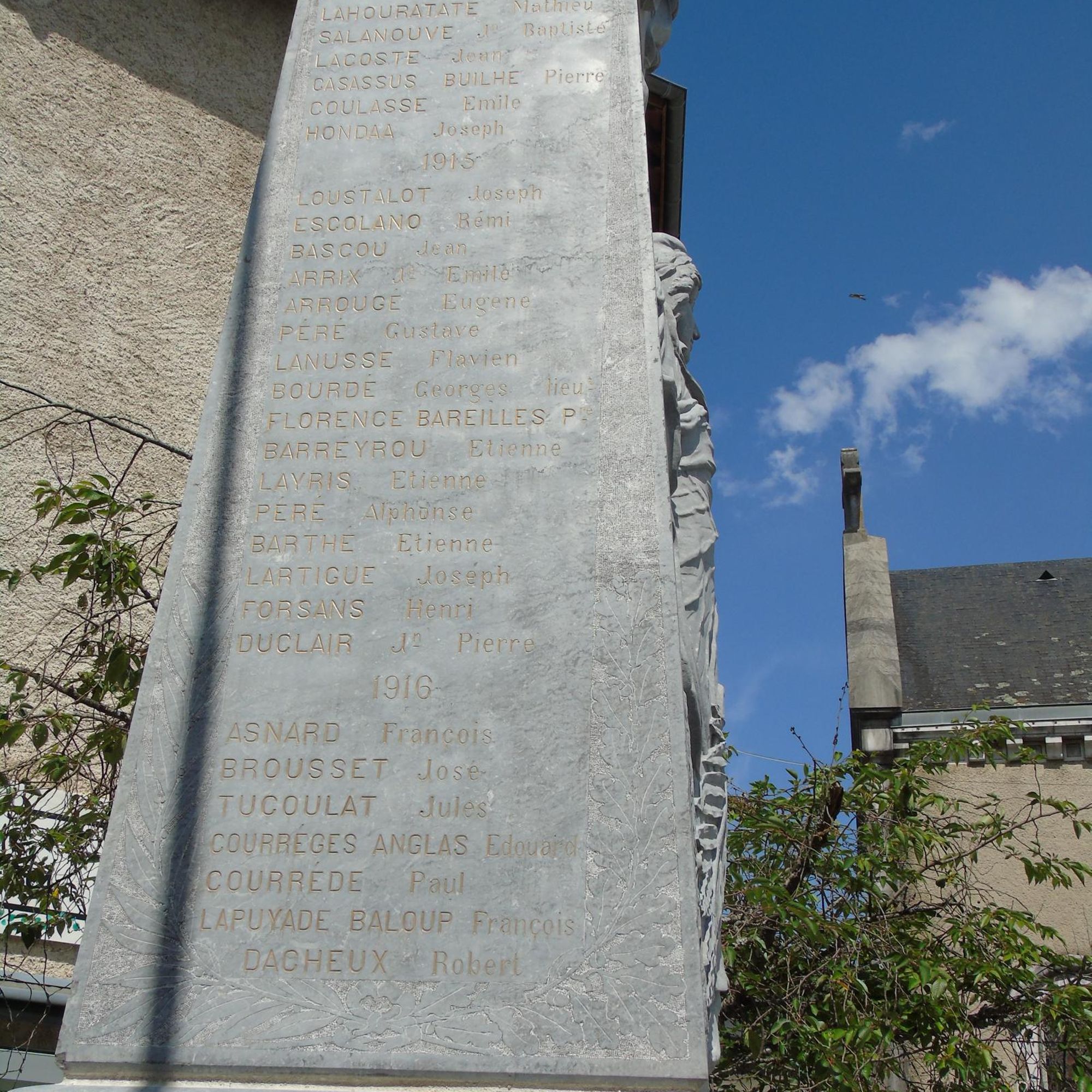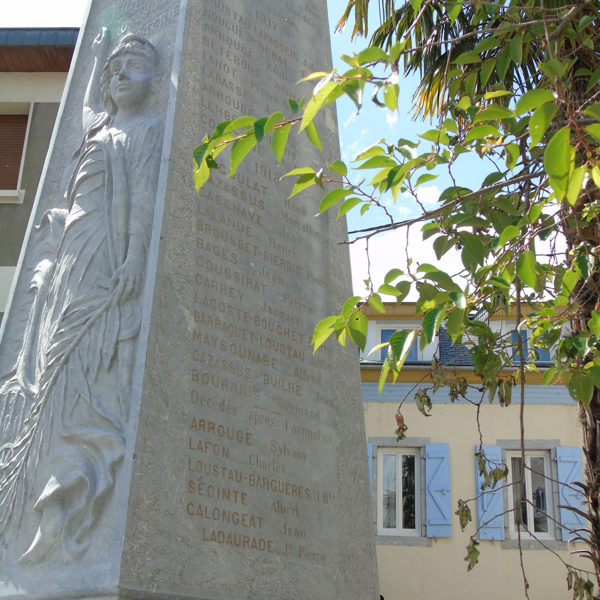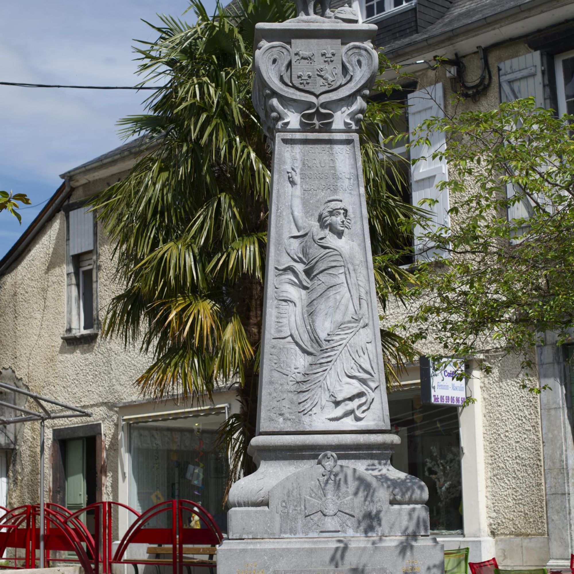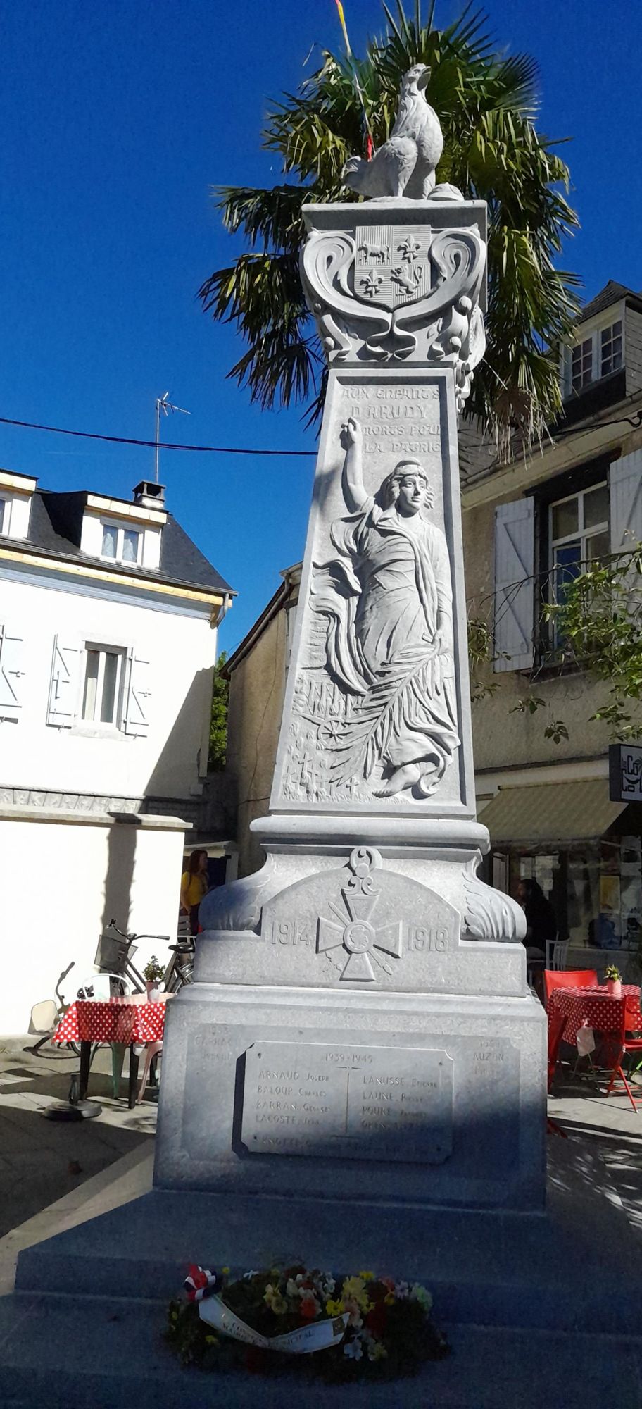 - en pierre d’Arudy, issue des carrières d’Arudy, pierre travaillée par des arudyens pour des arudyens tombés aux combats.