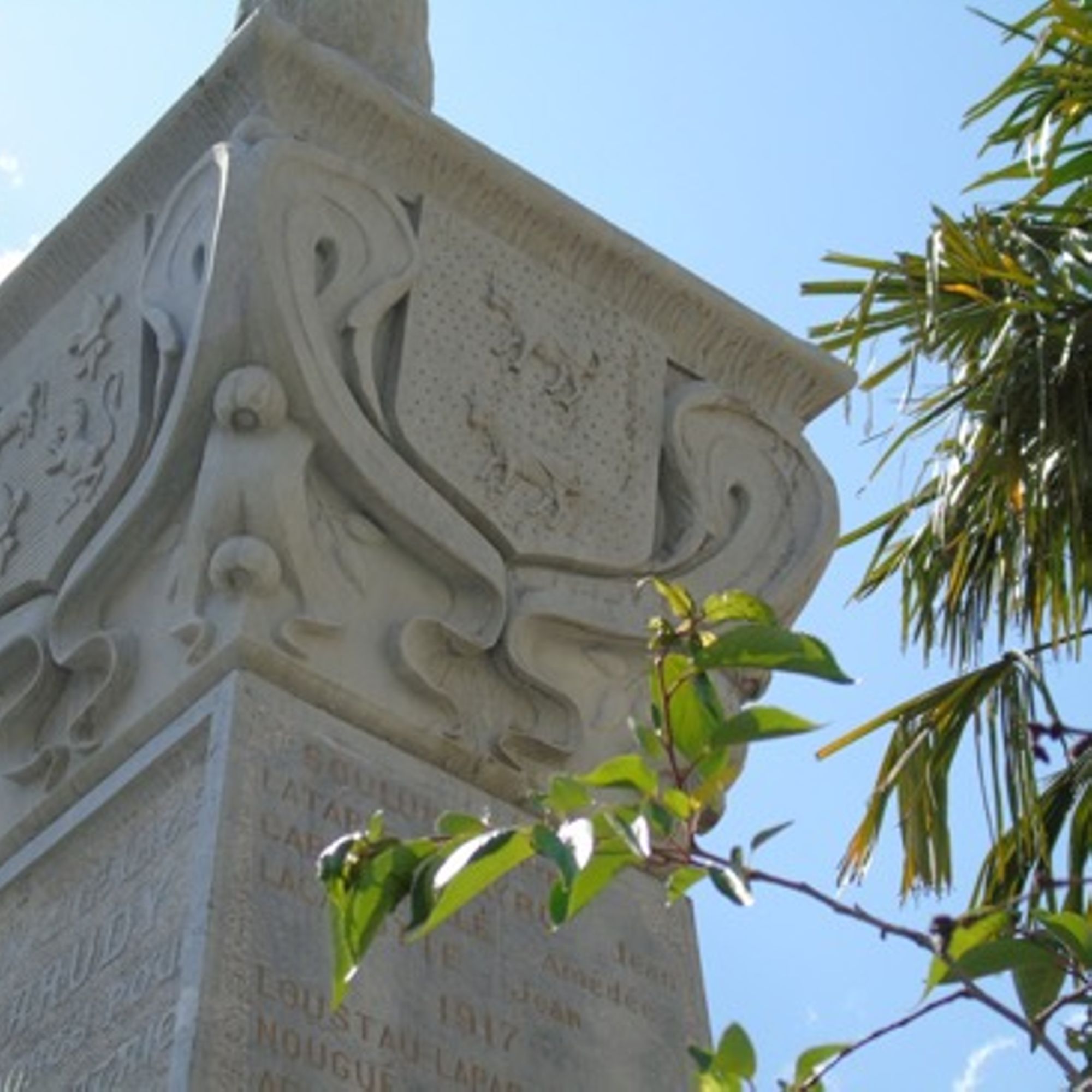 Sur l’obélisque les sépultures (croix), armes de destruction (canon), tranchées et abris : représentent l’Evocation du champ de bataille : (1 seul autre monument en 64 possède cette symbolique)