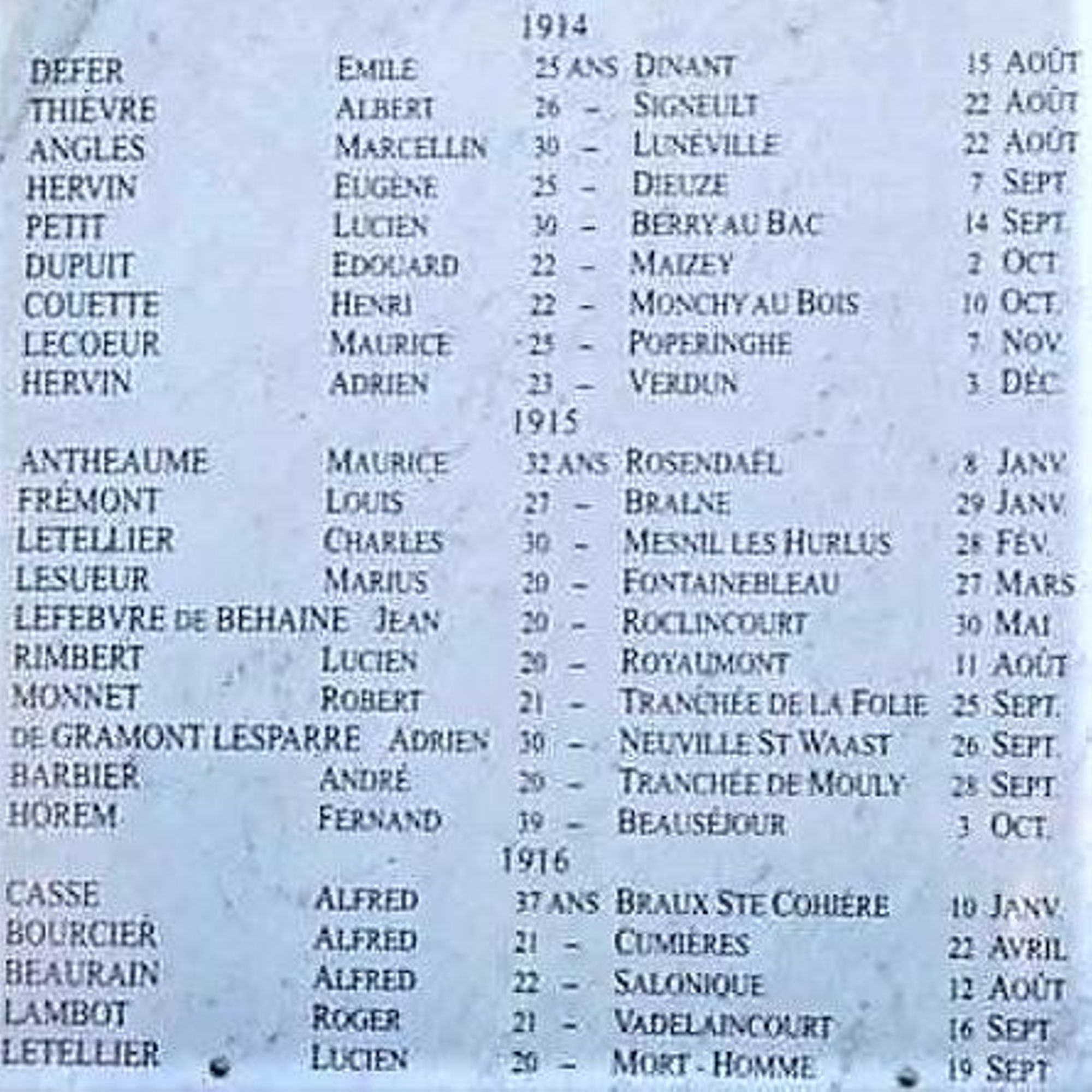 DEFER Émile - 25 ans - Diant 15 août