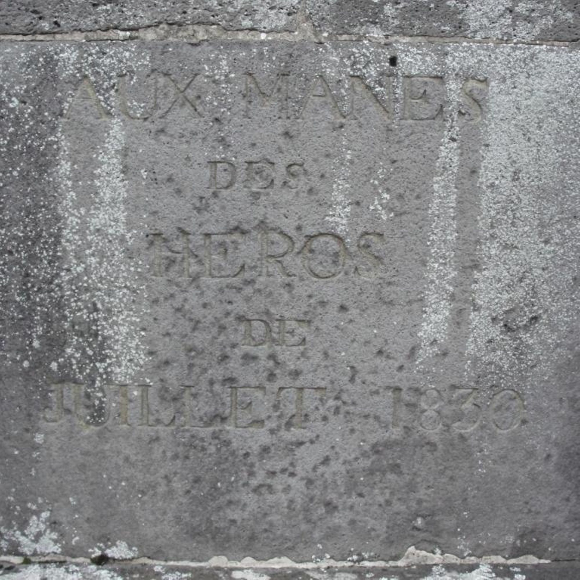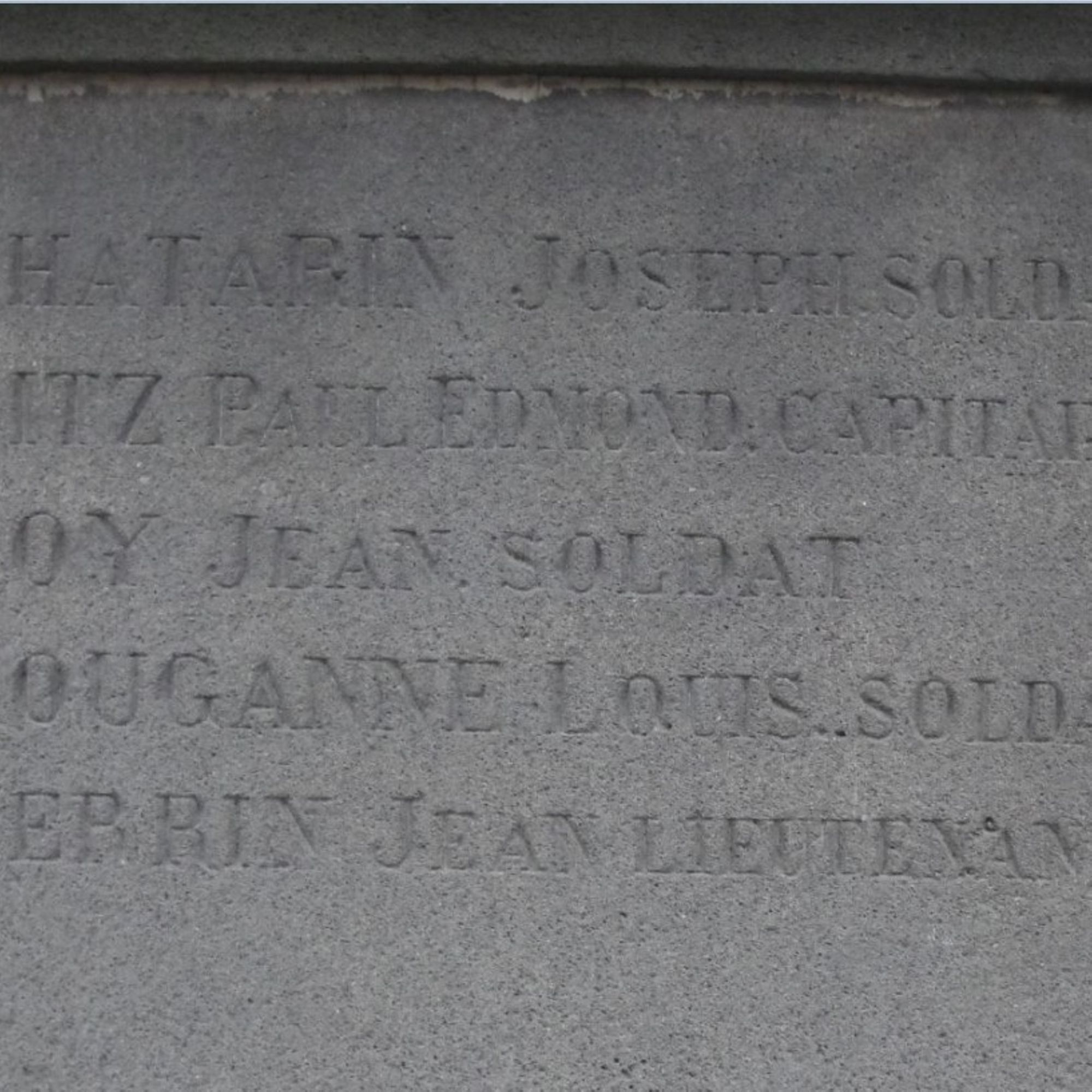 - Décoré d'un rameau d'olivier symbolisant la paix retrouvée, portant l'inscription "R-F" et surmonté d'une urne.