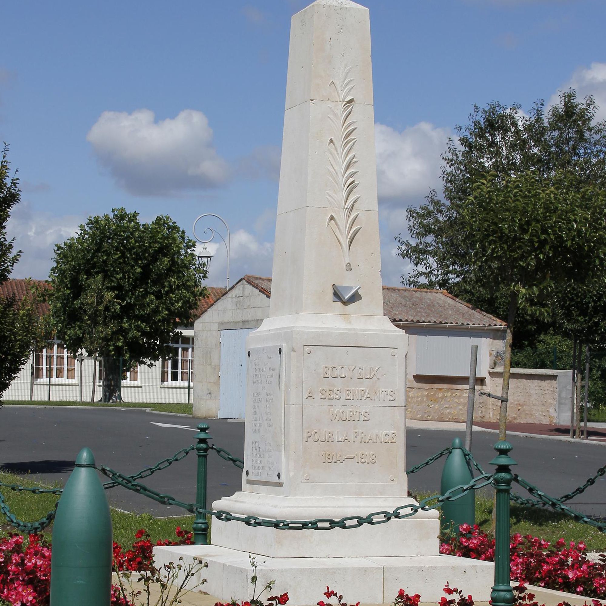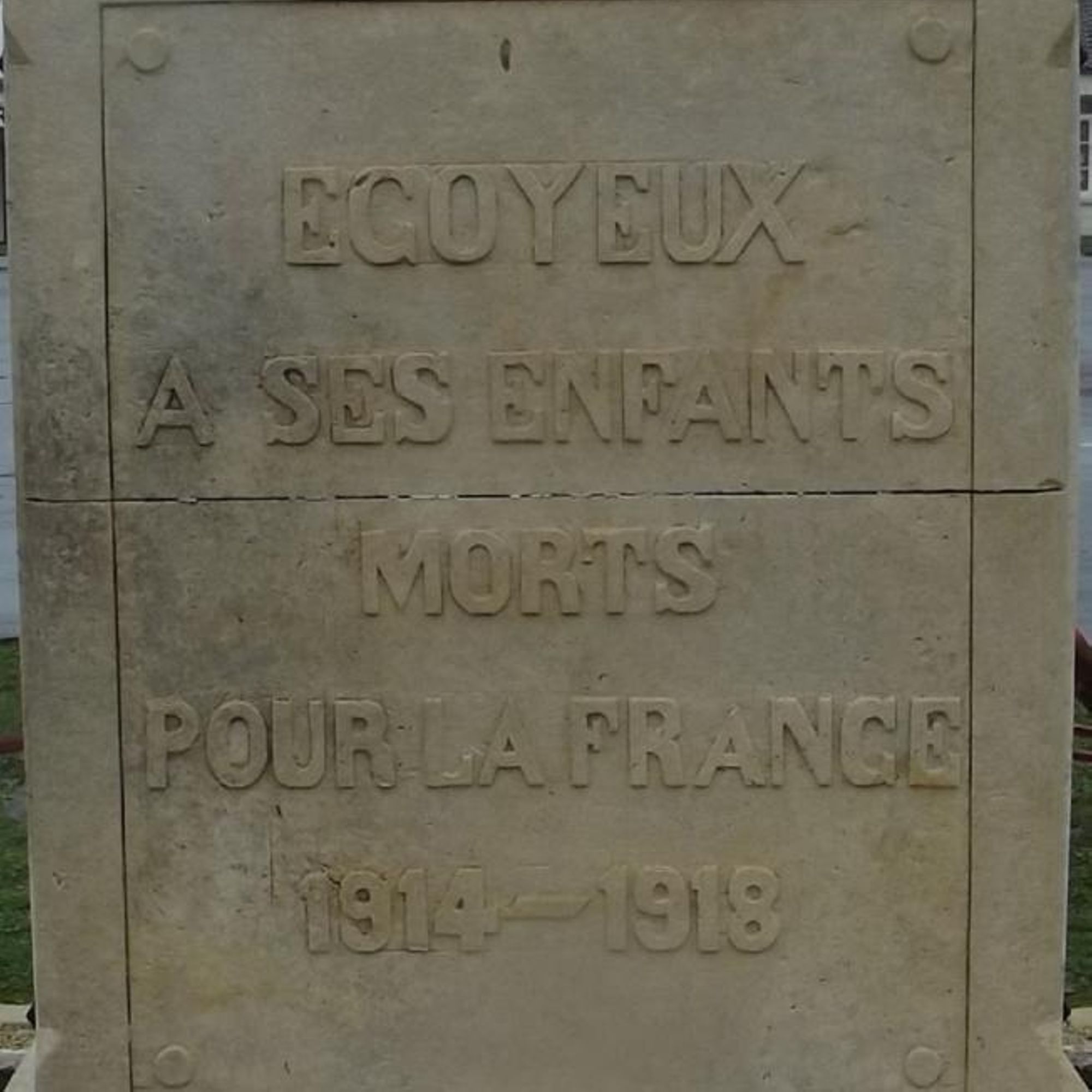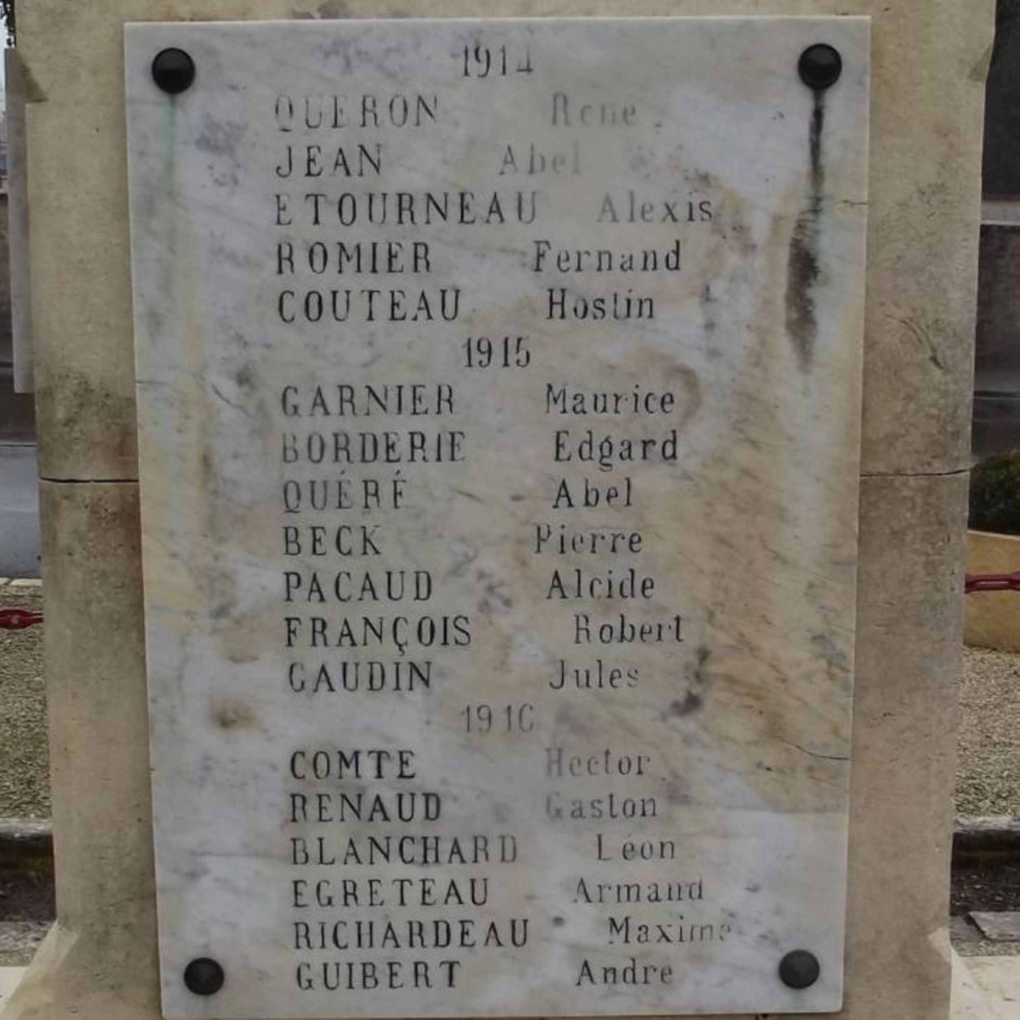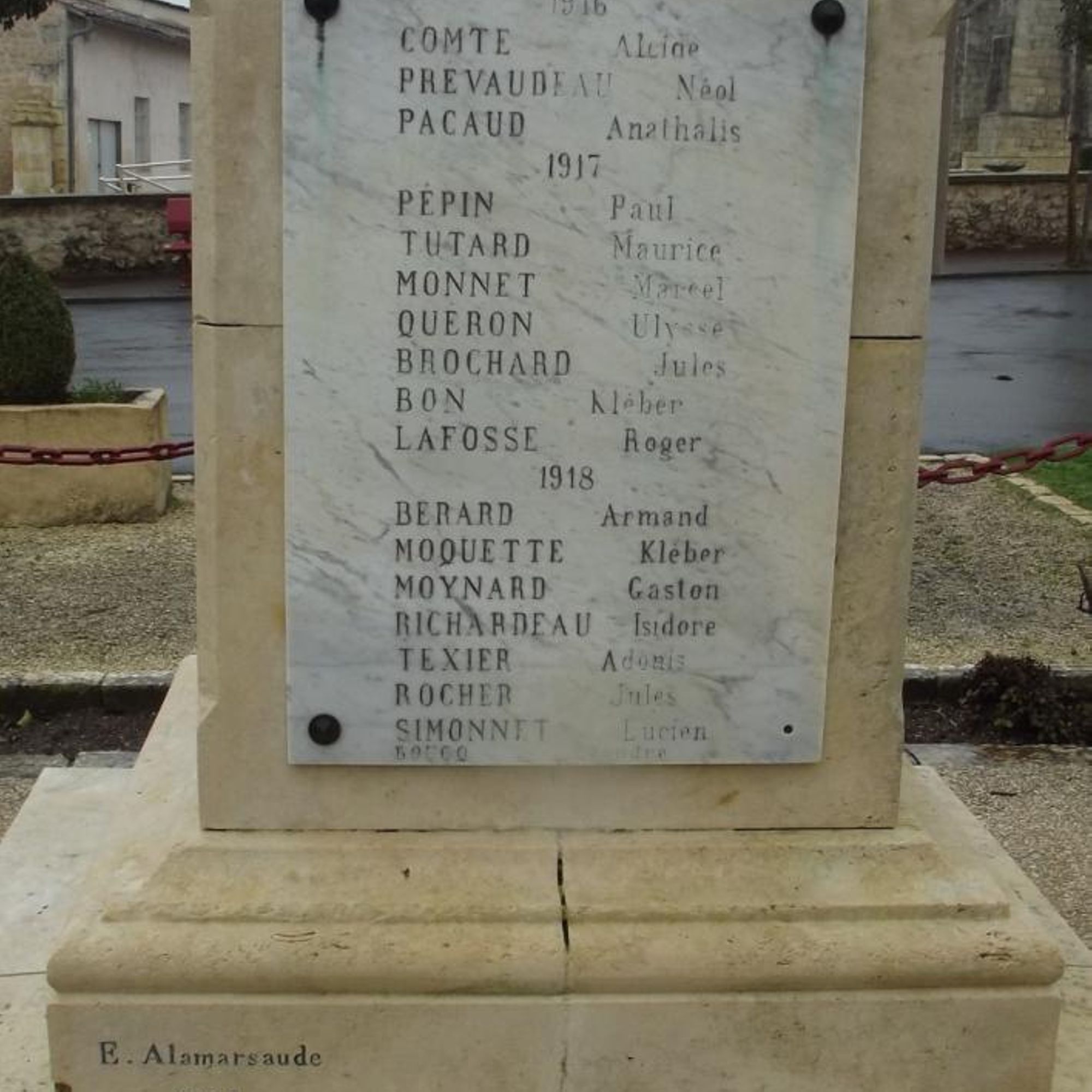 - Plaques de marbre sur deux côtés portant les noms des morts 1914-1918