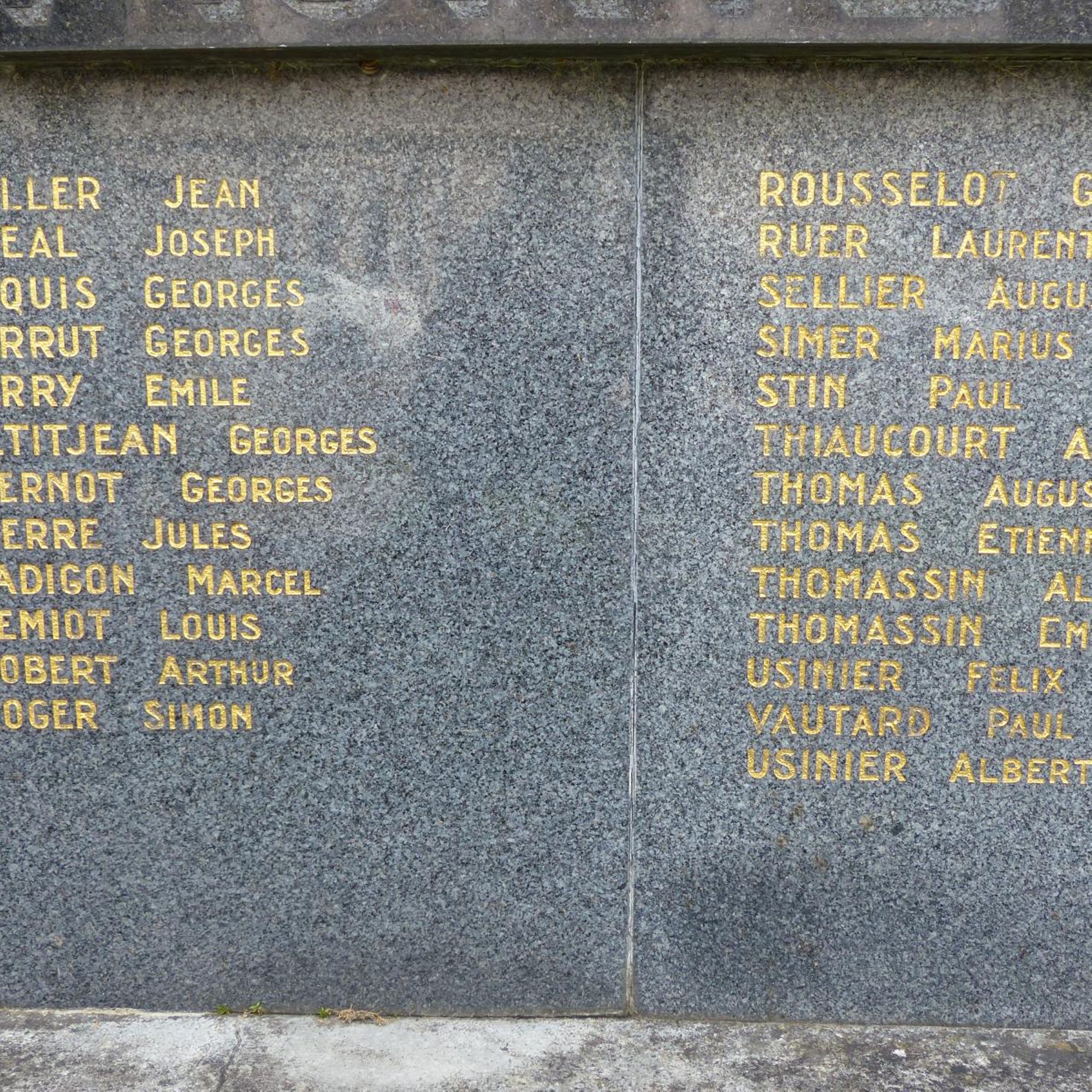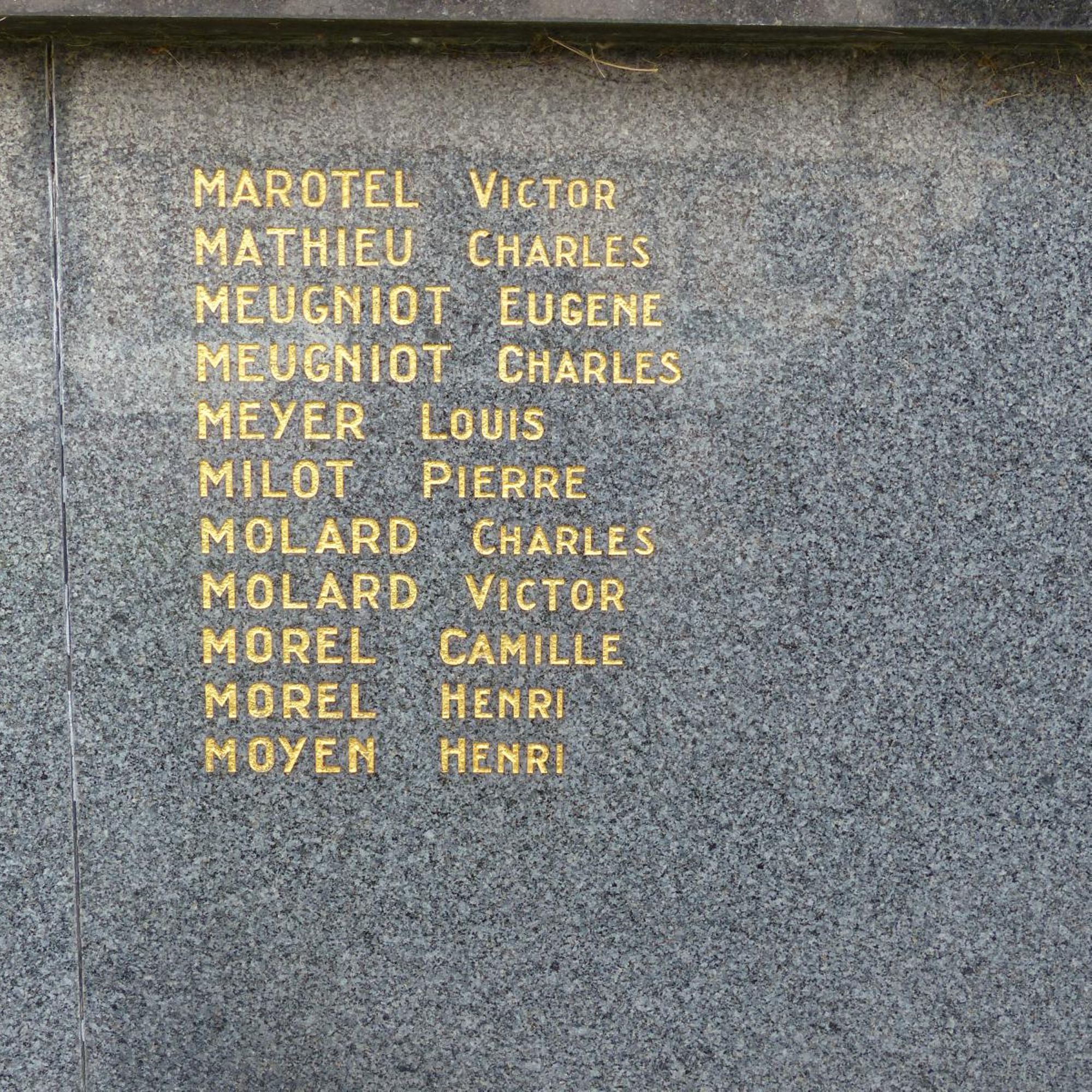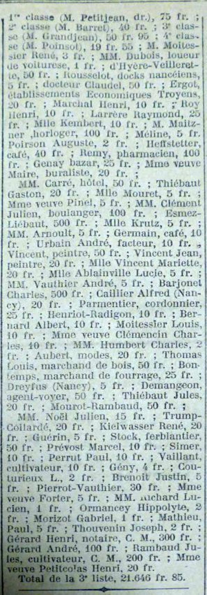 Adam Raoul. André Louis. André Pierre. Angelot Charles. Audinot Georges. Bastien Camille. Bastien Paul. Bazelaire Charles. Bazelaire Edmond. Bazelaire Marcel. Bergeret Henri. Berlinot Georges. Bevinger Charles. Blampied Charles. Blampied Louis. Boulangie Gaston. Bourgaut Elisée. Burtin Jean. Burtin Maurice. Chamont Chartes. Clasquin Charles • Clemencin Marcel. Collot Henri. Couturieux Albert. Couturieux Jean. Couturieux Pierre. Dabel Charles. Dany Joseph. Dautrey Charles. Demay Henri. Depoids Lucien. Dessinger Paul. D’Hyèvre Charles. Dorget Georges. Doridat Marcel. Dralet Eugène. Drouin Jean. Esmez Frédéric. Faivre Charles. Forter Georges. Gajardo Louis. Gasquard Henri. Geny Georges. Gérard Arthur. Girola André. Guyot Léon. Hatier Paul. Hocqueloux Félix. Huot Charles. Huot Pierre. Lagarde Léon. Lamontagne René. Lattraye Maurice. Loisant Joseph. Lorrain Auguste. Louis Léon. Maire Albert. Marotel Victor. Mathieu Charles. Meugniot Charles. Meugniot Eugène. Meyer Louis. Milot Pierre. Molard Charles. Molard Victor. Morel Camille. Morel Henri. Moyen Henri. Muller Jean. Oréal Joseph. Paquis Georges. Perrut Georges. Perry Émile. Petitjean Georges. Piernot Georges. Pierre Jules. Radigon Marcel. Remiot Louis, Robert Arthur. Roger Simon. Rousselot Gabriel, Ruer Laurent. Sellier Auguste. Simer Marius. Stin Paul. Thiaucourt André. Thomas Augustin. Thomas Étienne. Thomassin Albert. Thomassin Emmanuel. Usinier Albert. Usinier Félix. Vautard Paul. Vautard Pierre. Vincent Paul. Vineux Maurice, Visery Eugène. Voirin Paul. Yègre Eugène.