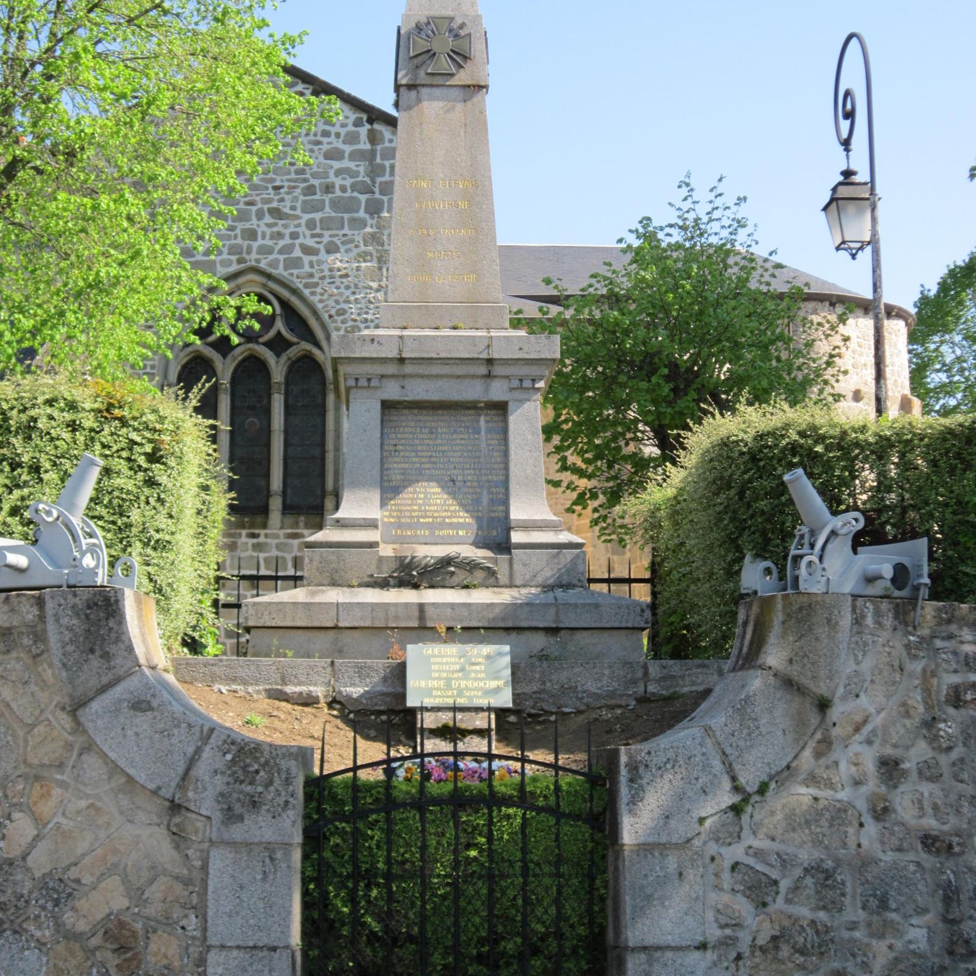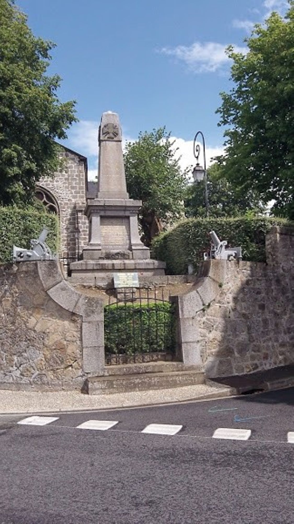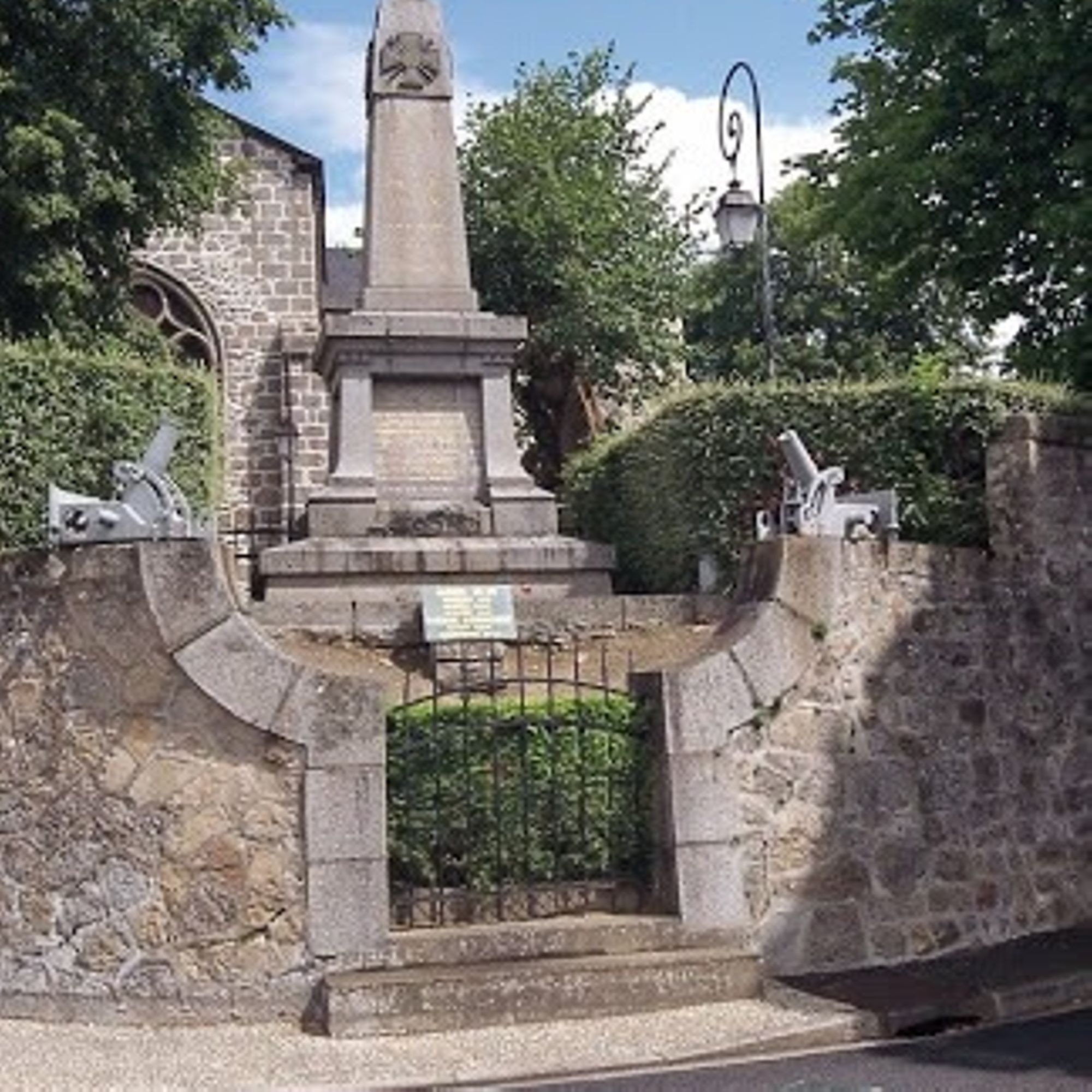 Sur la place et la rue qui descendent un mur échancré par un portail métallique sur les bords duquel posent en face à face 2 petits canons en métal désignés par leur nom ?