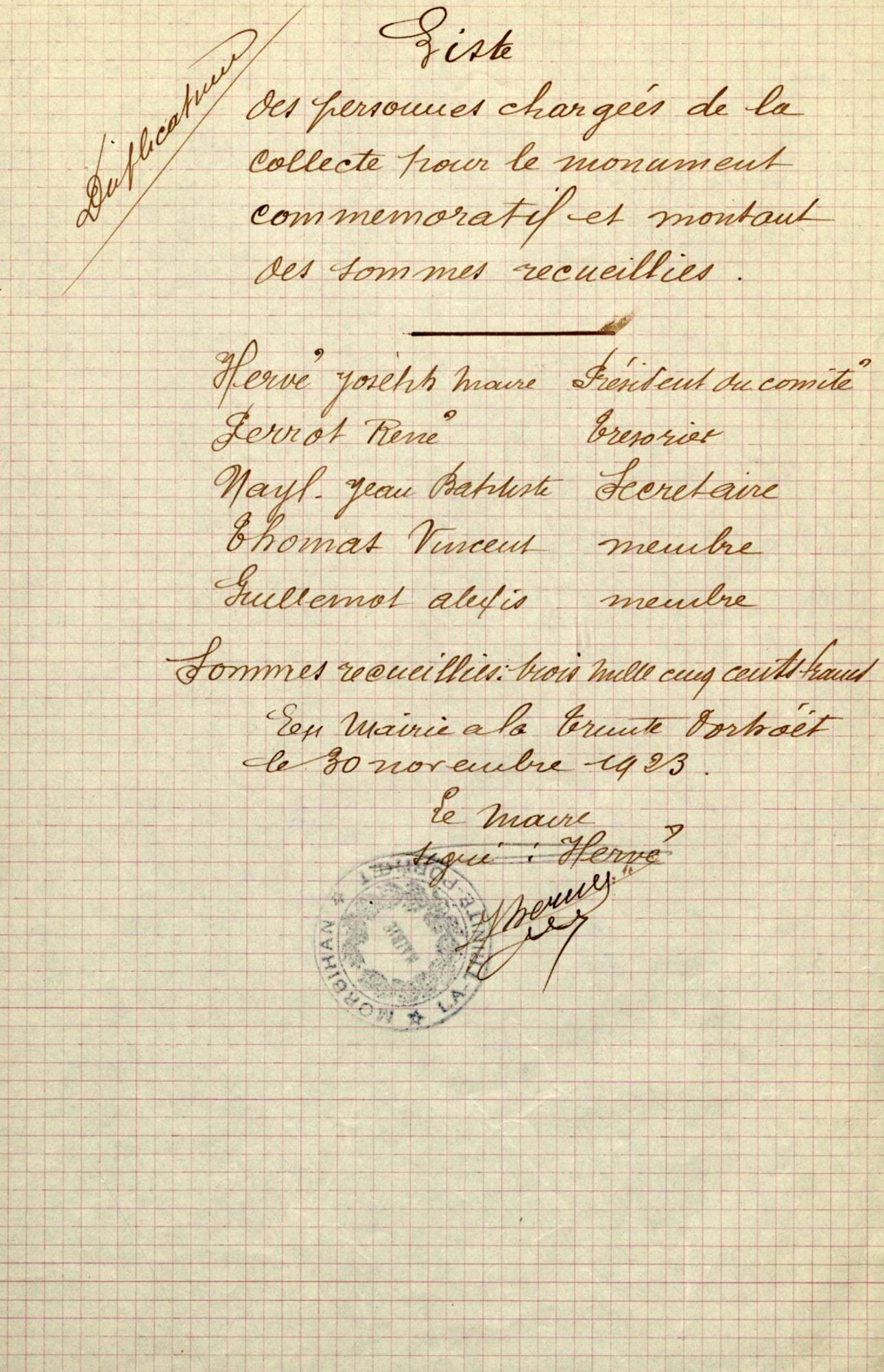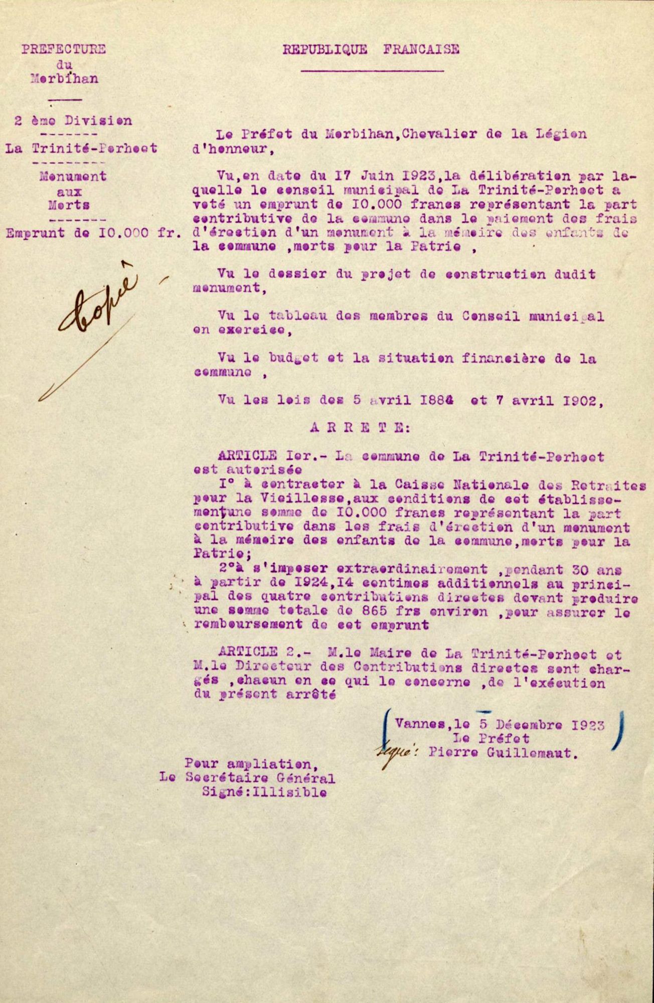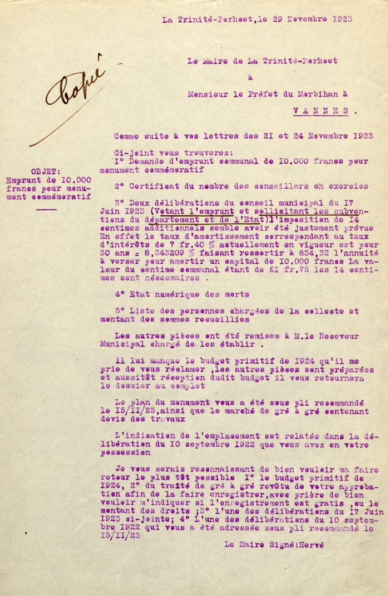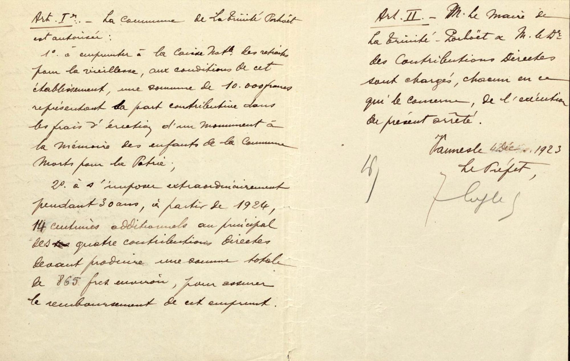 Aubudget 6000 frs prévu au budget additionnel de 1923