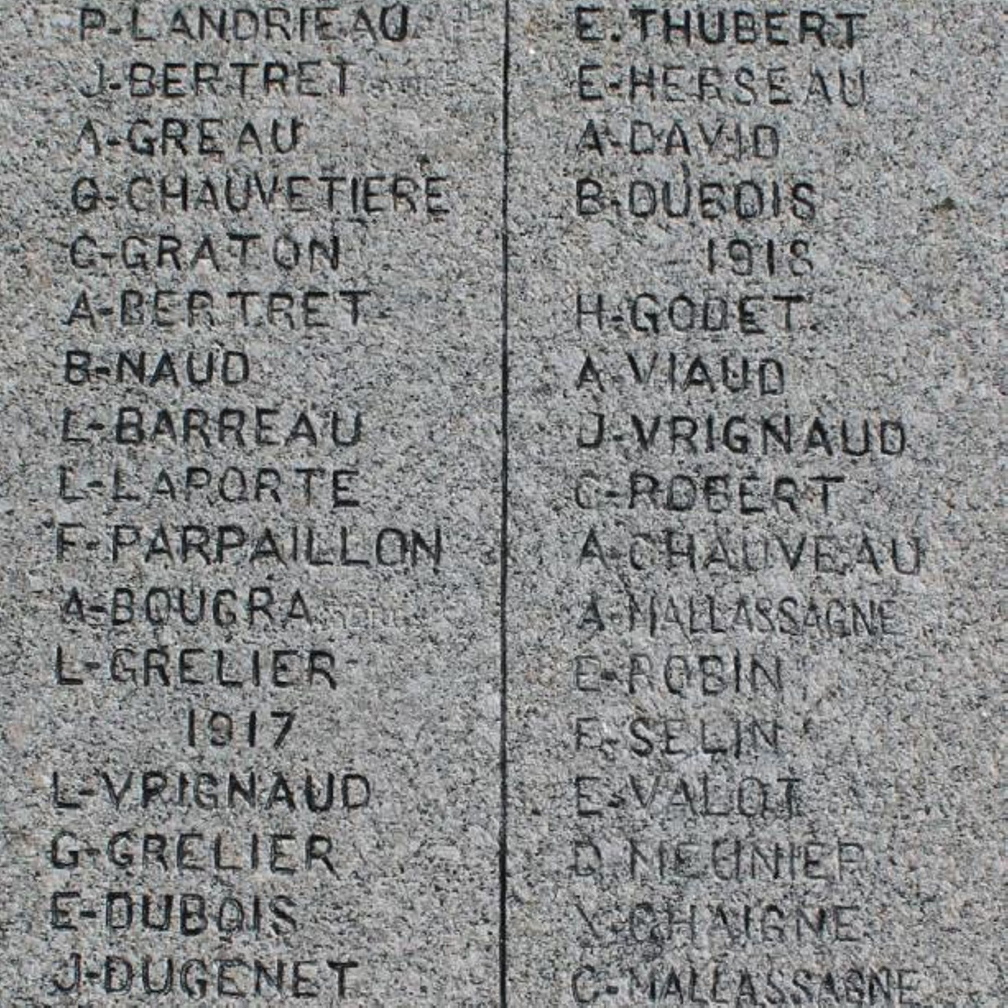 - Florence Regourd, Les monuments au morts de la guerre 1914-1918 en Vendée, Ed. du CVRH, ISBN 978-2-911253-87-4, 253 p., octobre 2018