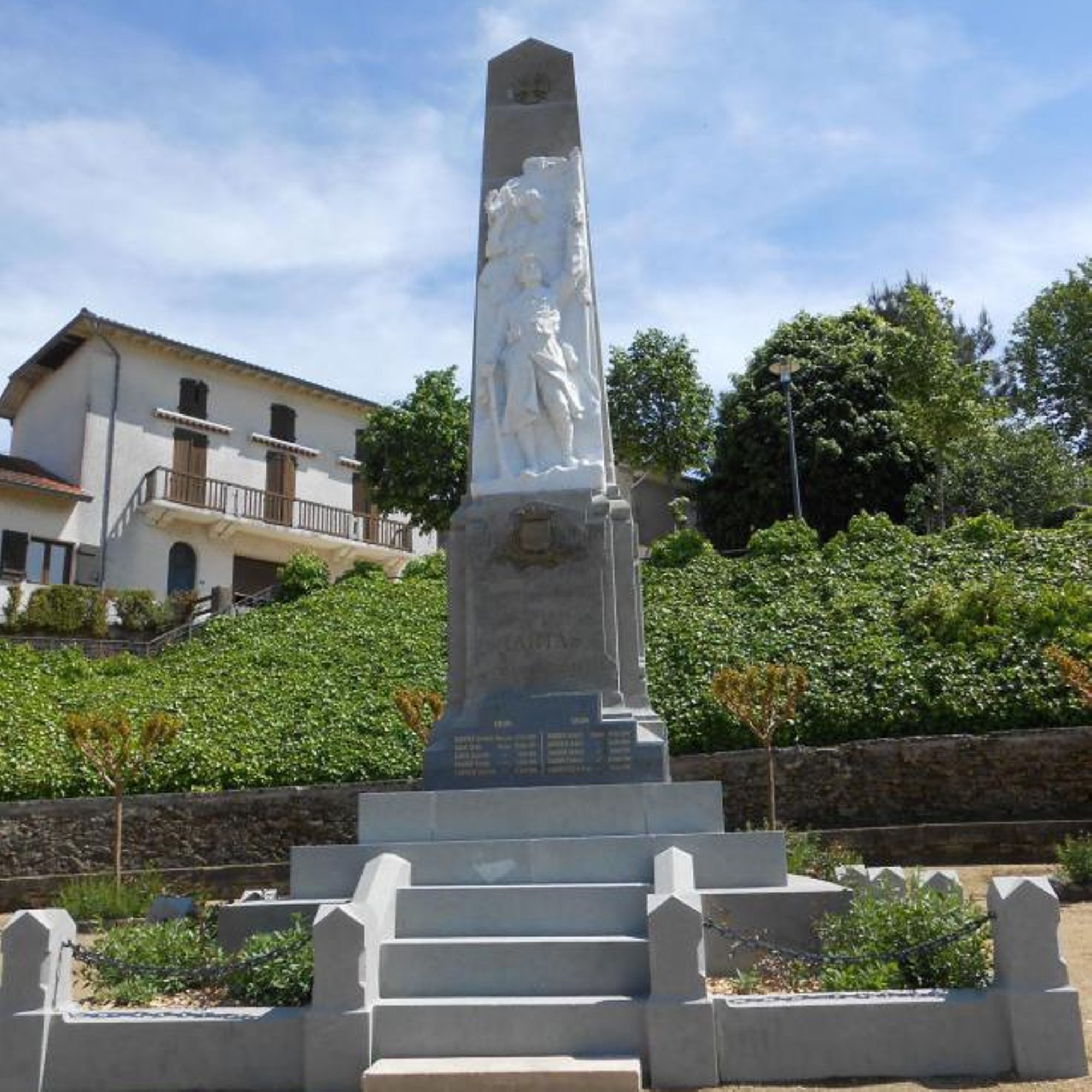 Mêlant la pierre, le marbre et le bronze, le monument est constitué d’un piédestal supportant un obélisque. Il est décoré d’une figure de la victoire couronnant un poilu.