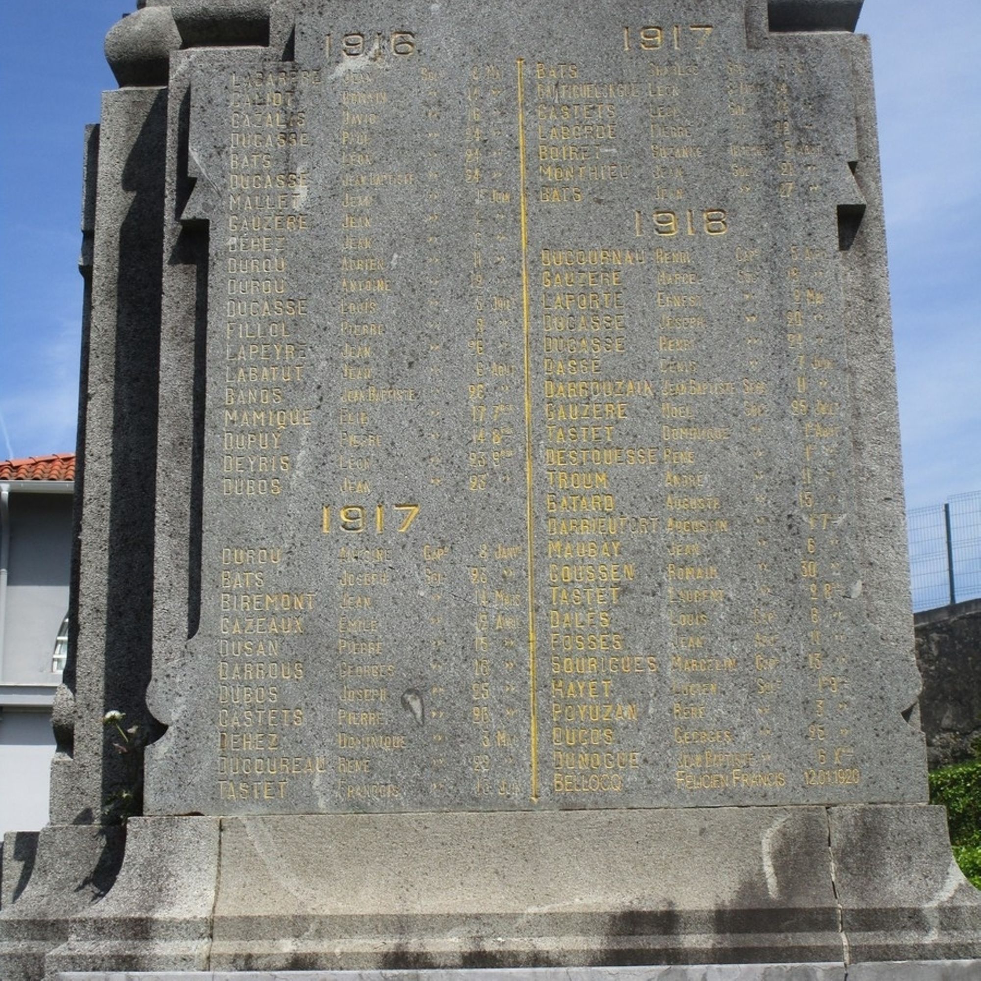 L’entrepreneur E. Gourdon commence la construction du monument aux morts de Tartas en 1919.