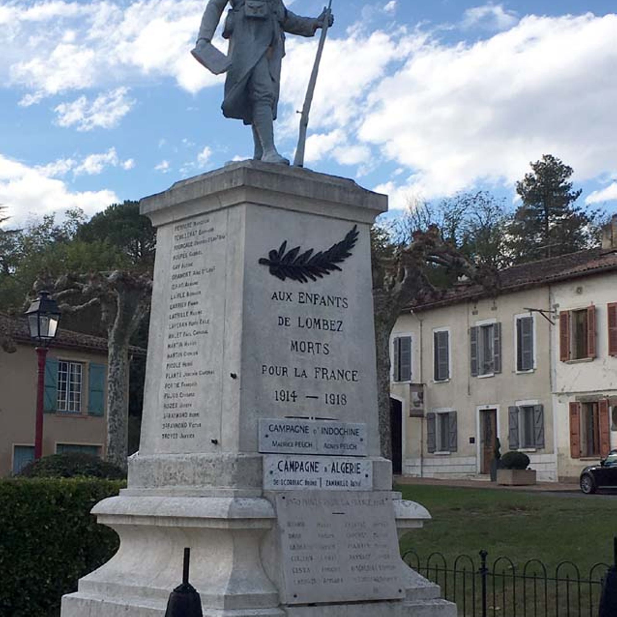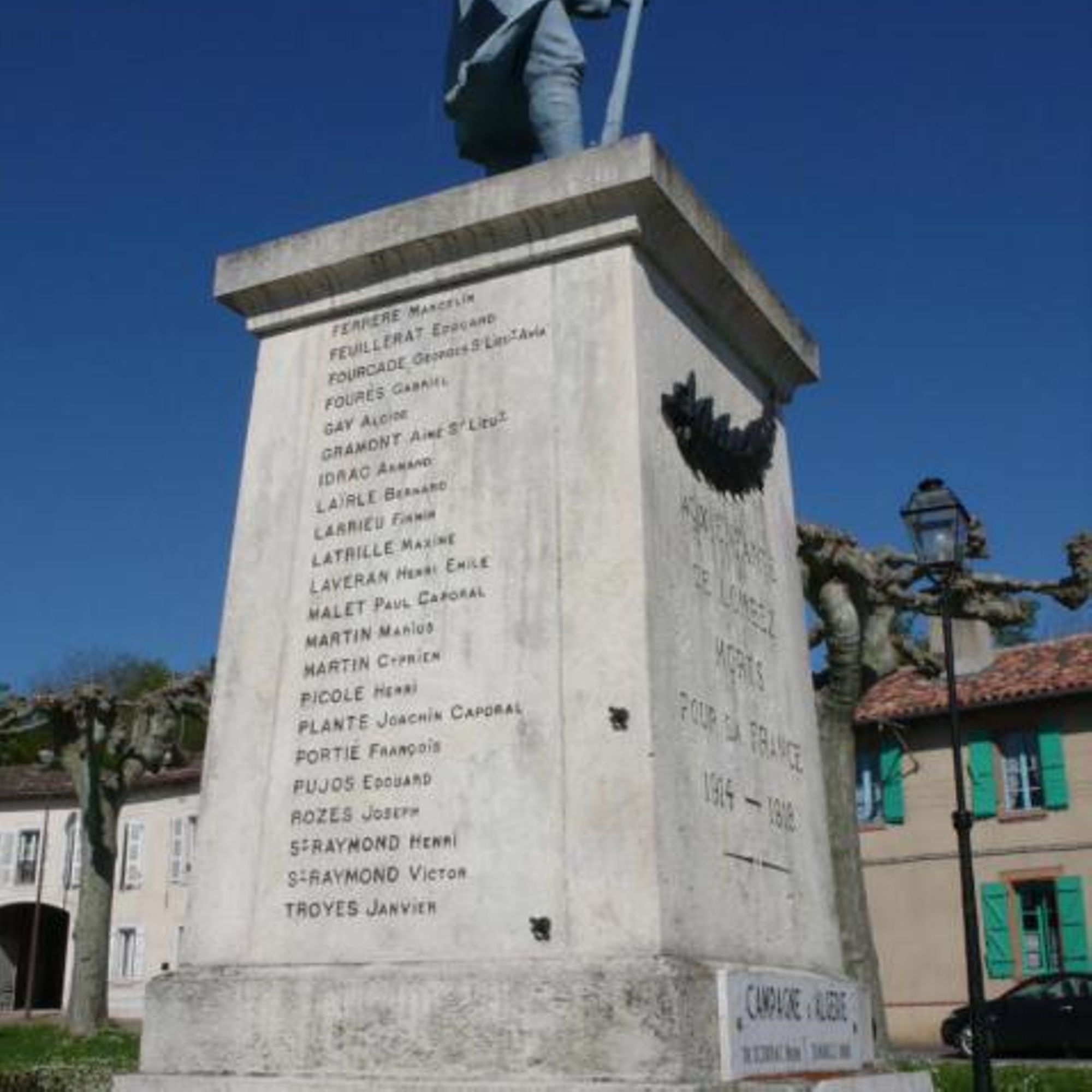 Le Conseil Municipal dirigé par Monsieur Henri Bécanne, maire de Lombez, et les conseillers municipaux Rey, Téchené, Lassave, Saint-Cricq, Cousse, Idrac, Gramont, Lacoste et de Scorbiac, après deux délibérations (le 23 février 1918 et 23 février 1919) décide l’élévation du monument sur la place du Trianon.